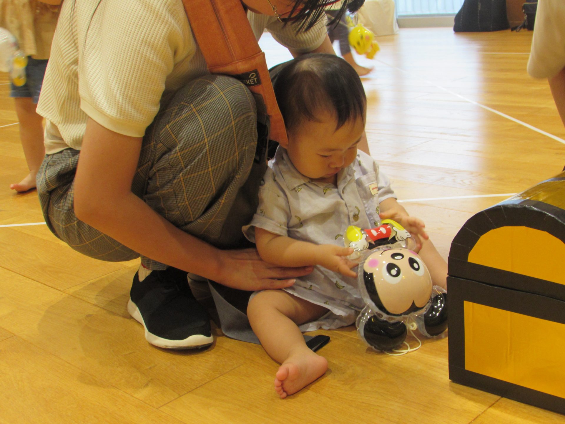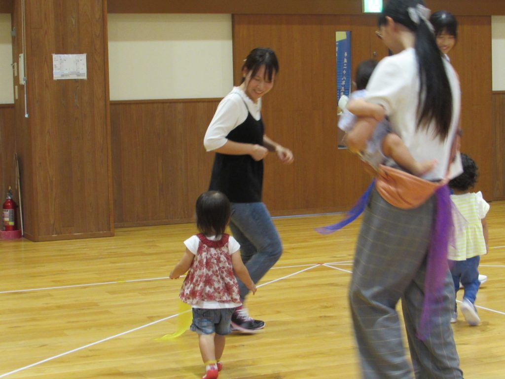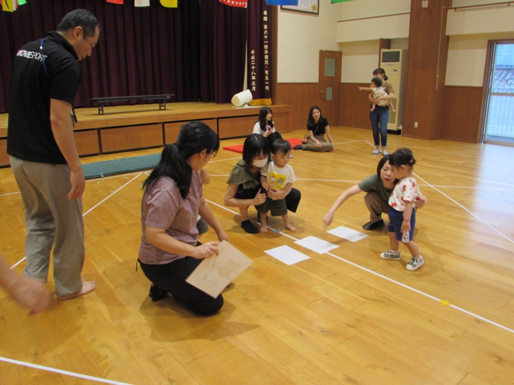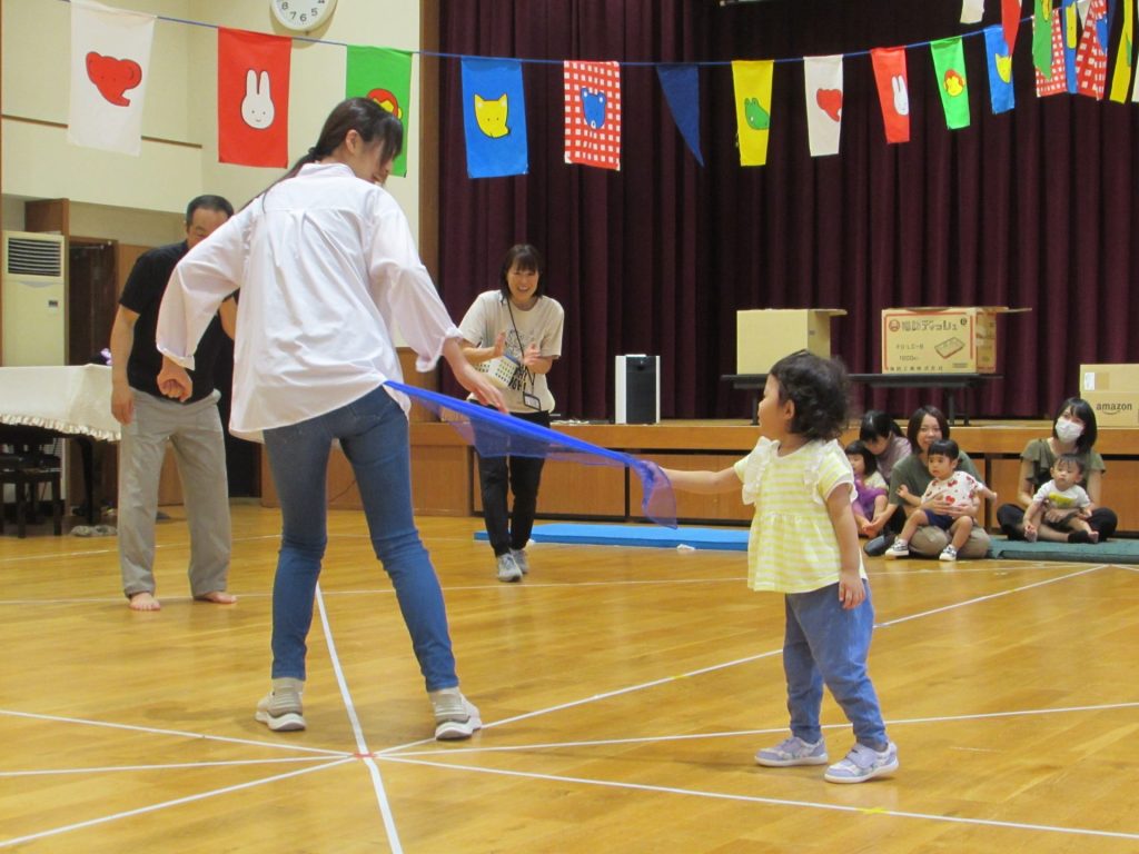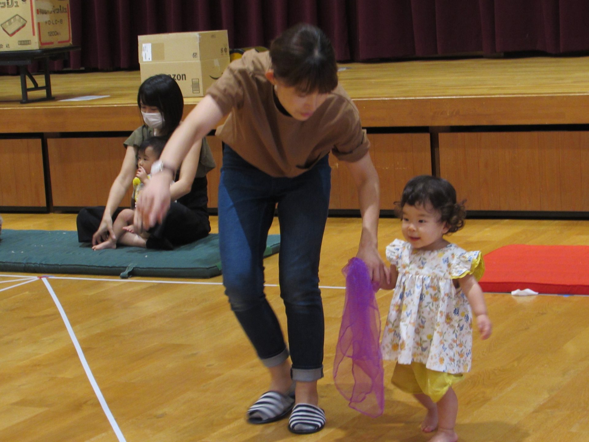 講師の方のエプロンシアターを真剣に見ている様子や、お口の体操をしたりふきもどしを親子で楽しんでいる姿がたくさん見られました。