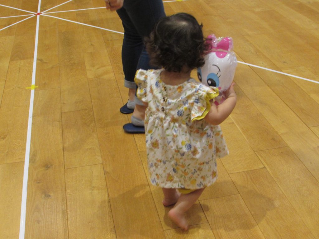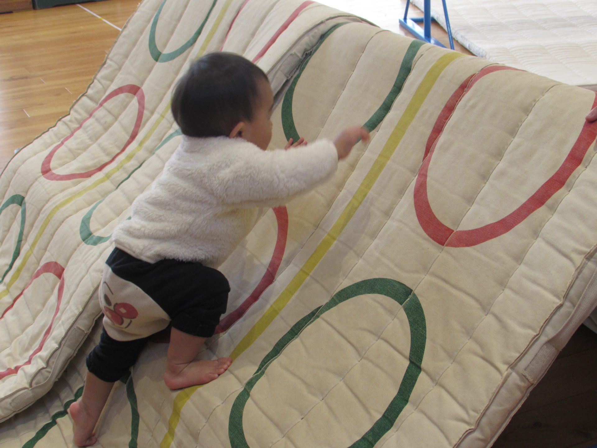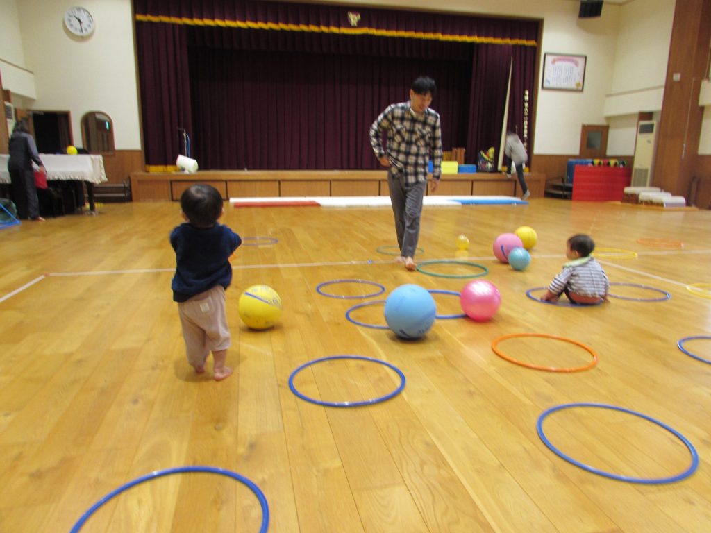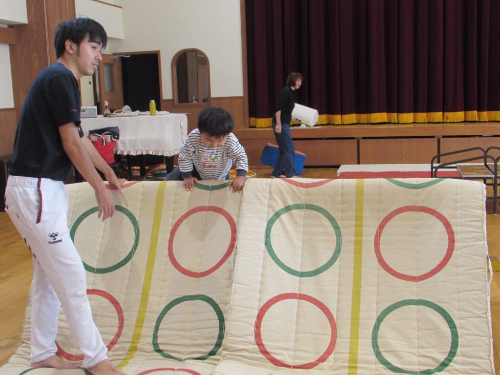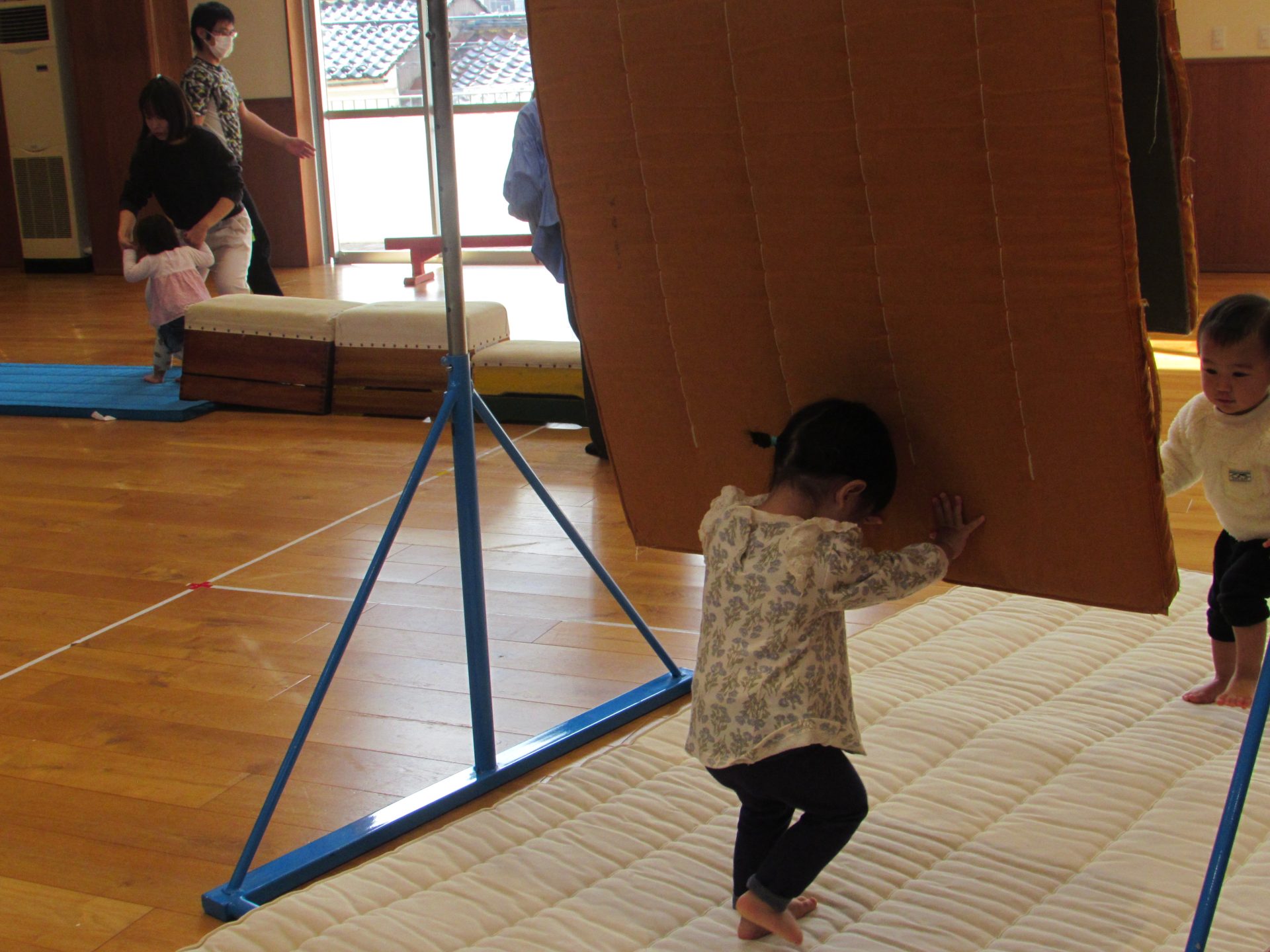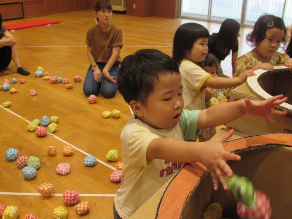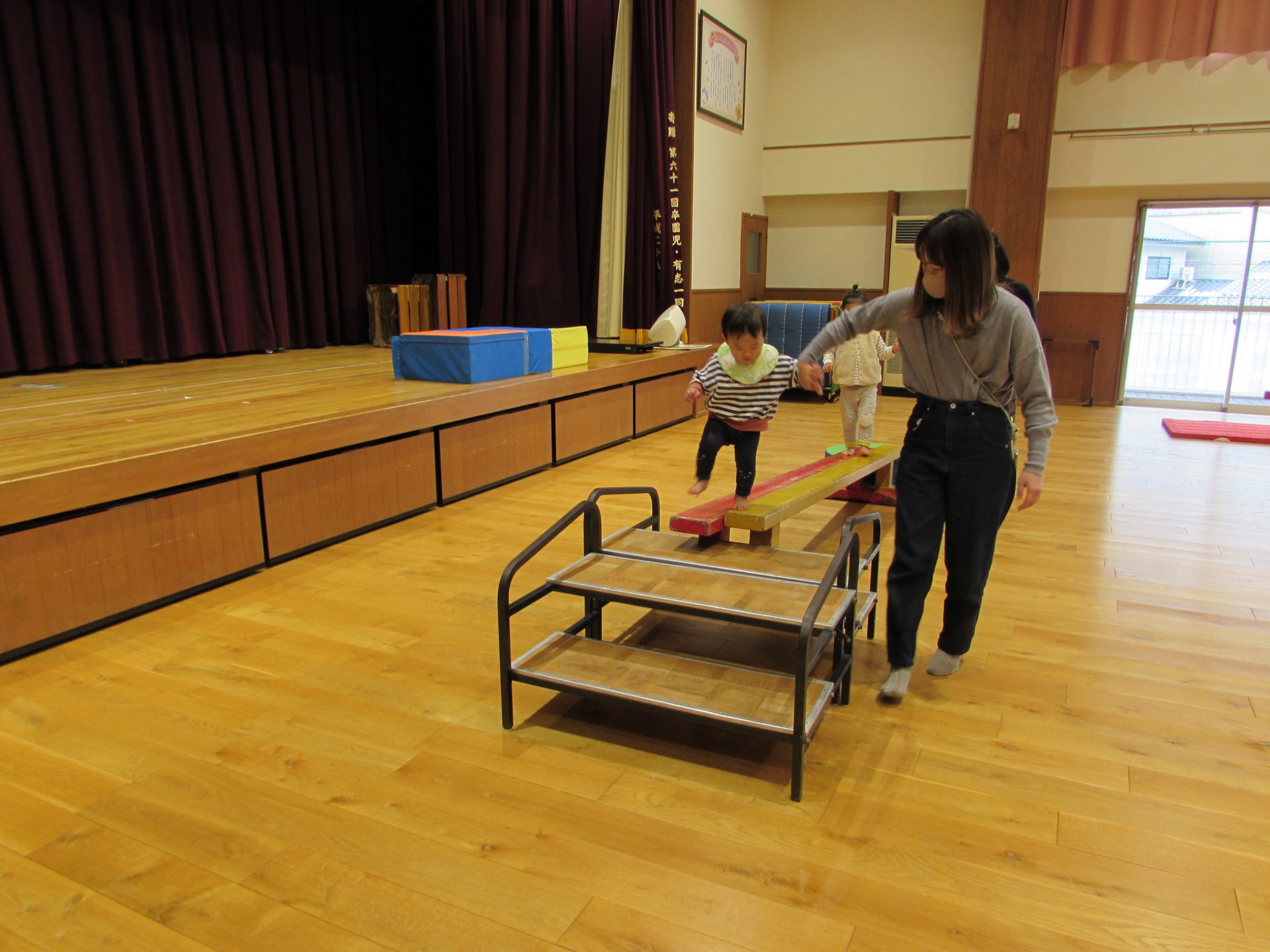 前回より少し難しいフープのトンネルに挑戦したり、鉄棒に自分の力でぶら下がったりして子ども達も楽しそうに参加していました!回数を重ね、平均台を使った一本橋やマットで作ったお山にも少しずつ慣れてきて、安心して渡ったり、登ったりする姿が見られるようになりました☆