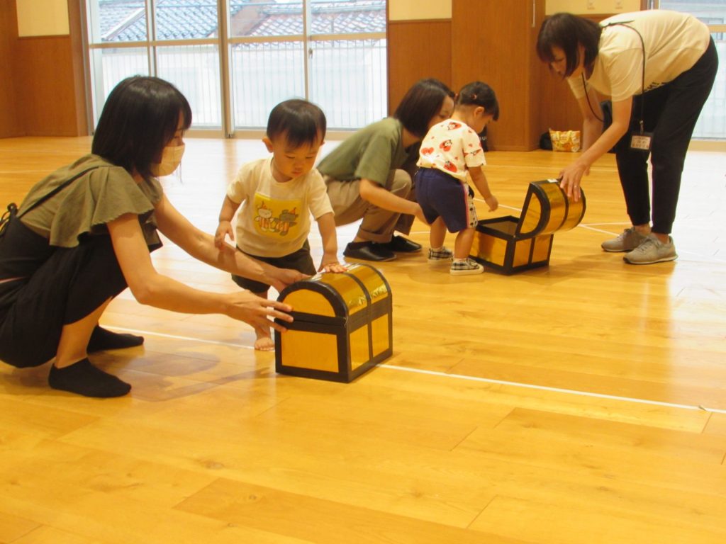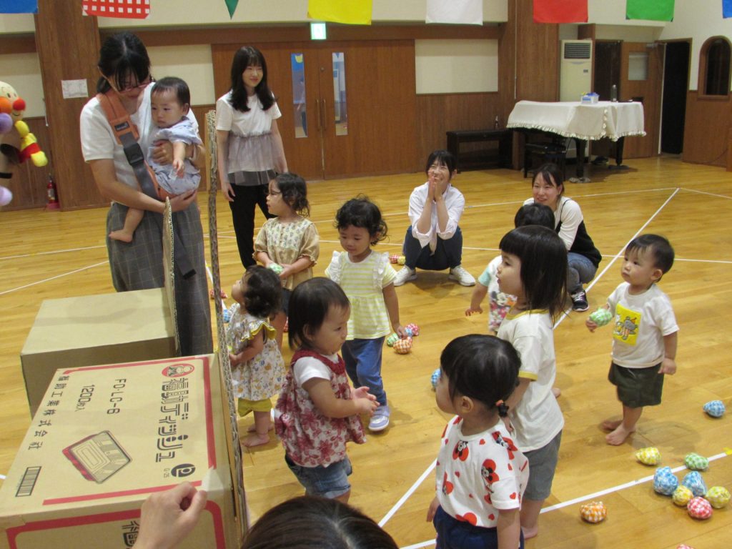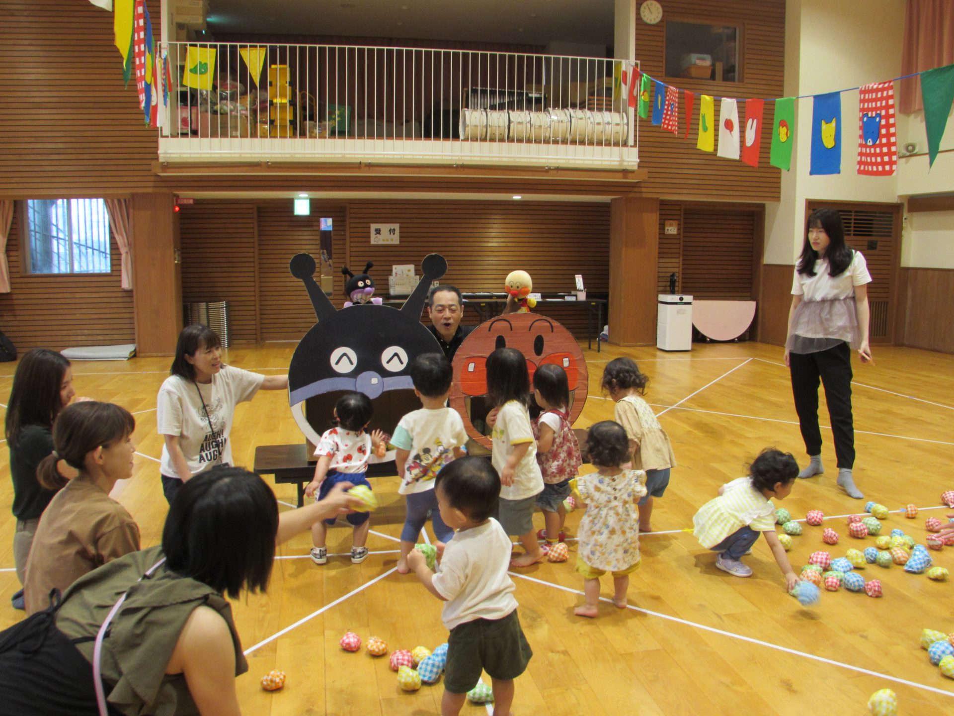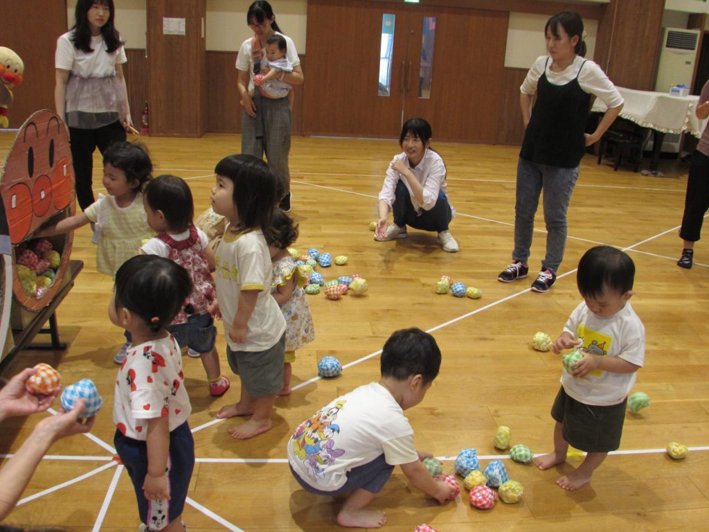第7回の園開放は、『親子で運動会』を開催しました!!はじめに体操をしたあと、おうちの人と一緒にかけっこをしました。元気いっぱいに走る子どもたちの姿がとても印象的でした☆その他にも、玉入れやなりきりレースなど、さまざまな運動遊びに挑戦しました!最後にはおたからゲット競争を行い子どもたちのキラキラした笑顔があふれる、親子での楽しい運動会の時間となりました。