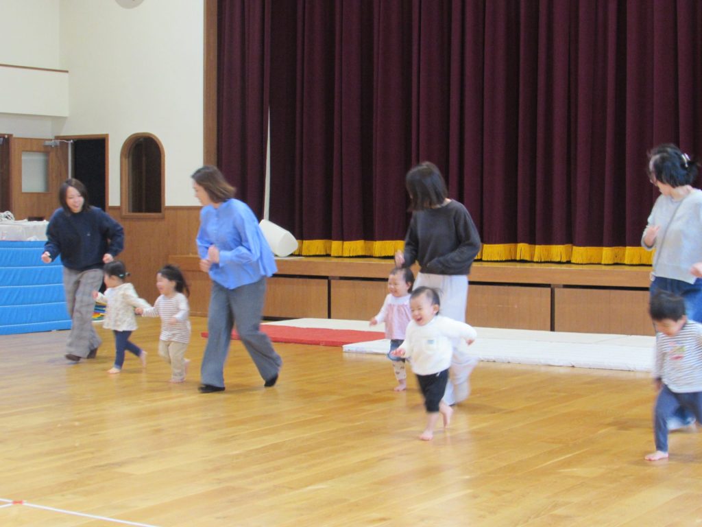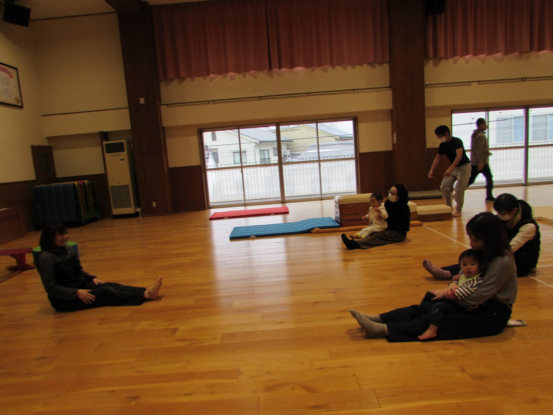 第3回の未就園児を対象にした園開放は、主に0歳児のご家族をお招きし、森のガレージキノビの小池先生によるベビーヨガを開催しました。日頃の子育てから一息❤リラックスした時間を親子で過ごされていました。お子様の安心感の源は、お母さん、お父さんのゆとりある心から!そんな雰囲気の園開放となりました。