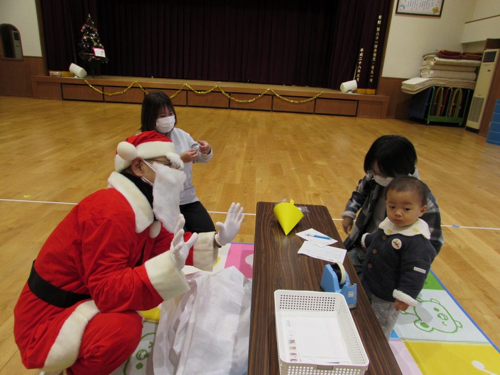感染症予防により、園開放の内容を一部変更しての開催となりました。かわいいサンタ衣装で参加してくれたお友達もいましたよ!スペシャルゲストのサンタさんとトナカイさんも登場した楽しい時間となりました。