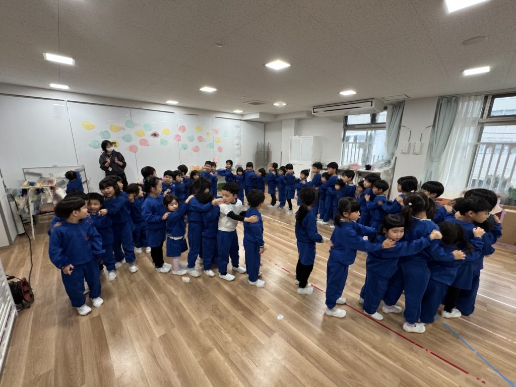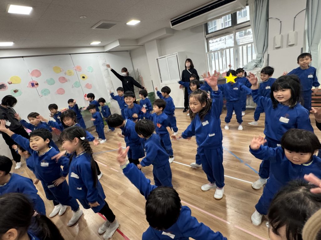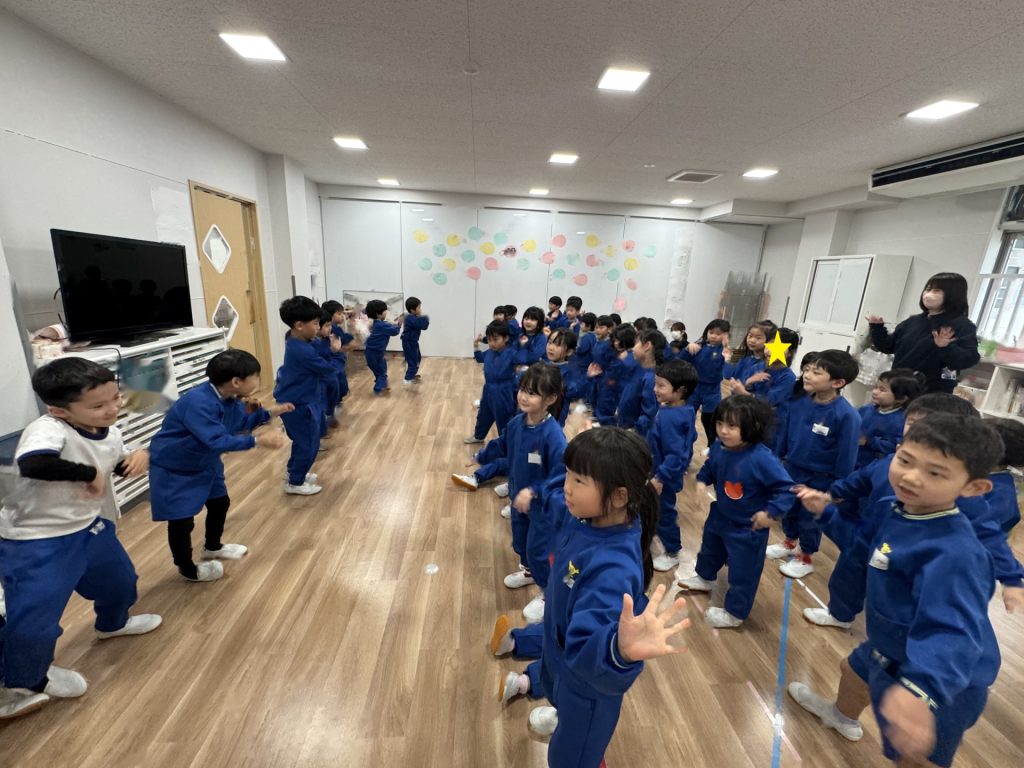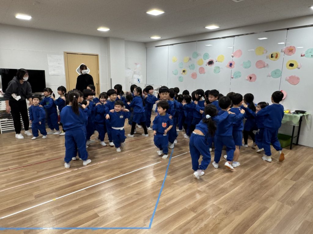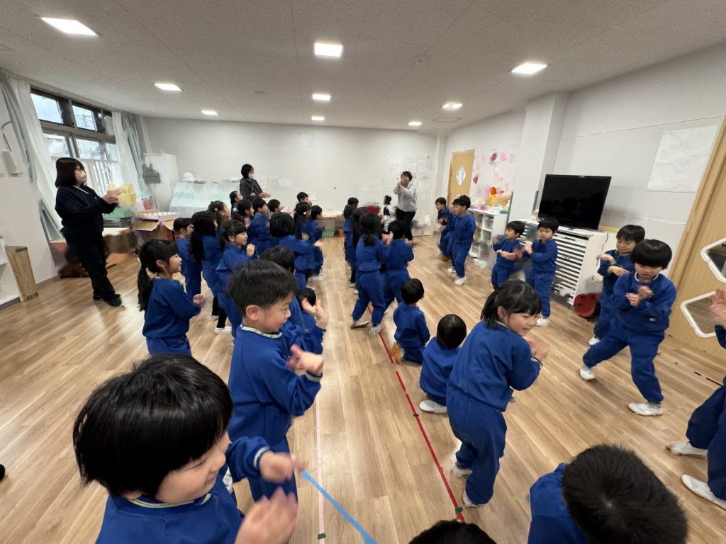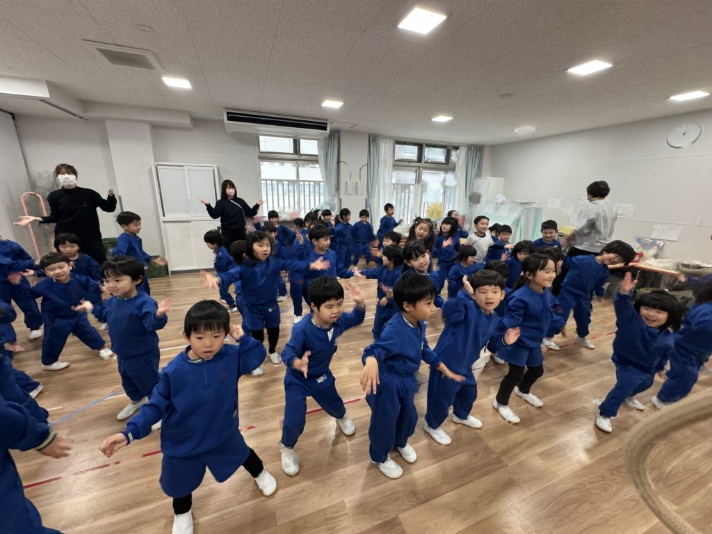 たんぽぽ組&ばら組の子ども達と一緒に、『発表会おつかれさまパーティー』を行いました♪まずはみんなで、たんぽぽ組のダンスを振り返り、その後、みんなでミッキーのダンスを踊ってみました☆