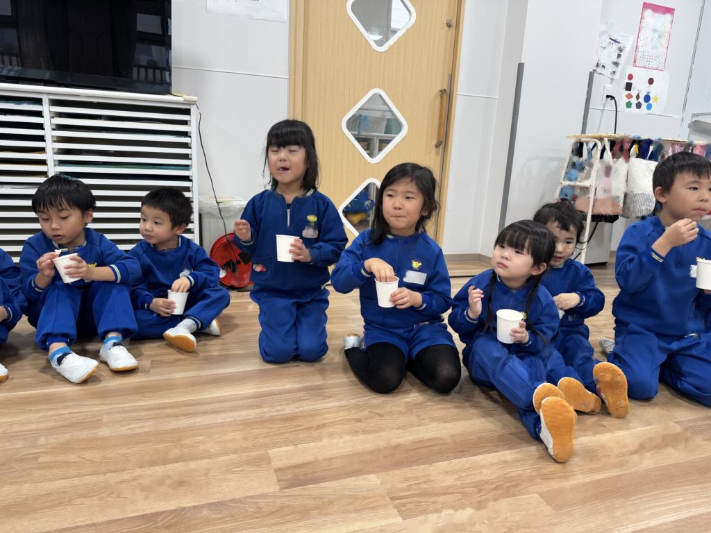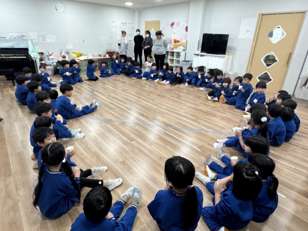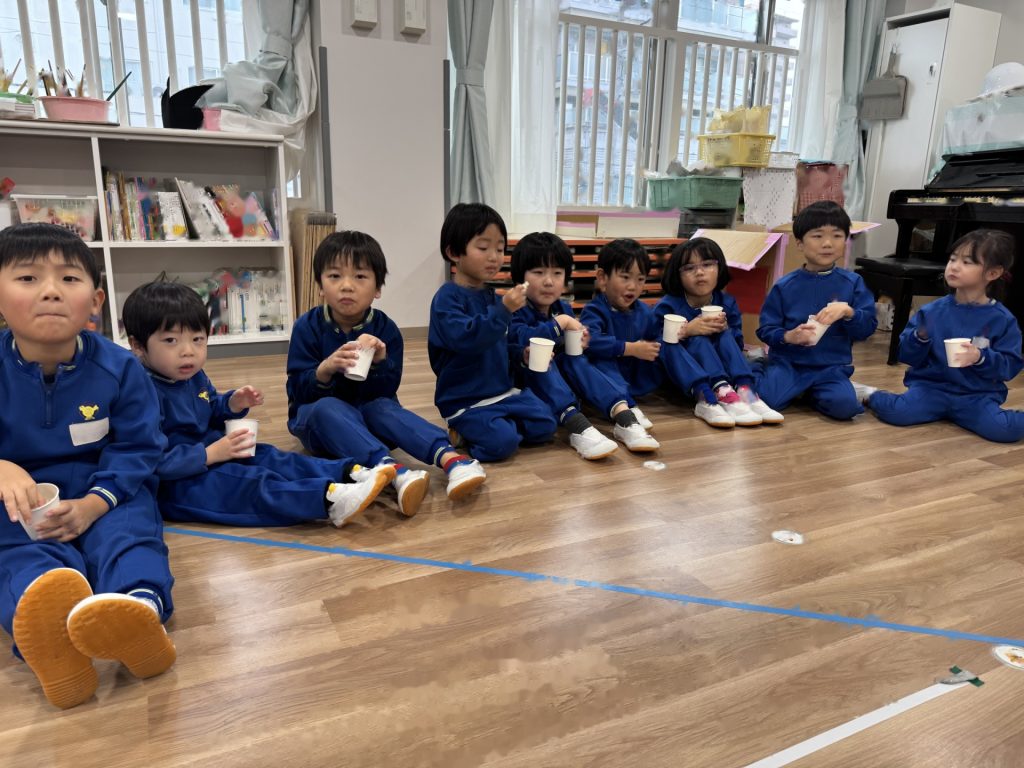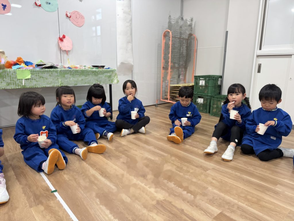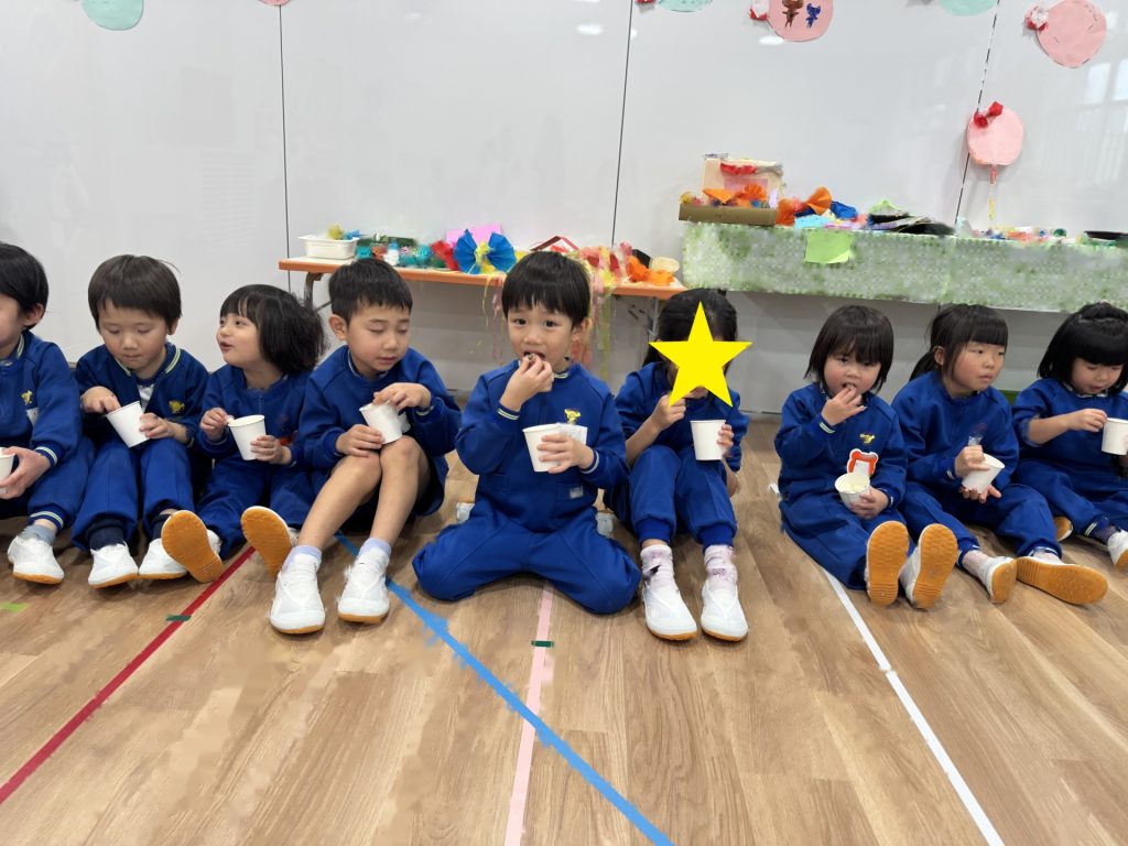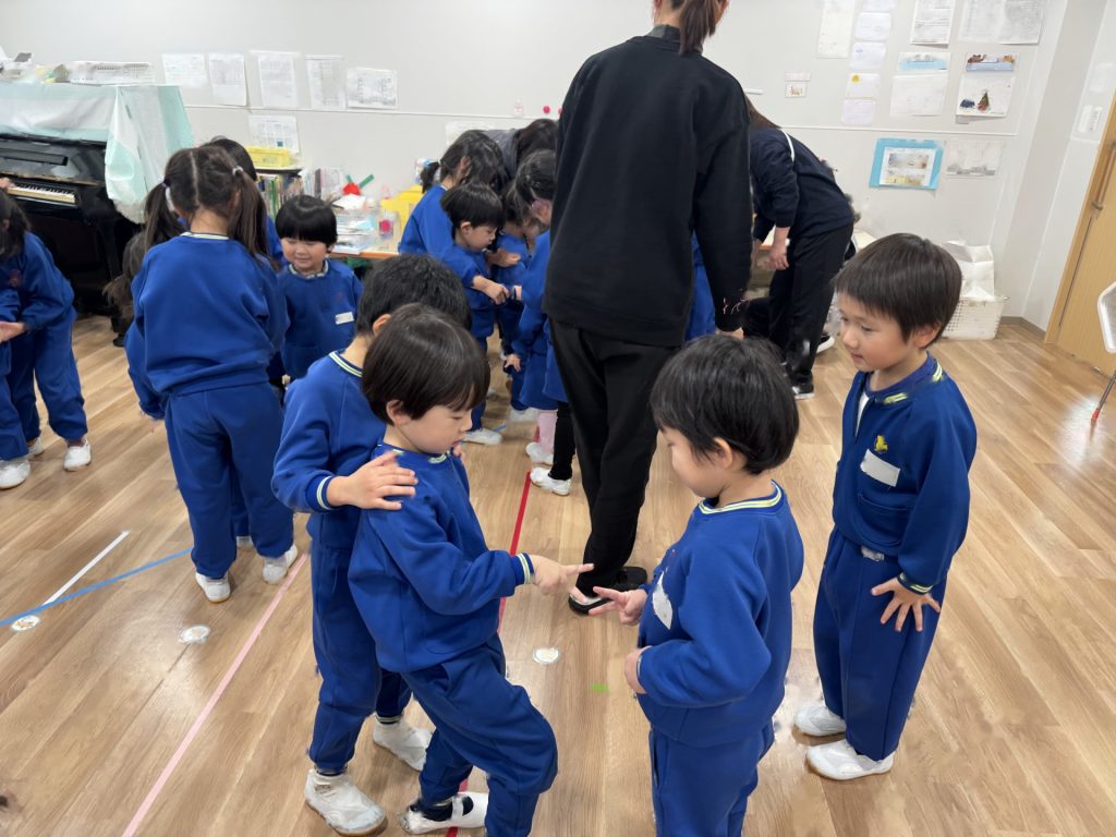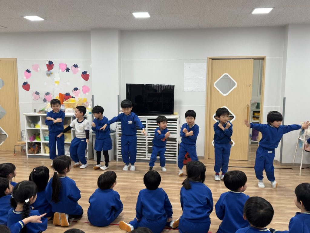 たんぽぽ組&ばら組の子ども達と一緒に、『発表会おつかれさまパーティー』を行いました♪まずはみんなで、たんぽぽ組のダンスを振り返り、その後、みんなでミッキーのダンスを踊ってみました☆