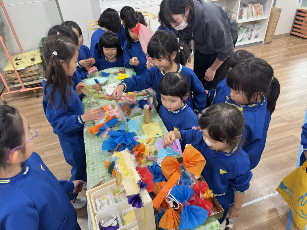 ☆最後は年長さんが用意してくれたお店屋さんに、たんぽぽさんがお邪魔しました!ステキな品物がたくさんあってどれにしようか迷いながら、お土産を購入して帰りました☆