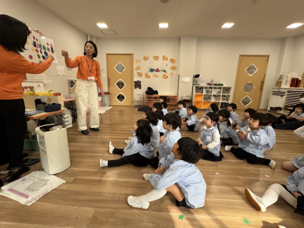 作品鑑賞をしました。自分で作った作品を紹介し合いながら、他の学年の作品もみんなで見学しました♪「上手だね~」「かわいいね~」と、認め合う姿もみられましたよ~★