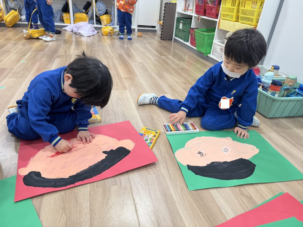 「ぼく・わたし」の顔を描くことにチャレンジ♪顔のパーツがわかるようになり、かわいい子どもたちのお顔がかけました☆