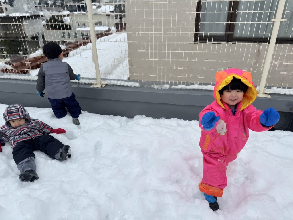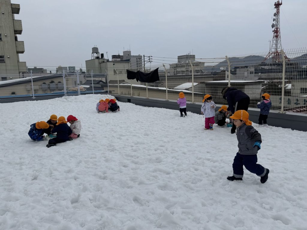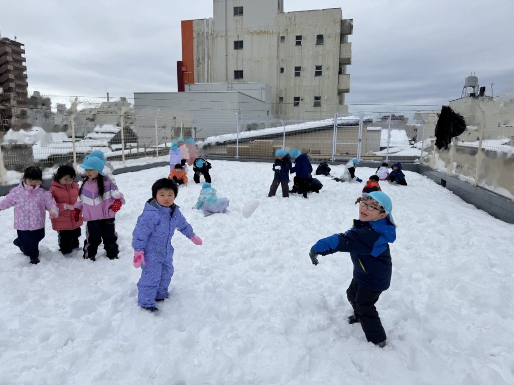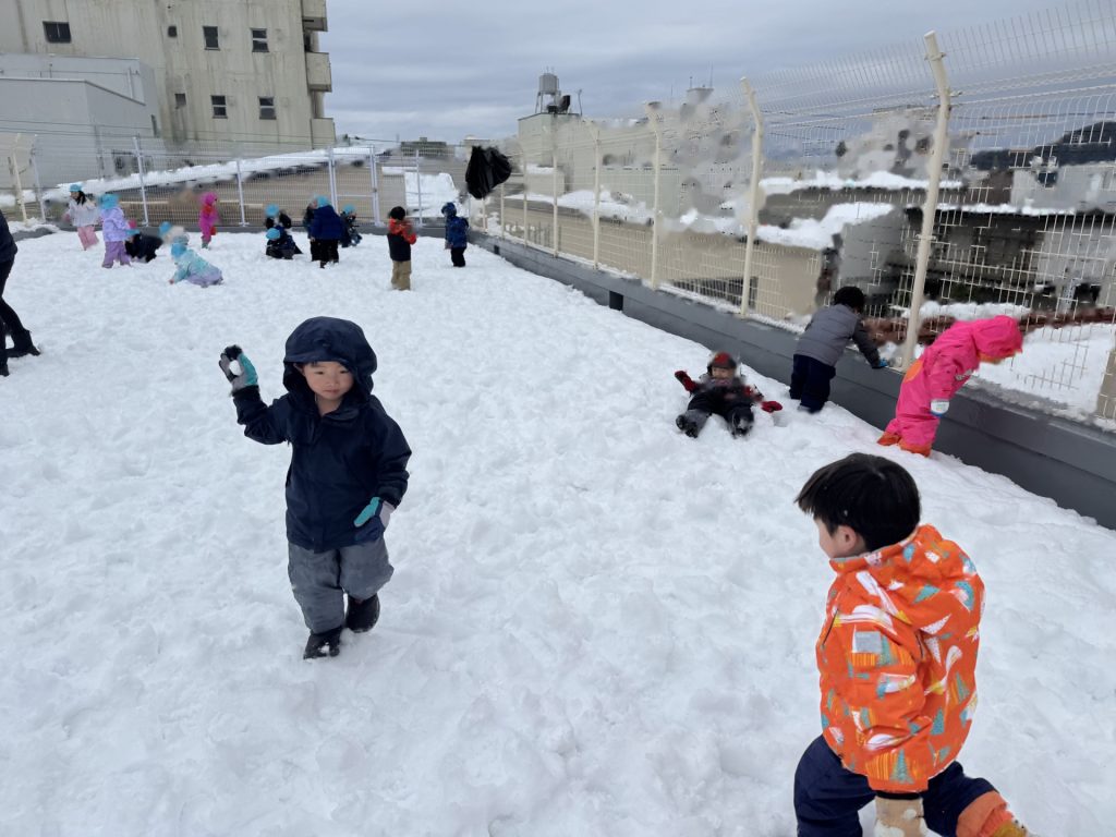 午後からは年中さんと一緒に屋上で雪遊びをしました☆1月の雪遊びは今日でおしまいですね。来月も雪遊びができますように・・・!!
