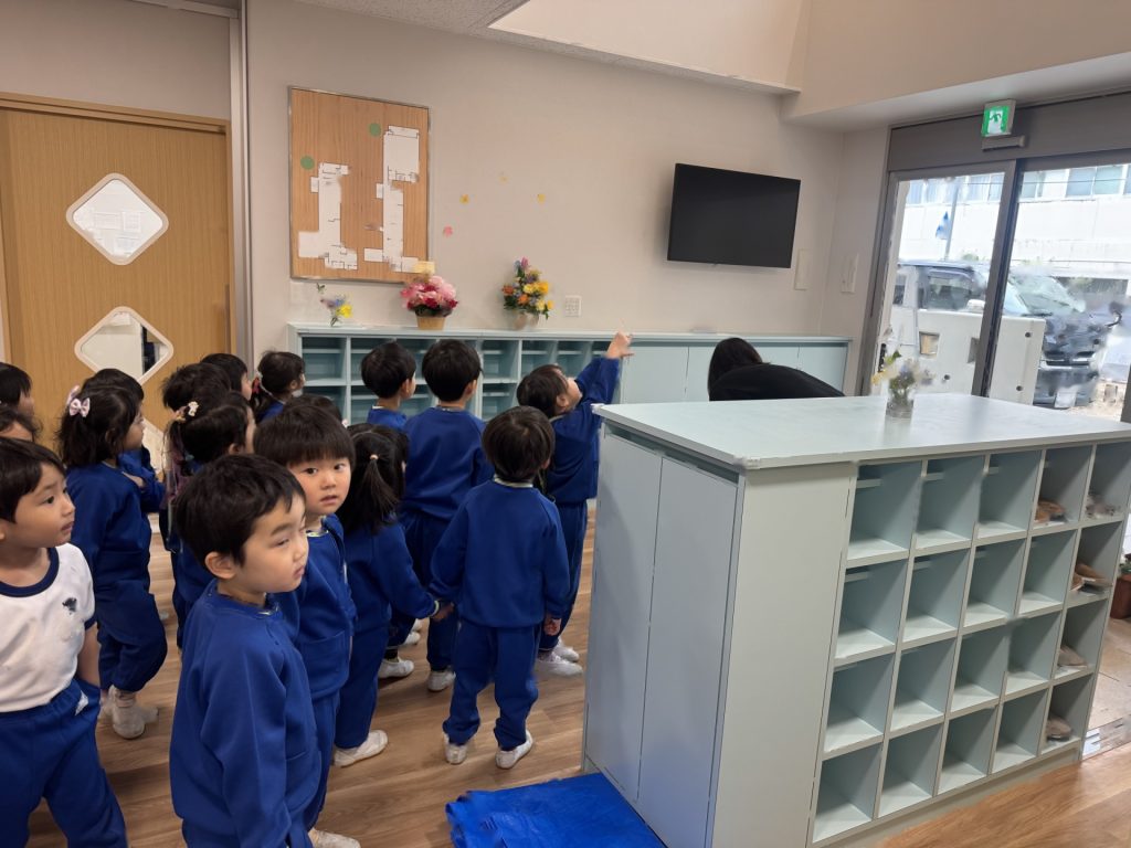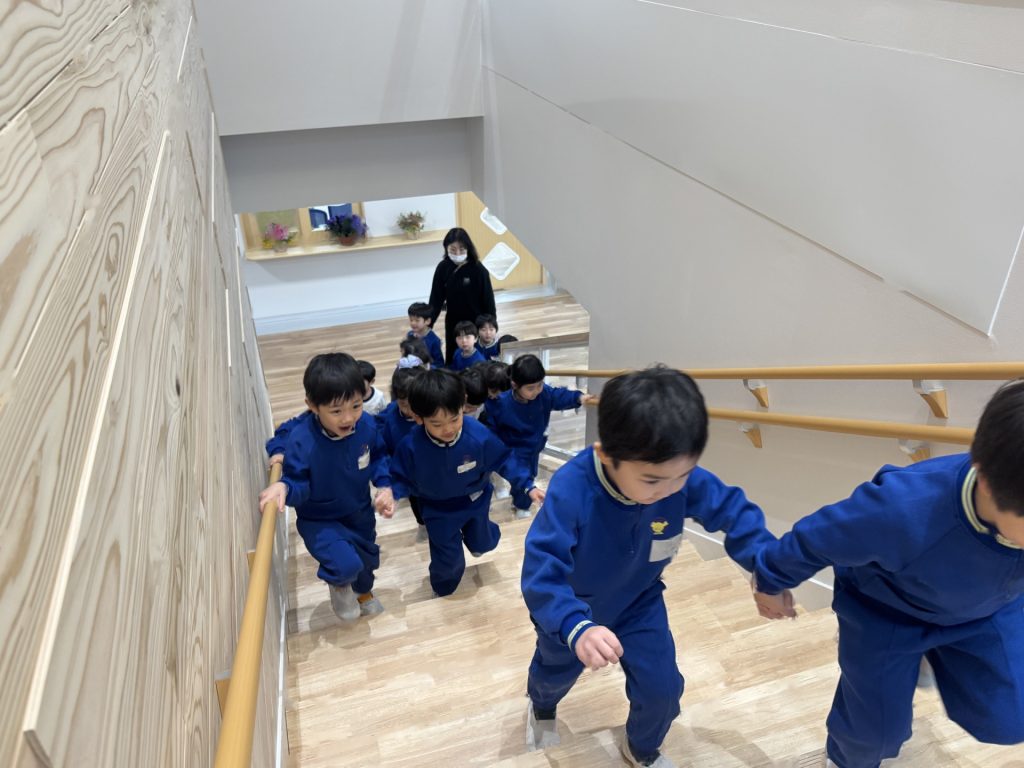 新園舎が完成し、子ども達が楽しみにしていた幼稚園探検に出かけました☆来年、みんなが過ごすゆり組さんはどこにあるのかなー?どこに靴を置くのかな?赤ちゃんクラスはどこかな??とわくわくしながら出発!