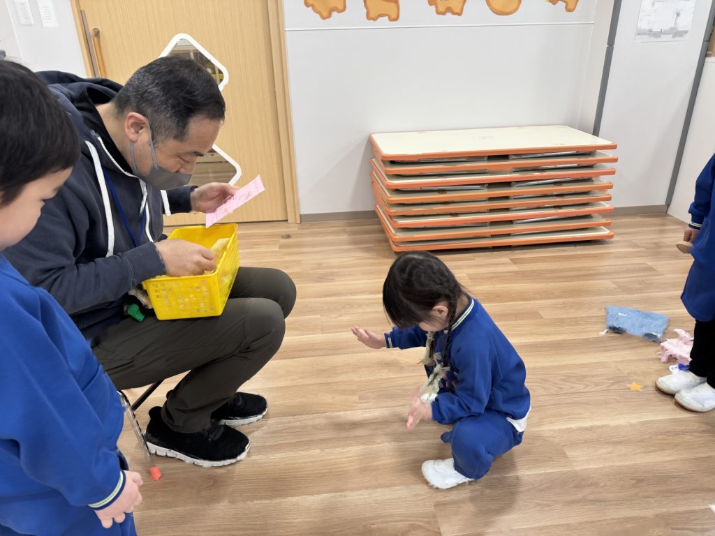 年始から楽しんできた手回しコマ!副園長先生がみんなが上手になったコマの技を見にきてくれました♪もらっていた“こま道場カード”を見ながら、まだ成功していない技に挑戦!!今日はたくさんの子ども達が技をクリアし、シールをゲットすることができました(*^-^*)春休みもぜひ、おうちでコマ遊びを楽しんでください♪
