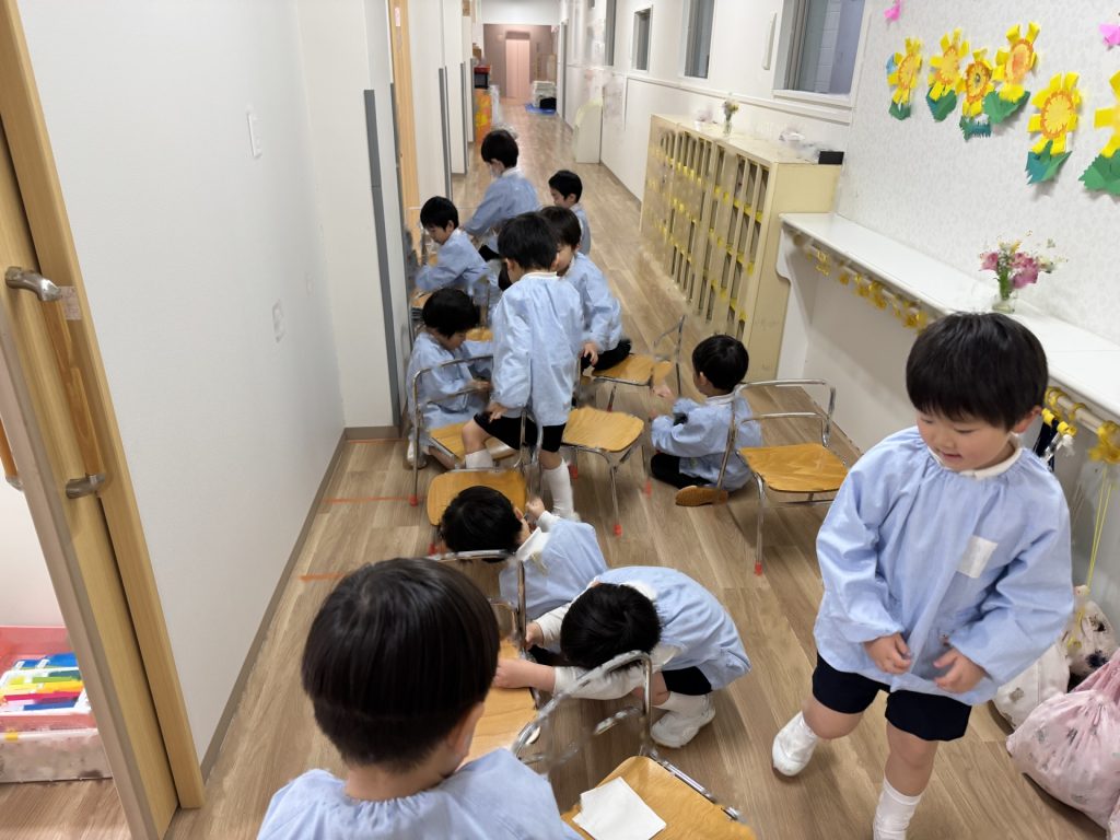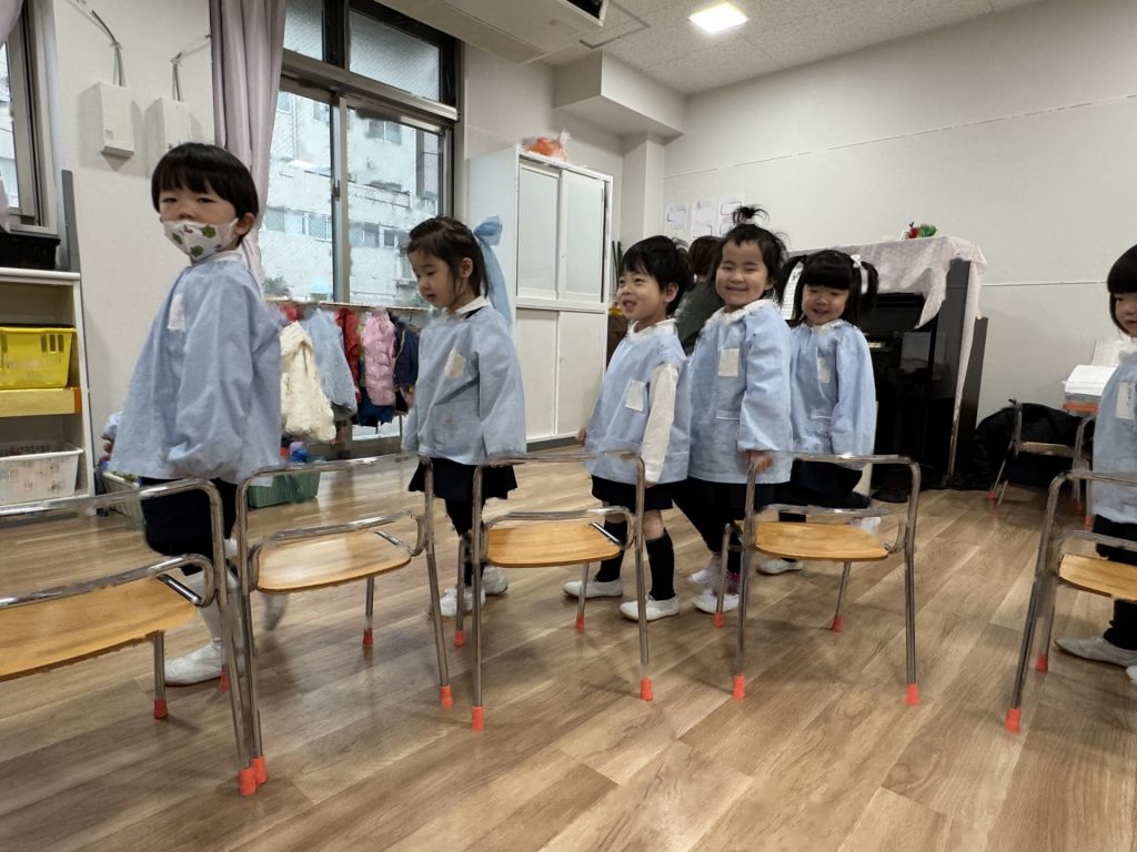 ☆みんなでするとあっという間にお部屋はピカピカに!掃除の後は、子ども達がやりたい!と言っていた“いすとりゲーム”をしました(*^-^*)今日は敗者復活いす取りゲームです!1回負けても何度も何度もチャレンジしましたよ!