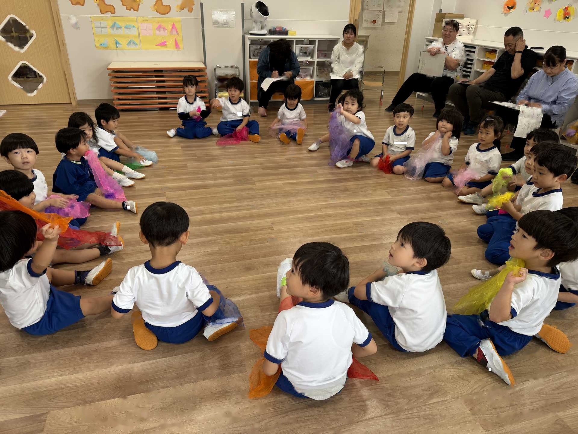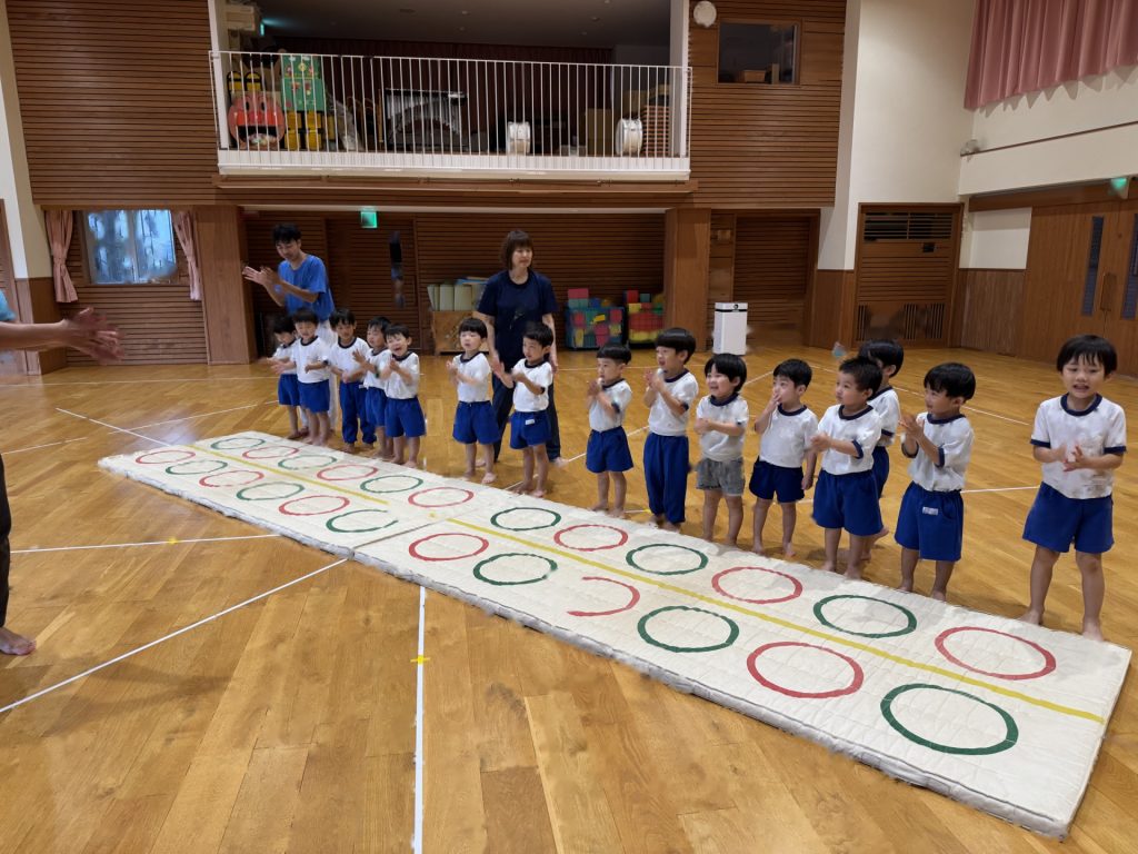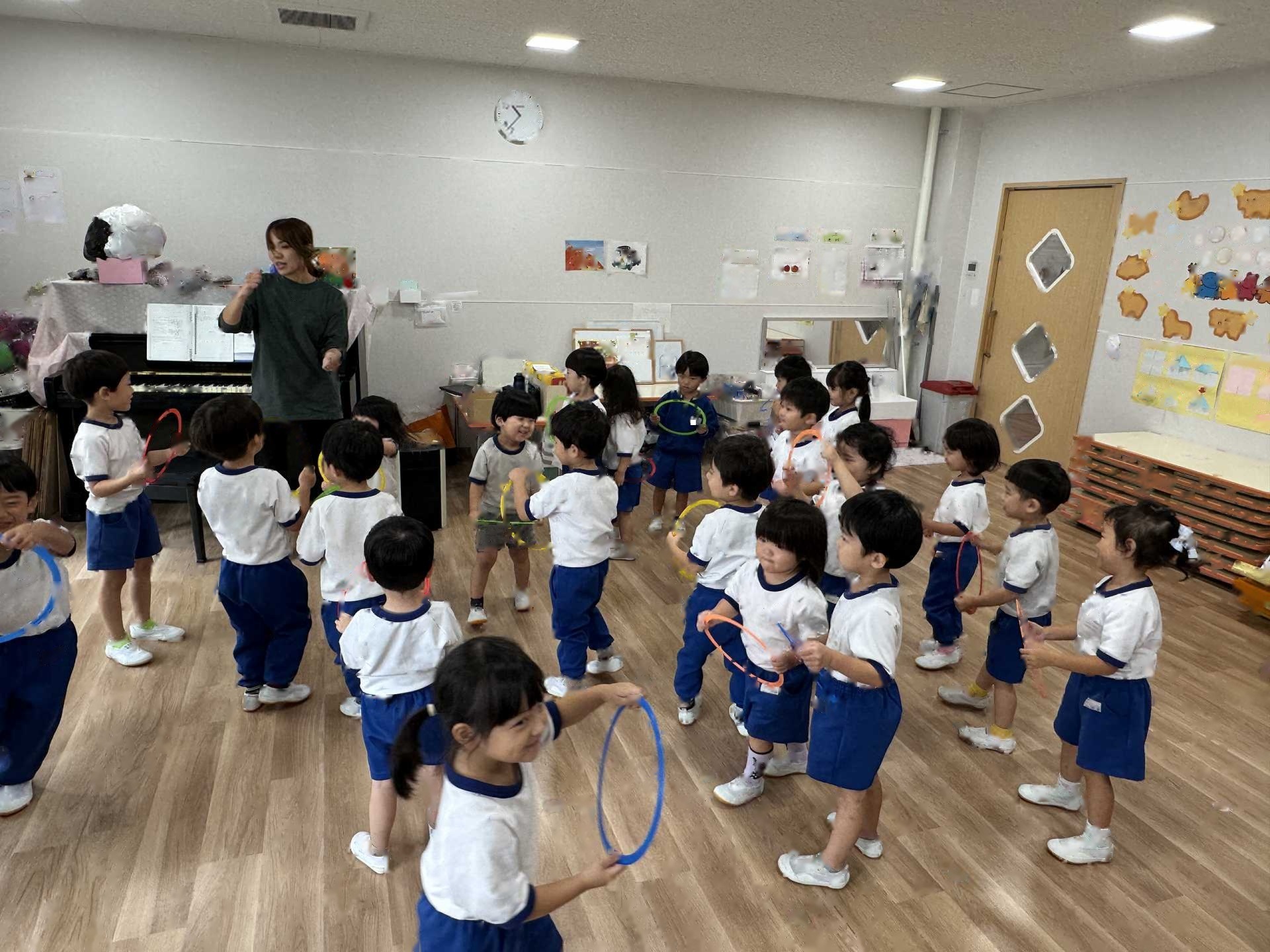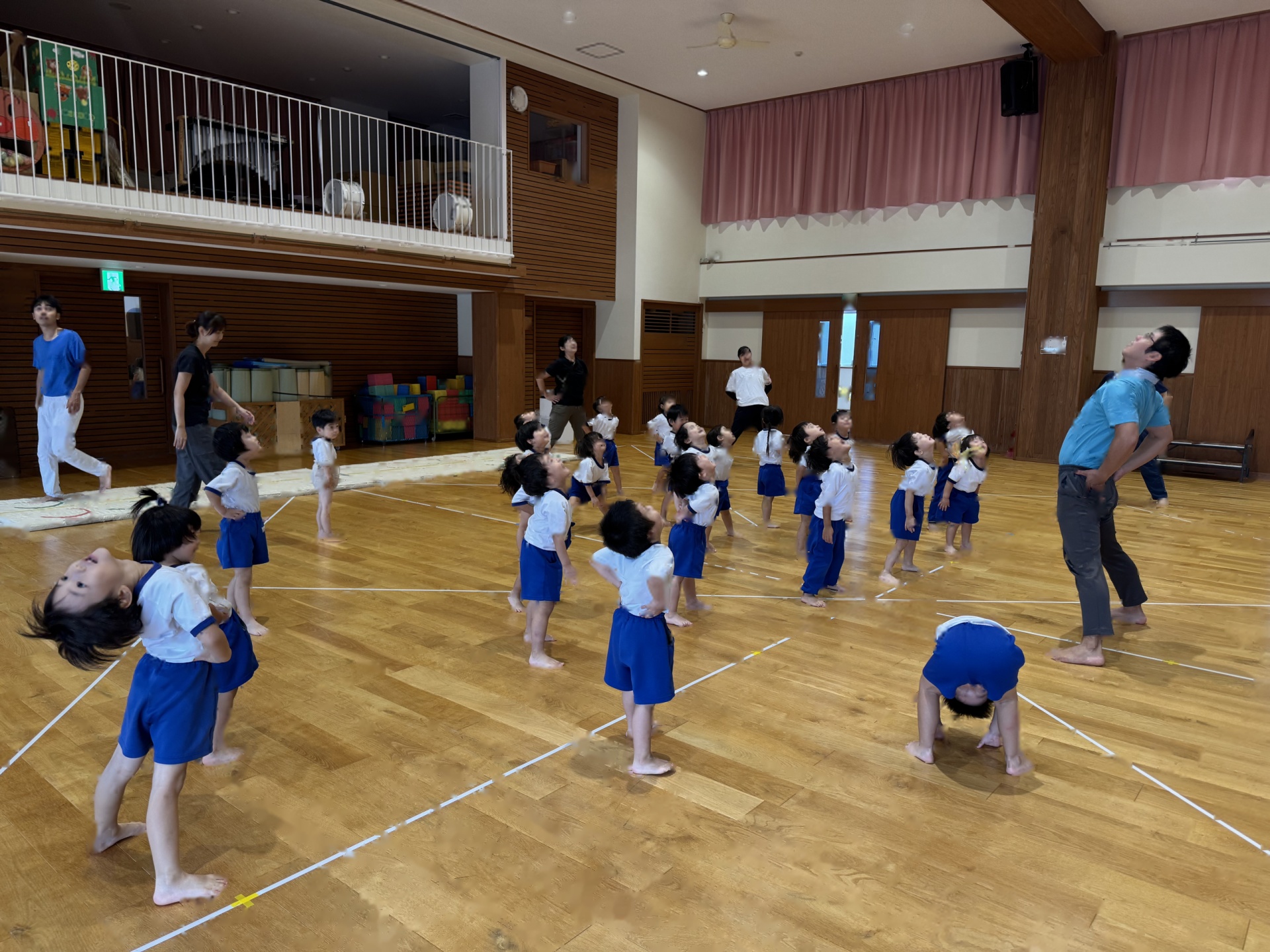 今年度の研究テーマでもある『音楽遊び”リトミック”』に関して、子ども達の育ちや職員の資質向上のため保育を見合う研究保育を実施しました。