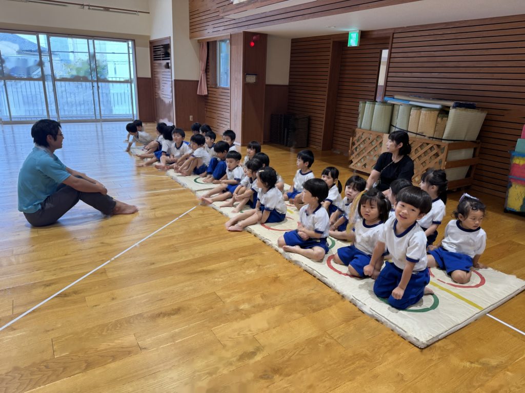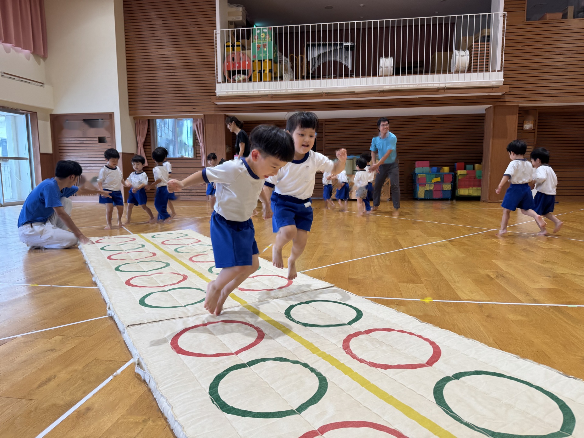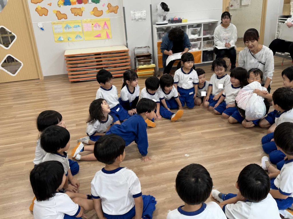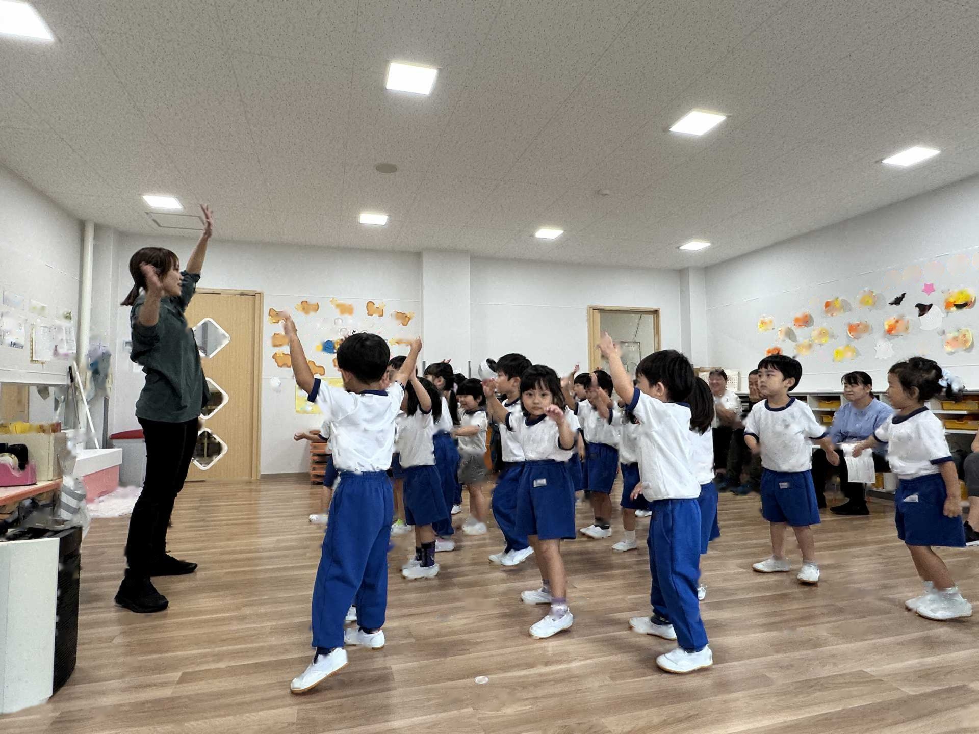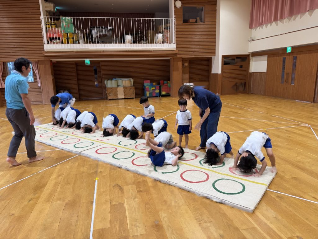 今年度の研究テーマでもある『音楽遊び”リトミック”』に関して、子ども達の育ちや職員の資質向上のため保育を見合う研究保育を実施しました。