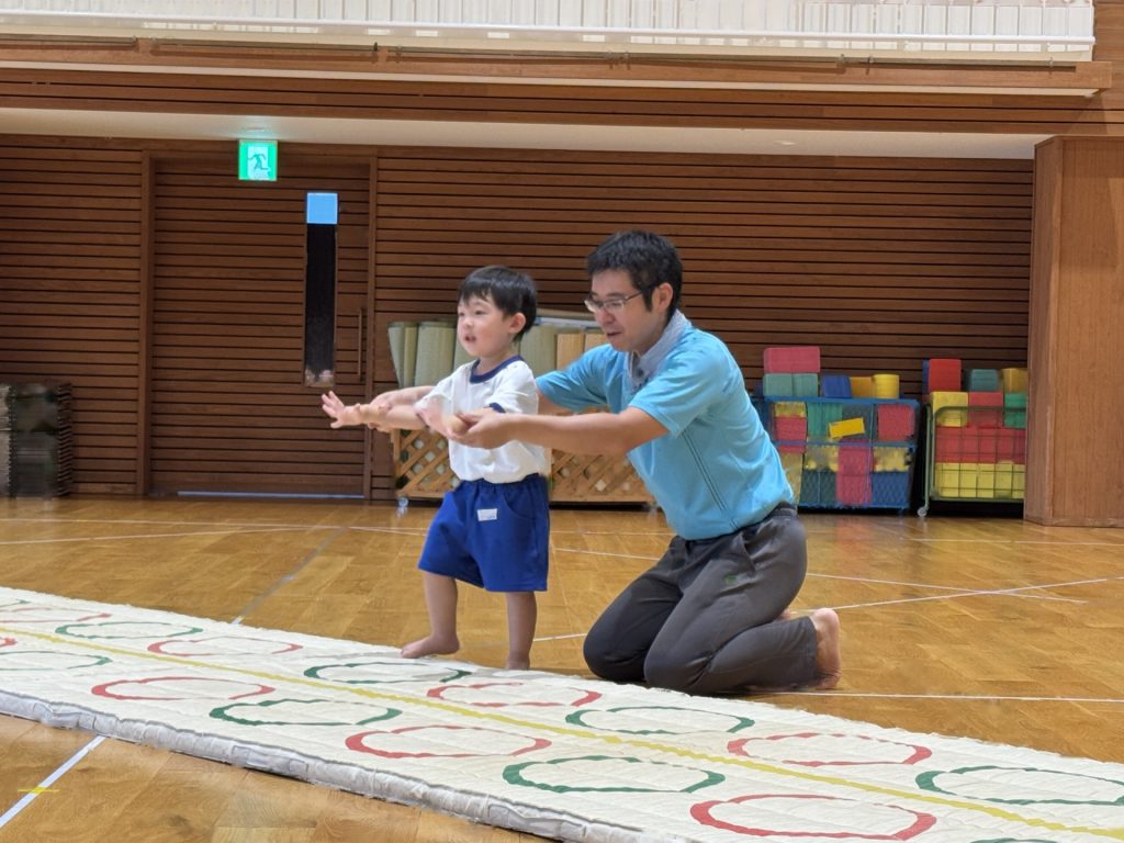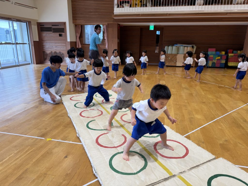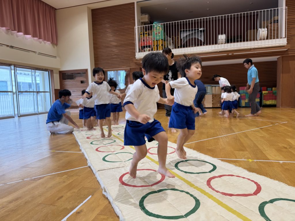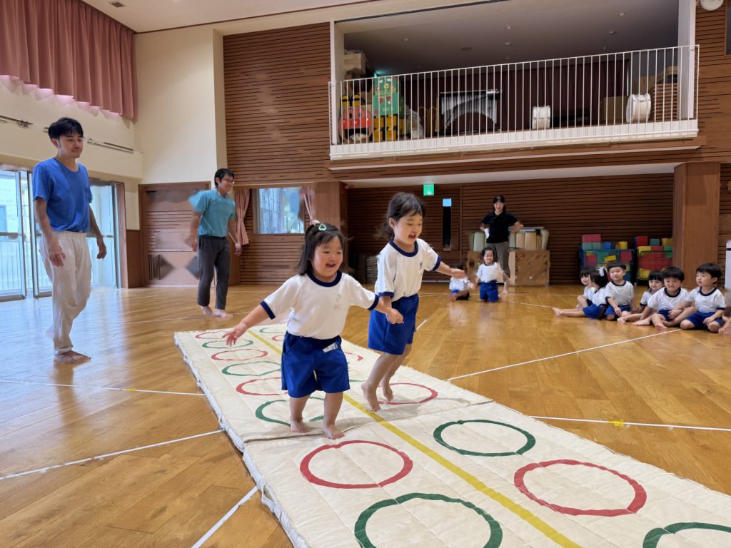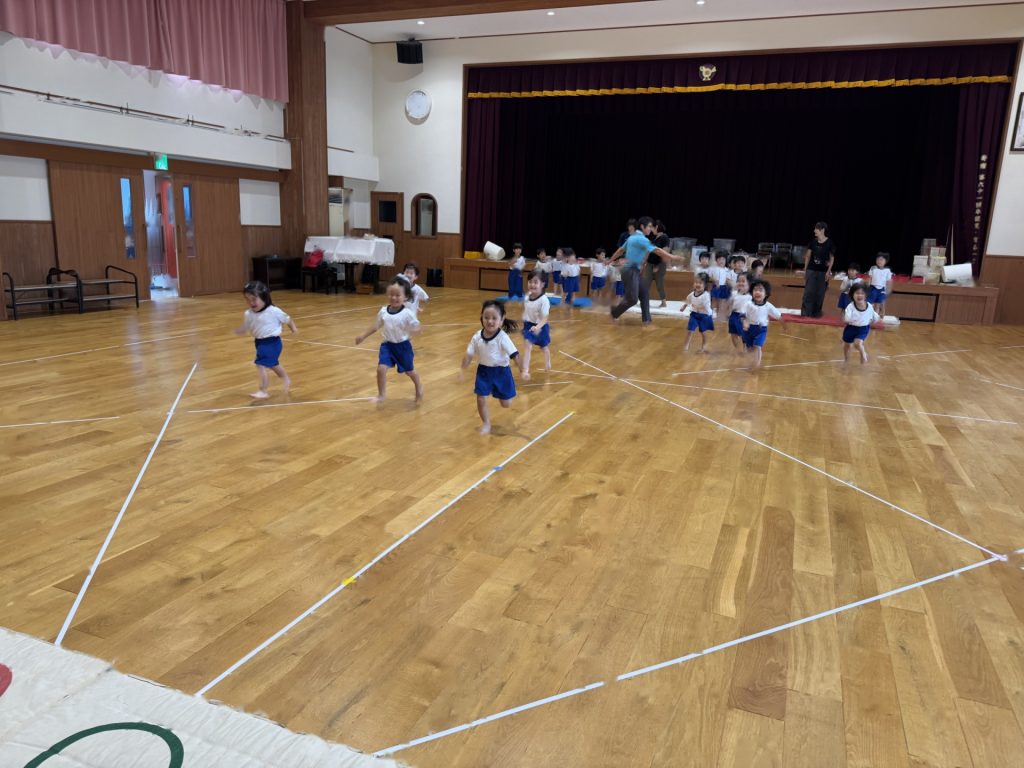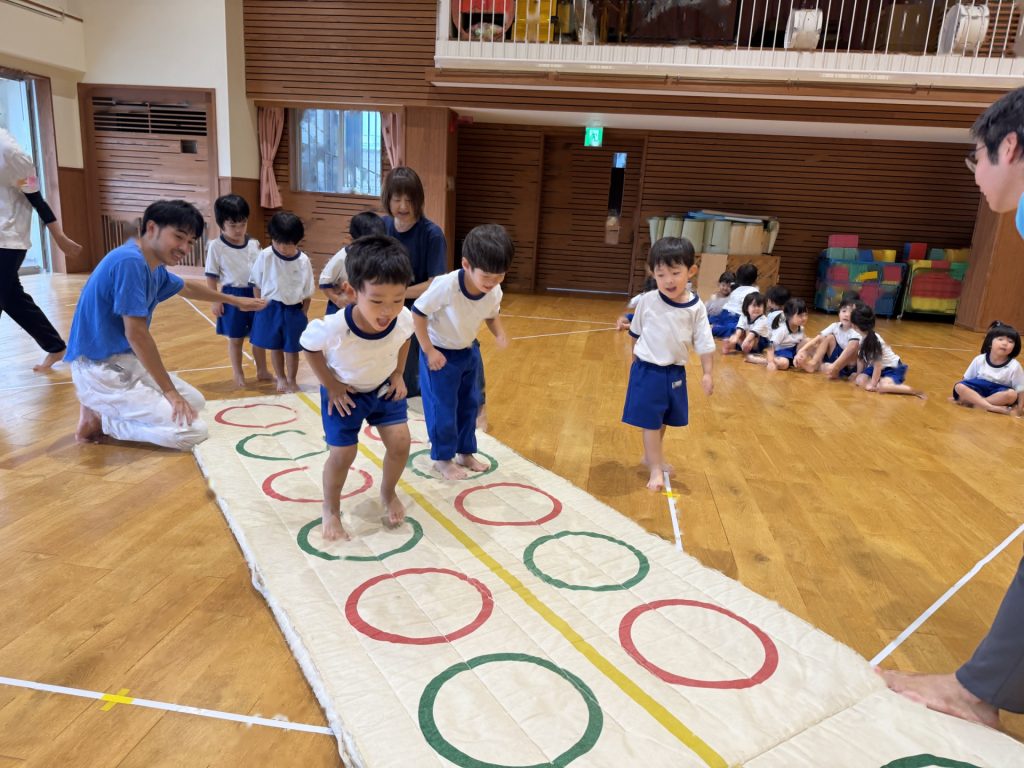 今年度の研究テーマでもある『音楽遊び”リトミック”』に関して、子ども達の育ちや職員の資質向上のため保育を見合う研究保育を実施しました。