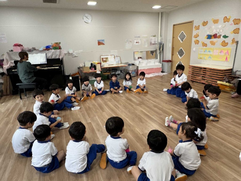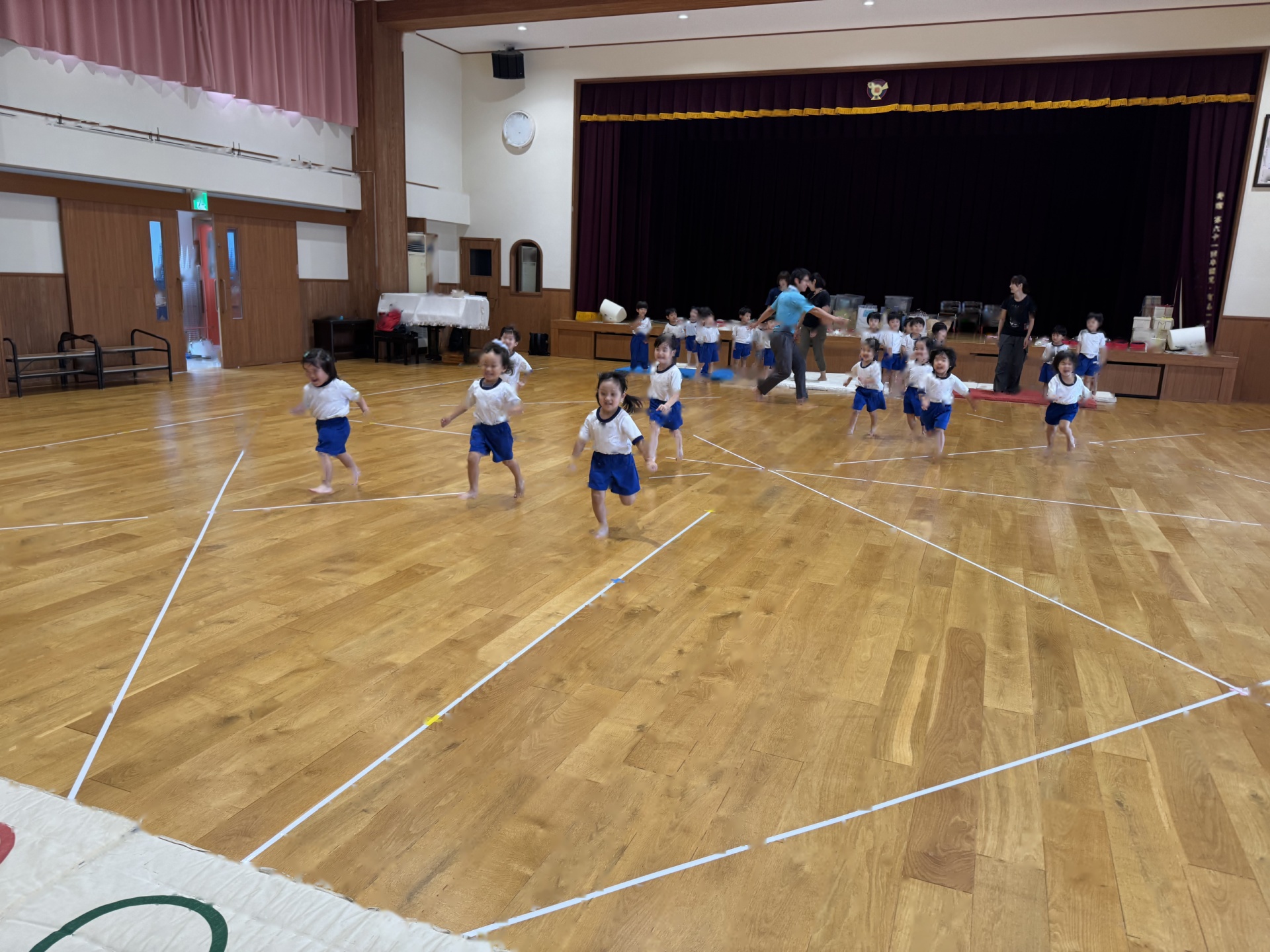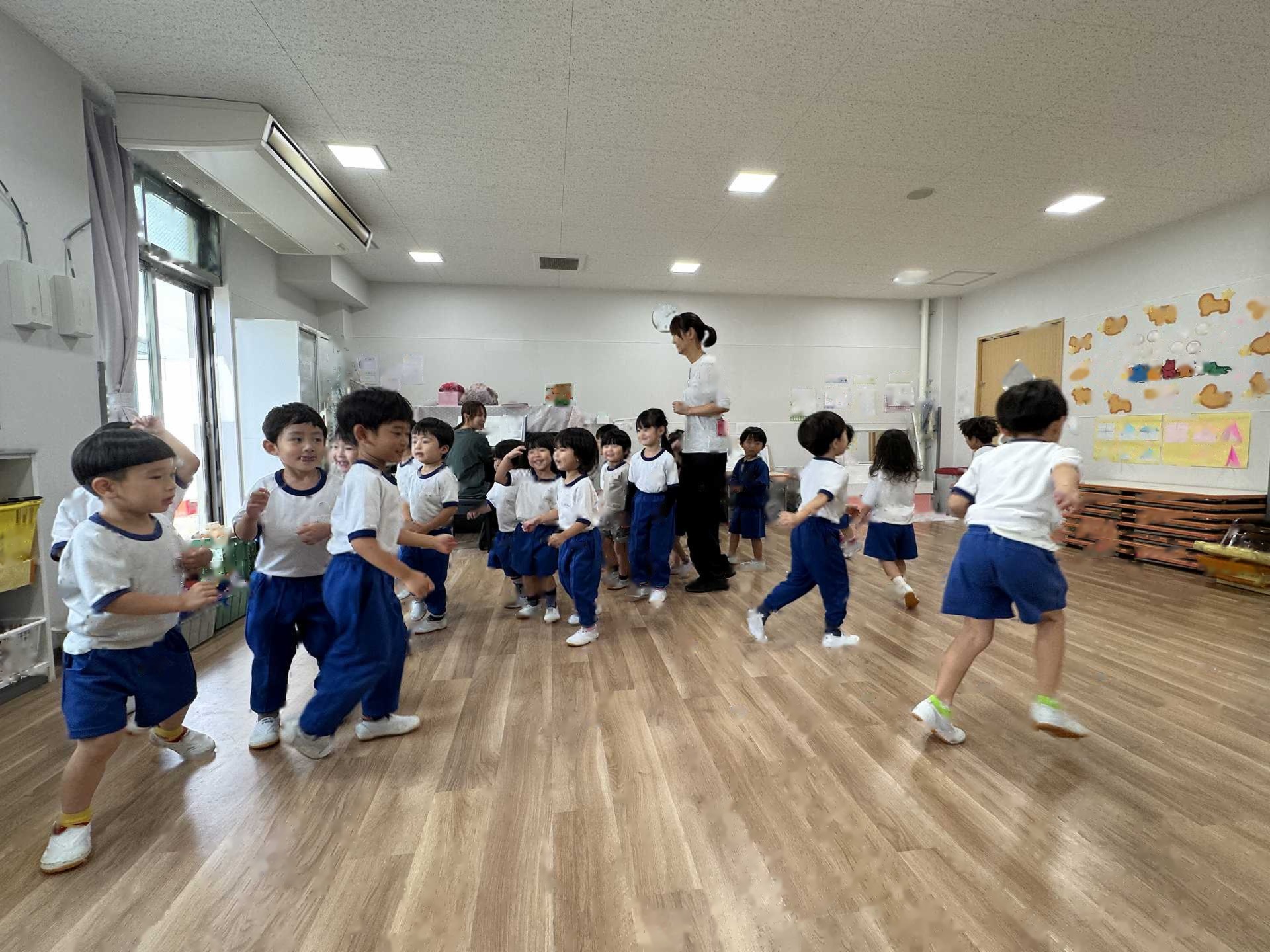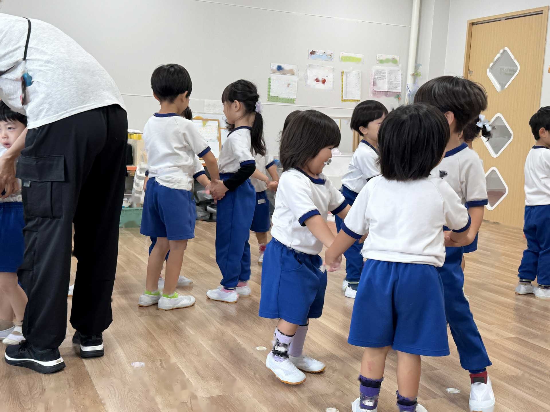 最後はバスごっこの曲に合わせてハンドルを持って運転して幼稚園に帰ります!活動の最初から最後までニコニコで楽しんで参加していたたんぽぽ組の子ども達でした♪