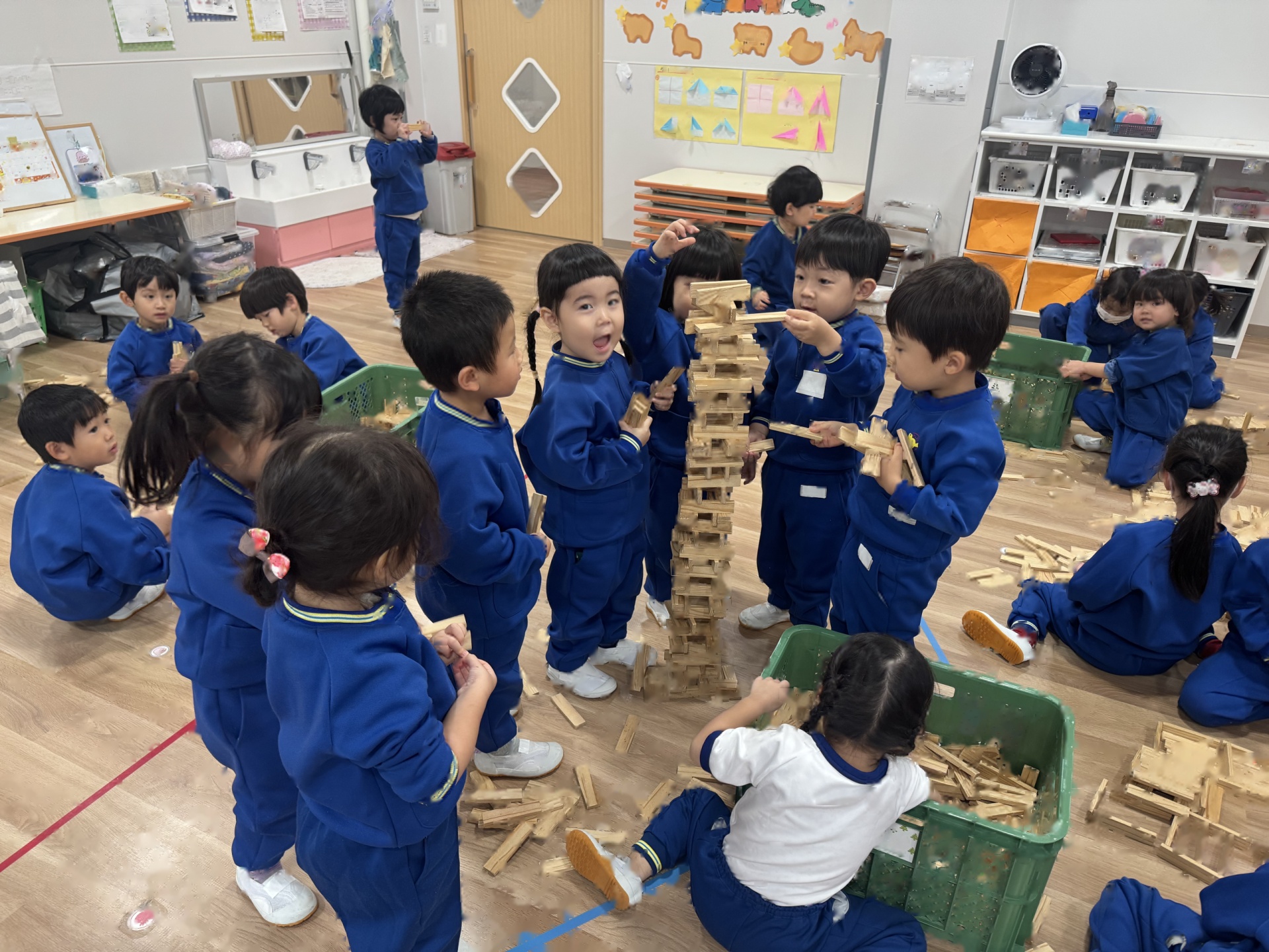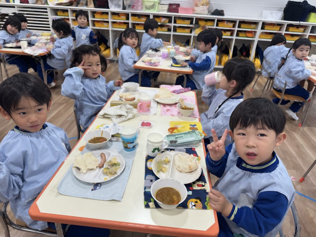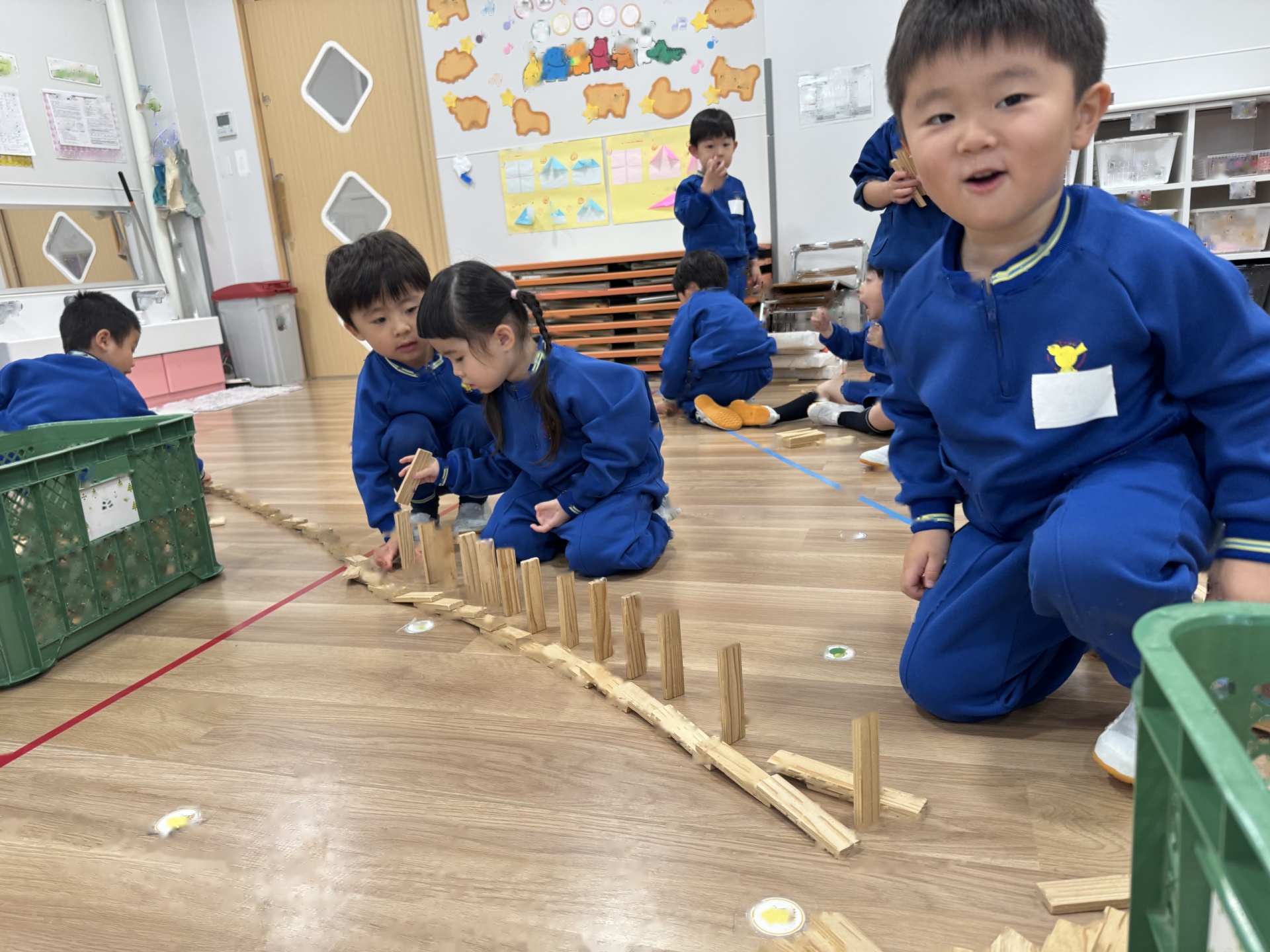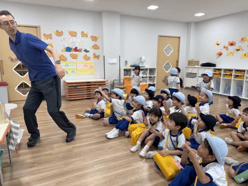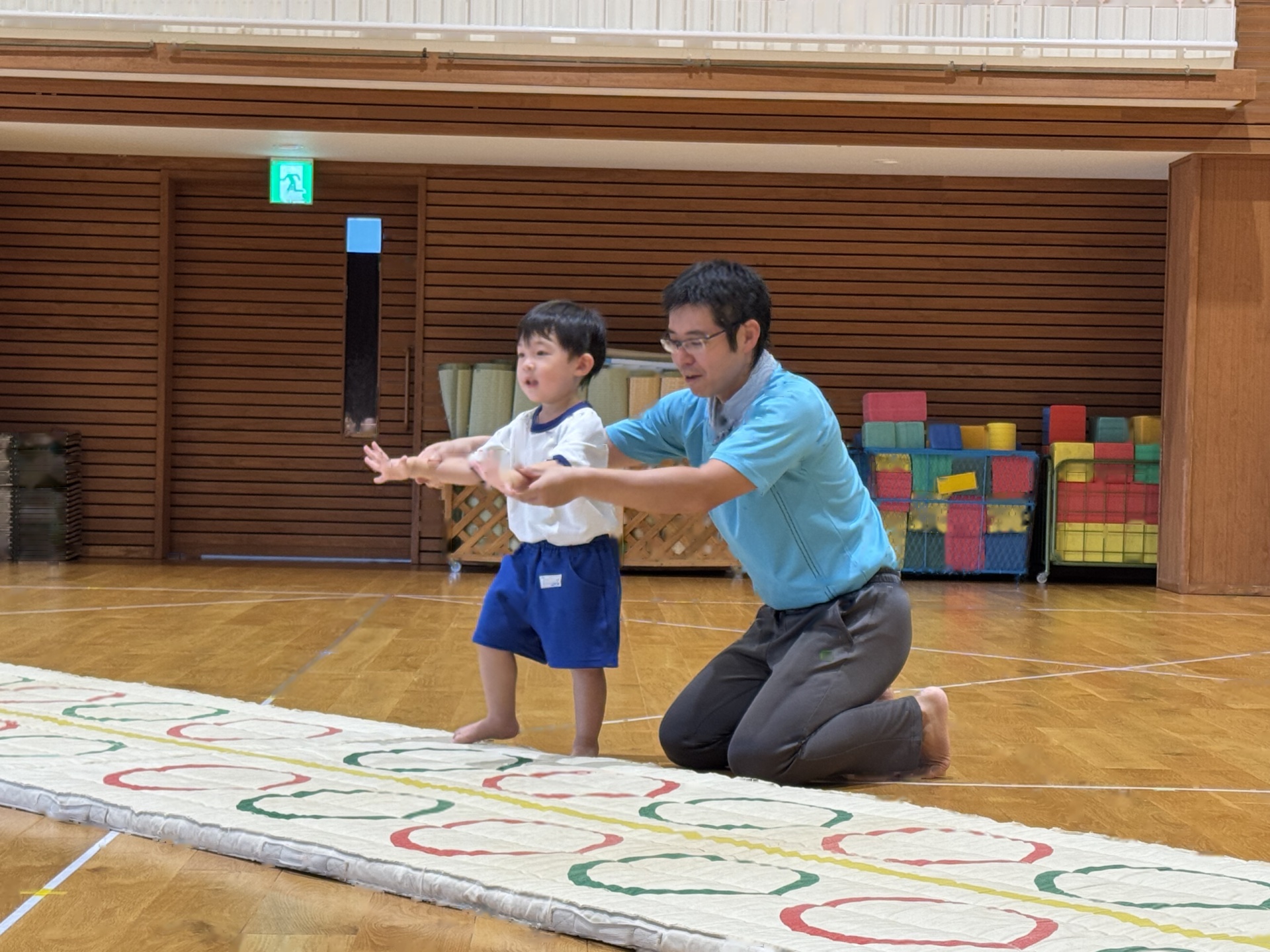 最後はバスごっこの曲に合わせてハンドルを持って運転して幼稚園に帰ります!活動の最初から最後までニコニコで楽しんで参加していたたんぽぽ組の子ども達でした♪