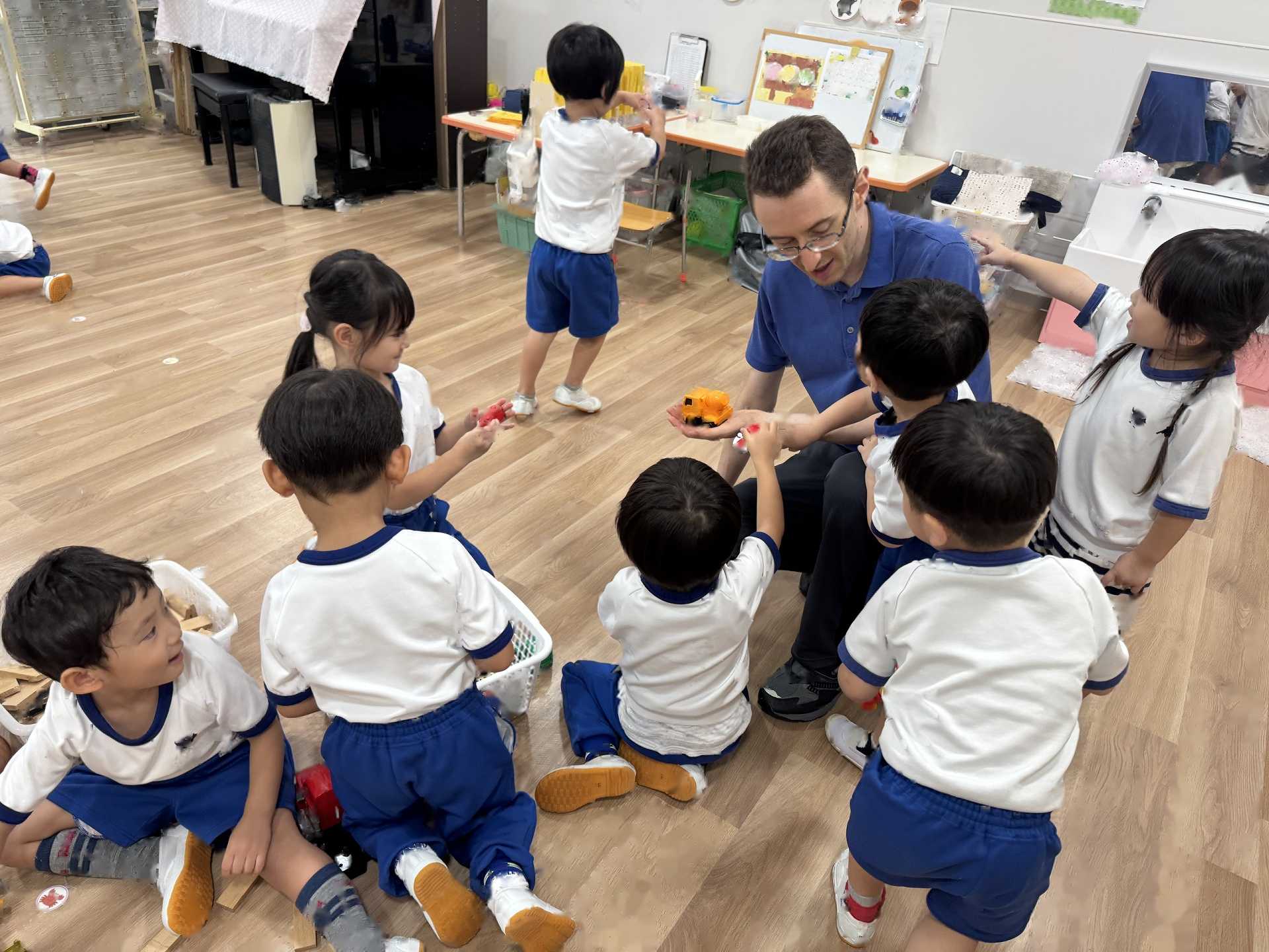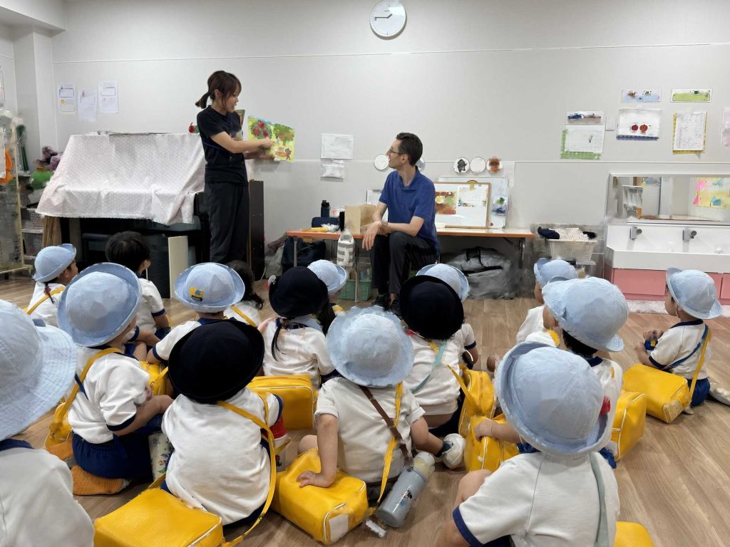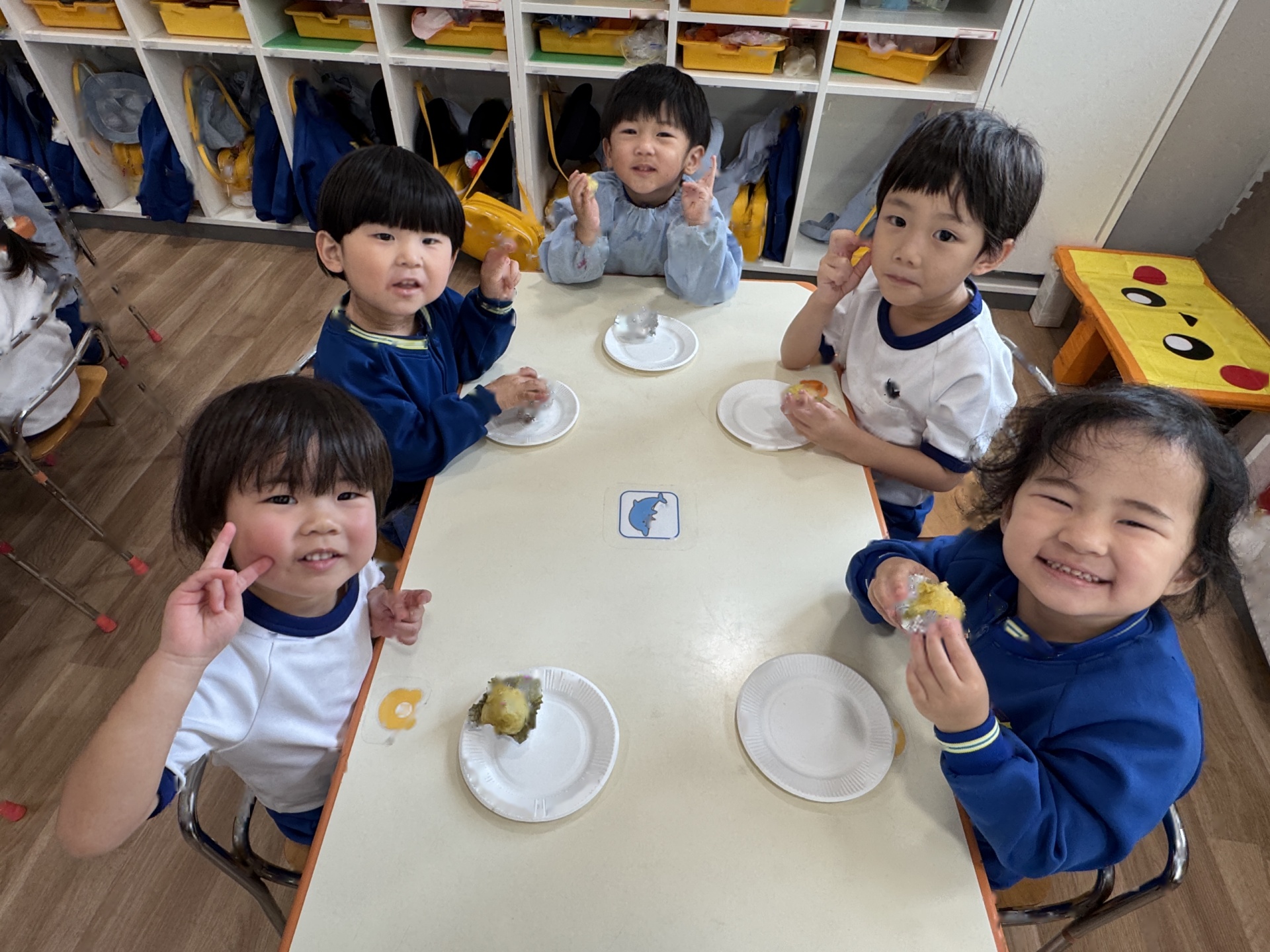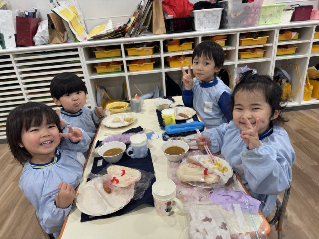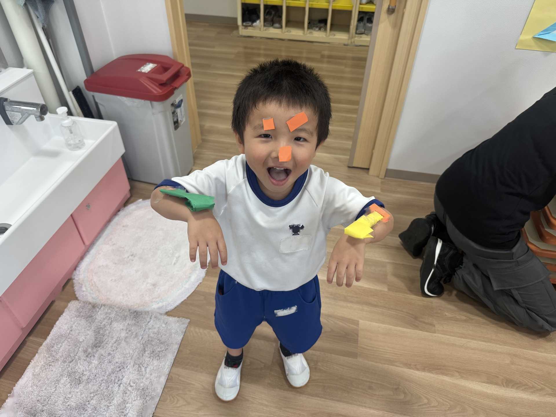 最後はバスごっこの曲に合わせてハンドルを持って運転して幼稚園に帰ります!活動の最初から最後までニコニコで楽しんで参加していたたんぽぽ組の子ども達でした♪