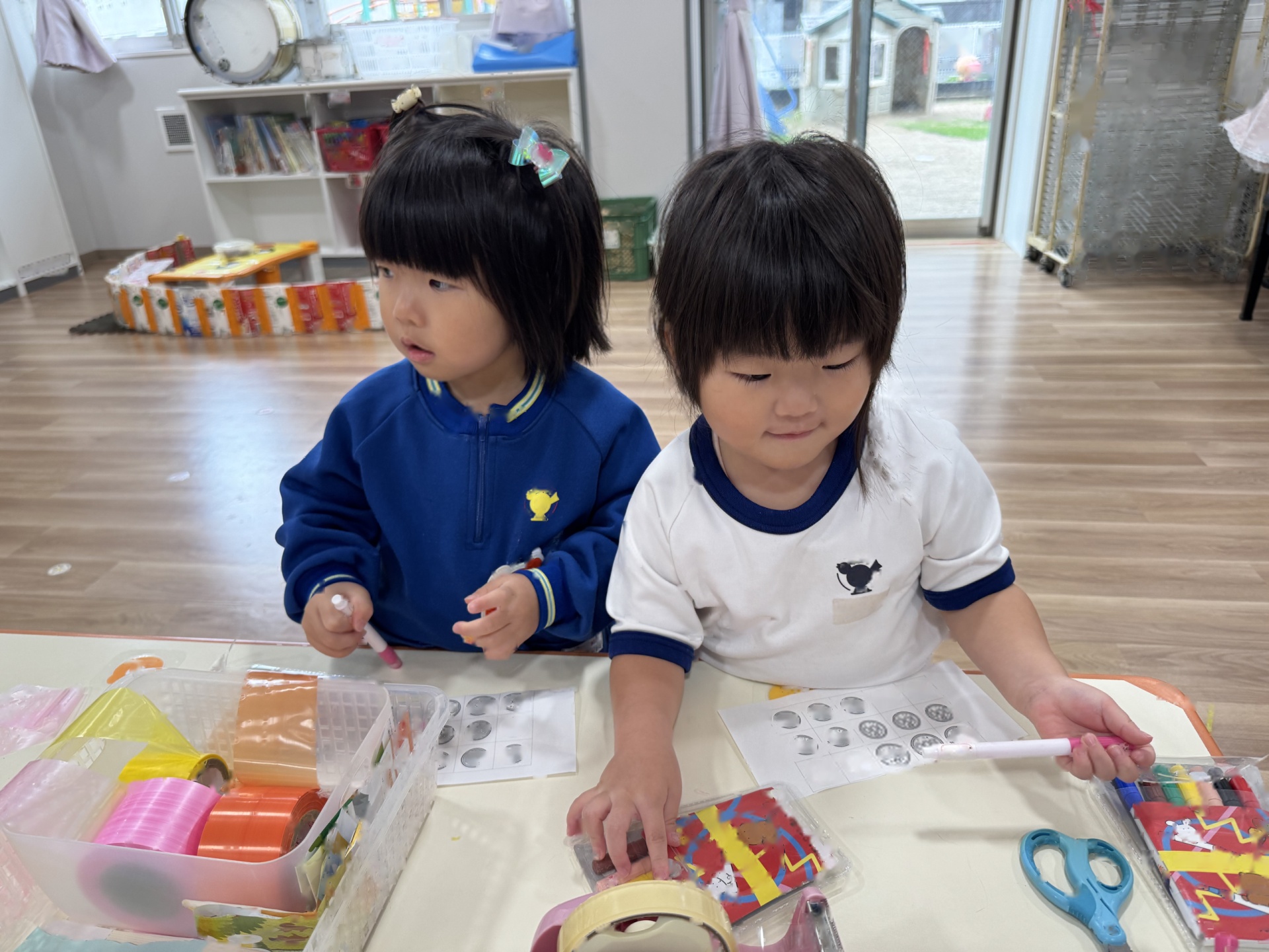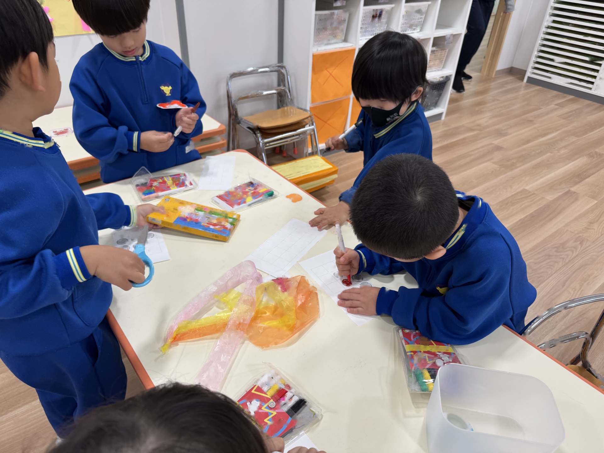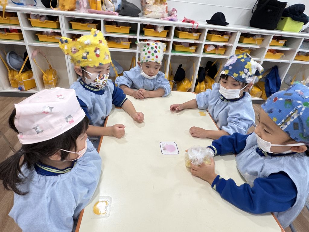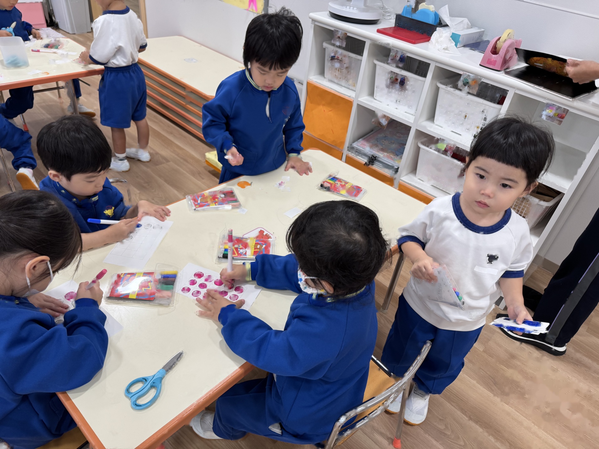 先週、年中さんから『あいすやさんをするので、来てください!』とご招待を受け、今日はゆり組あいす屋さんにお買い物に行ってきました☆お買い物をするために、まずは自分たちでお金の準備です♪