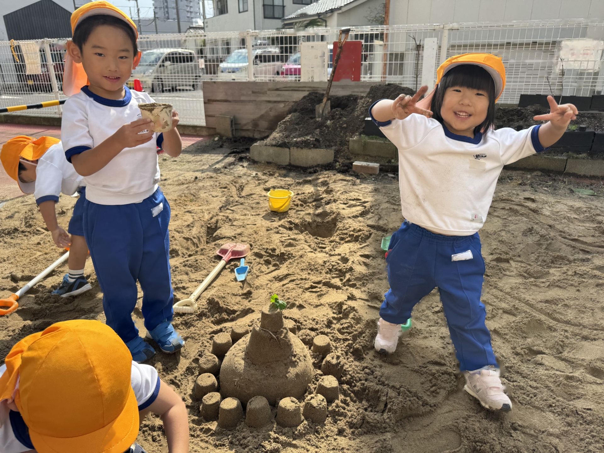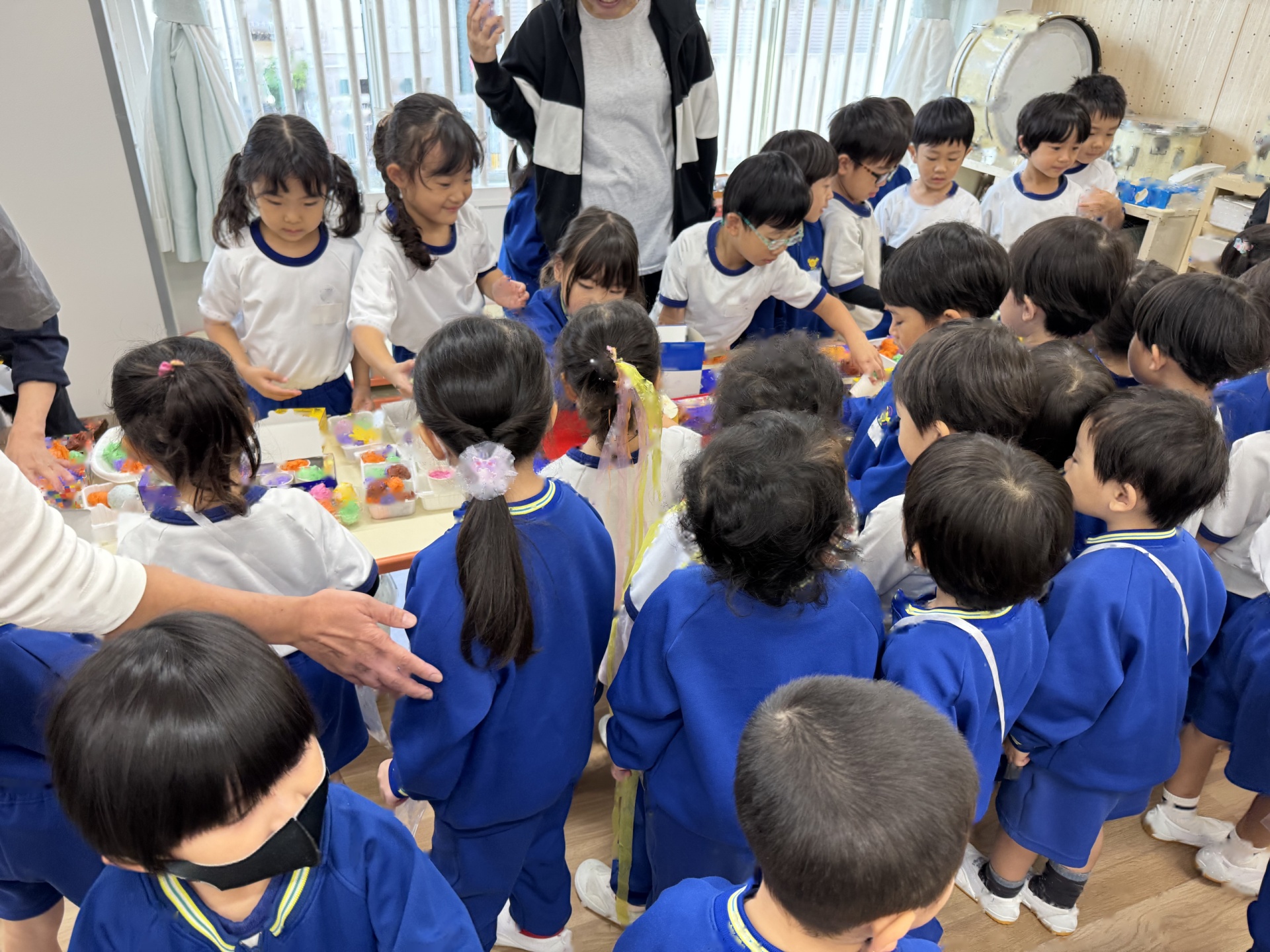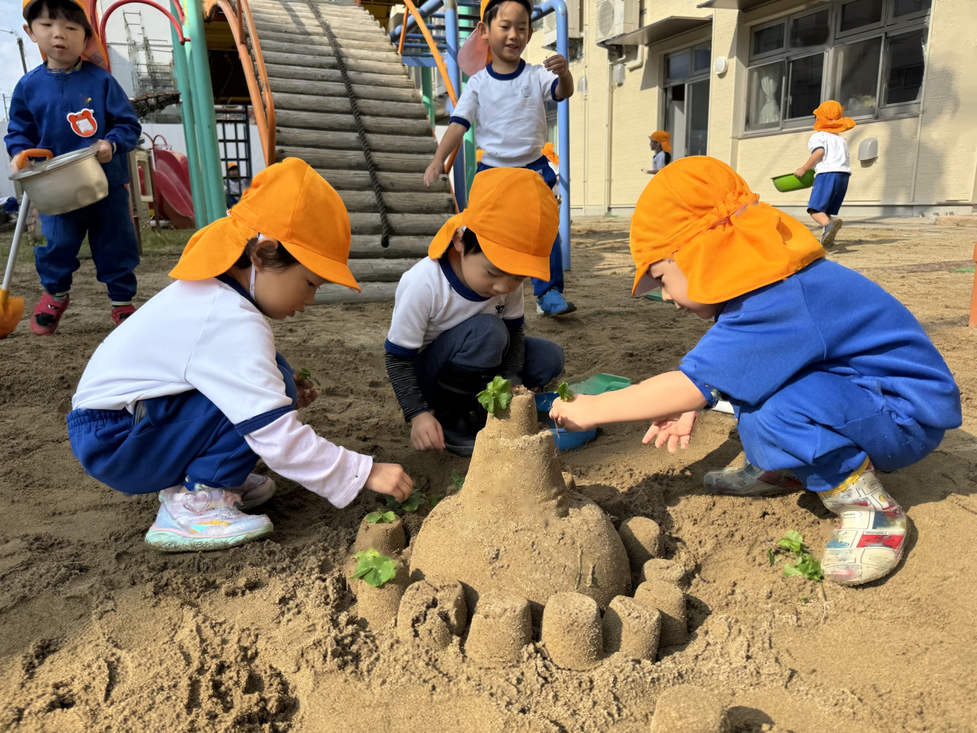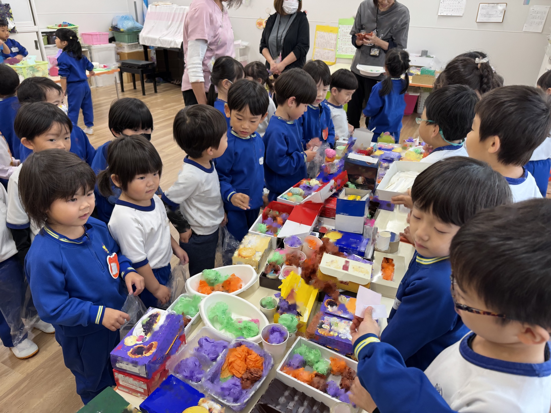 ☆初めてのお店屋さんごっこ、素敵な空間に目が輝いていたたんぽぽ組の子ども達でした♪ゆり組さん、ありがとう!!午後からは園庭で遊びました。午前中のお店屋さんごっこをうけて、砂場であいすやさんが始まったり、デコレーションケーキ作りが始まったりと遊びが広がっている様子がみられました☆