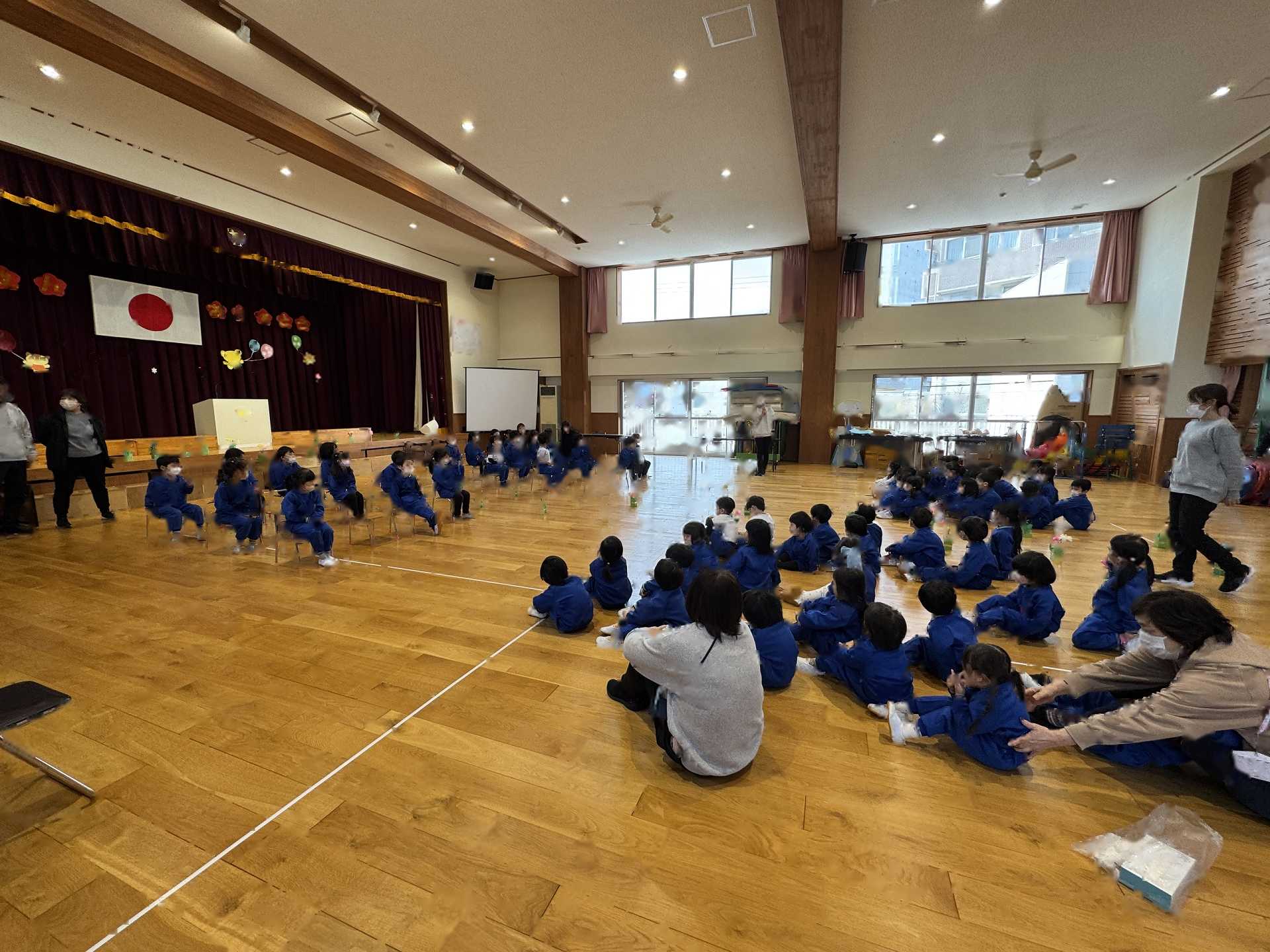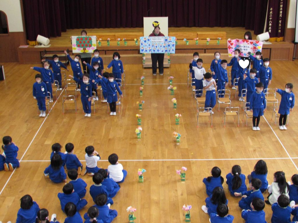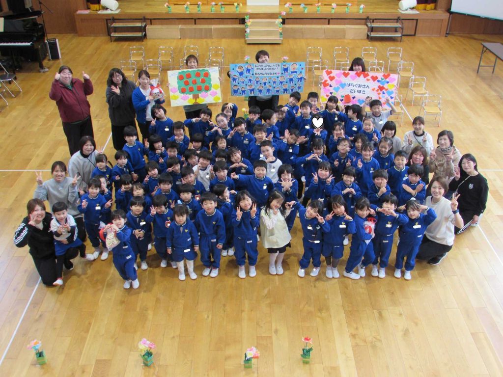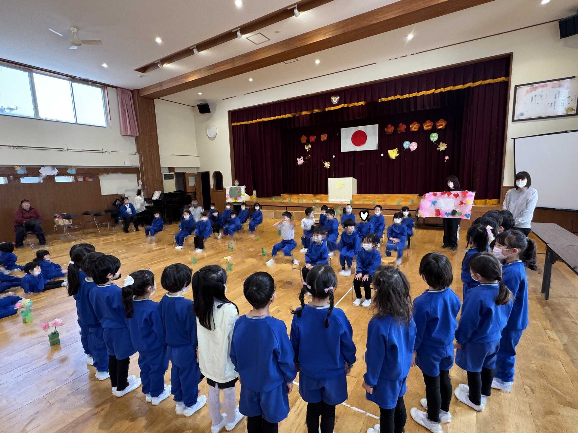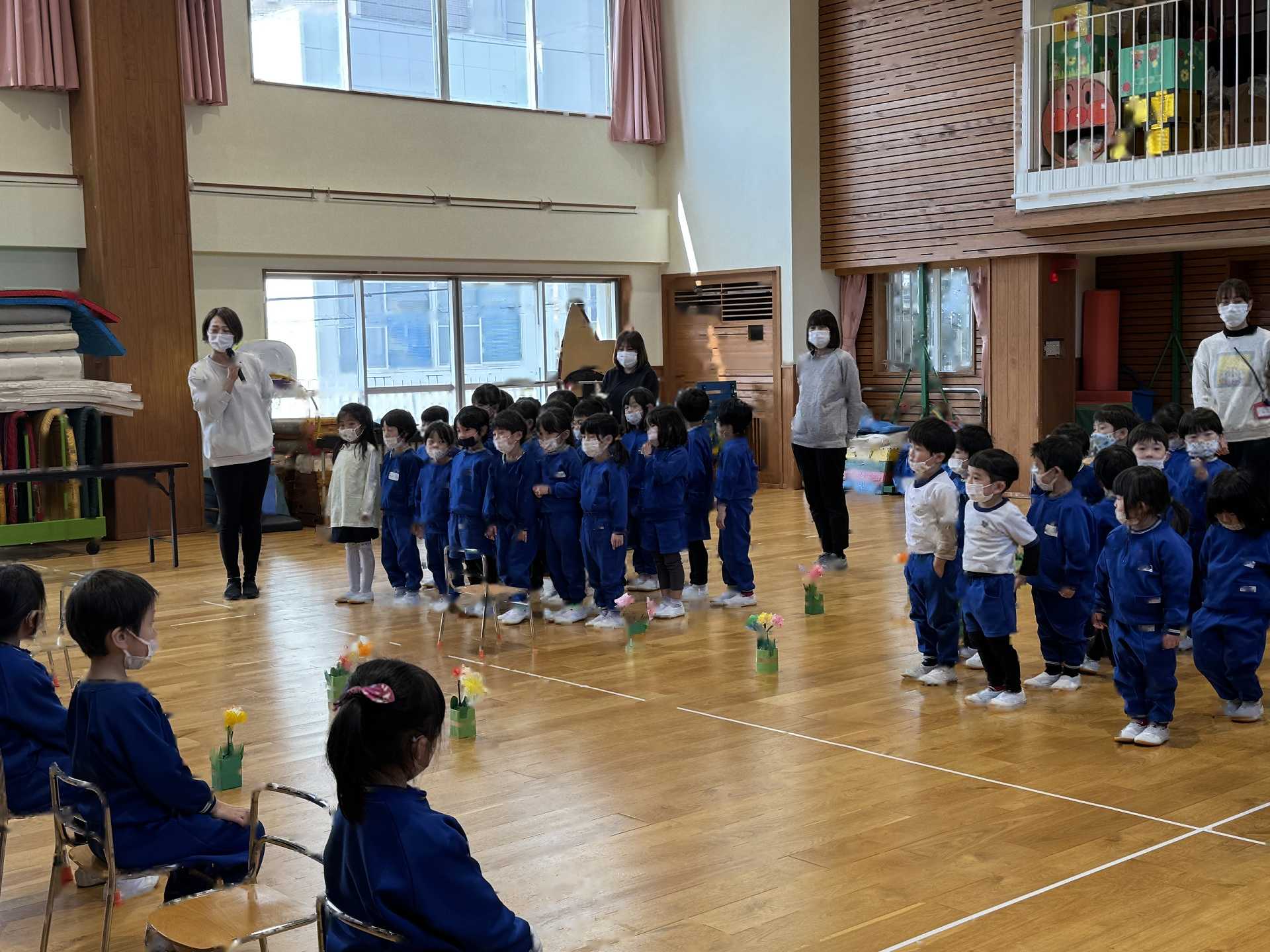 たんぽぽ組&ばら組の子ども達と一緒に、『発表会おつかれさまパーティー』を行いました♪まずはみんなで、たんぽぽ組のダンスを振り返り、その後、みんなでミッキーのダンスを踊ってみました☆