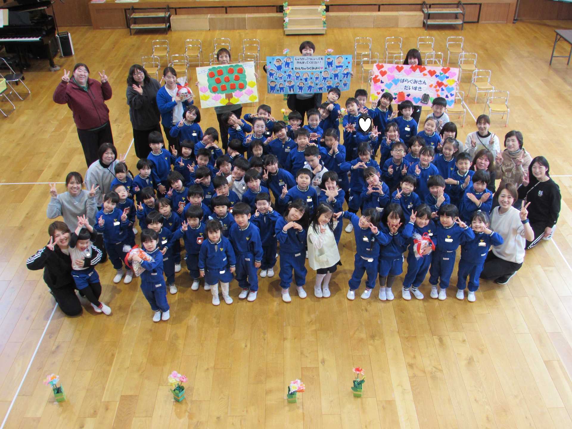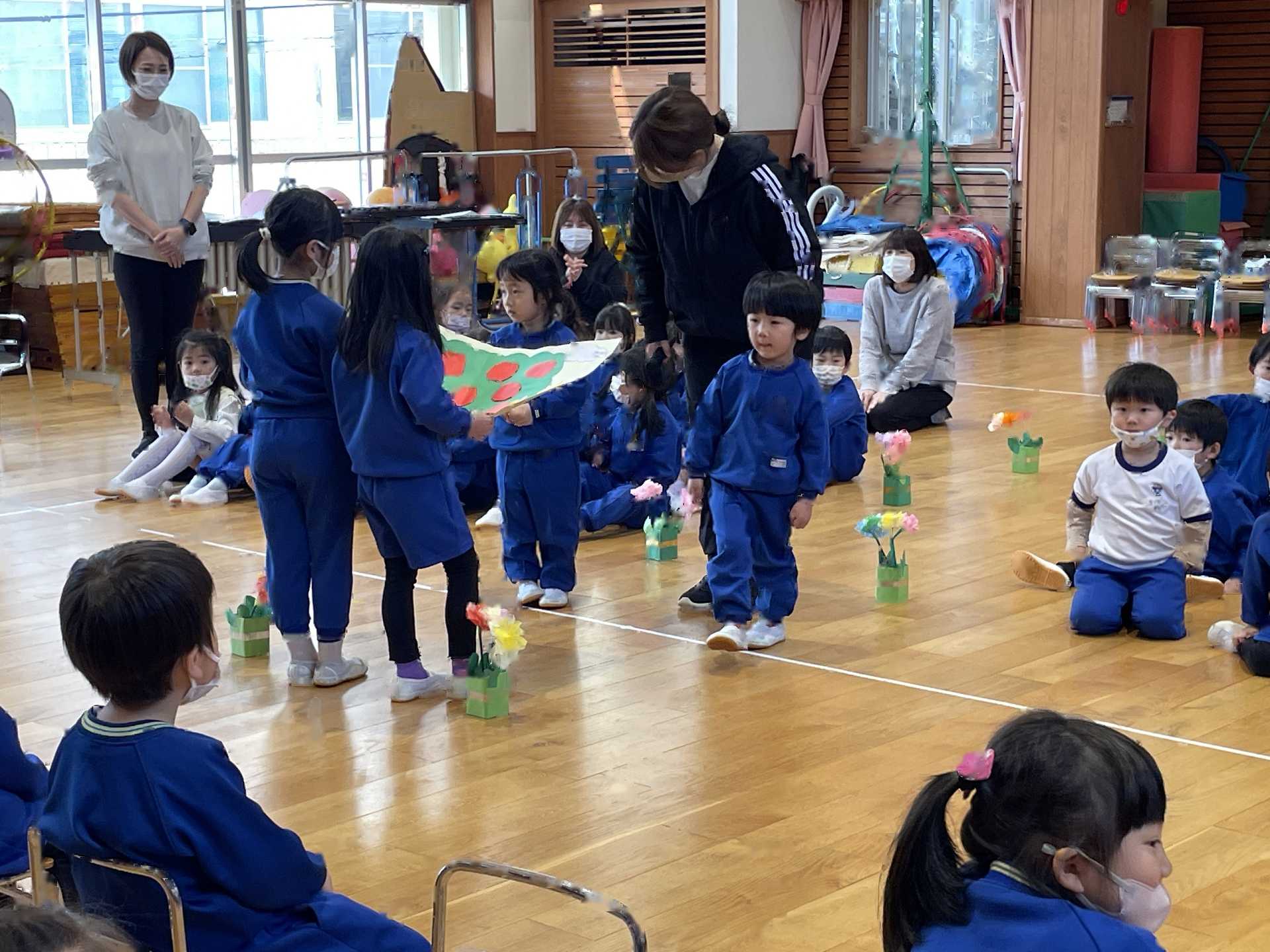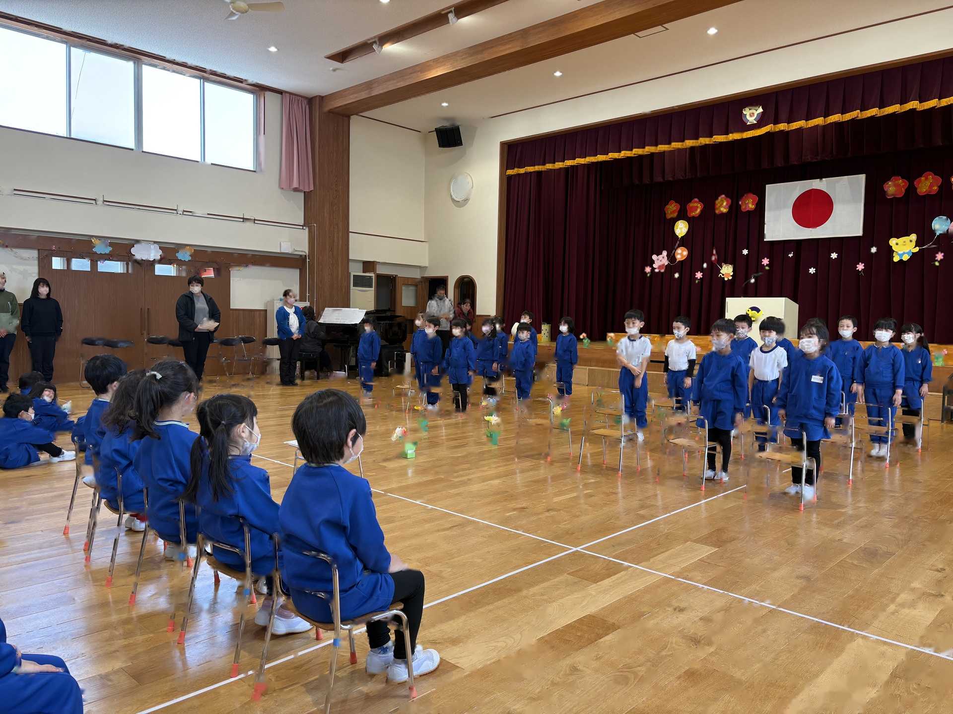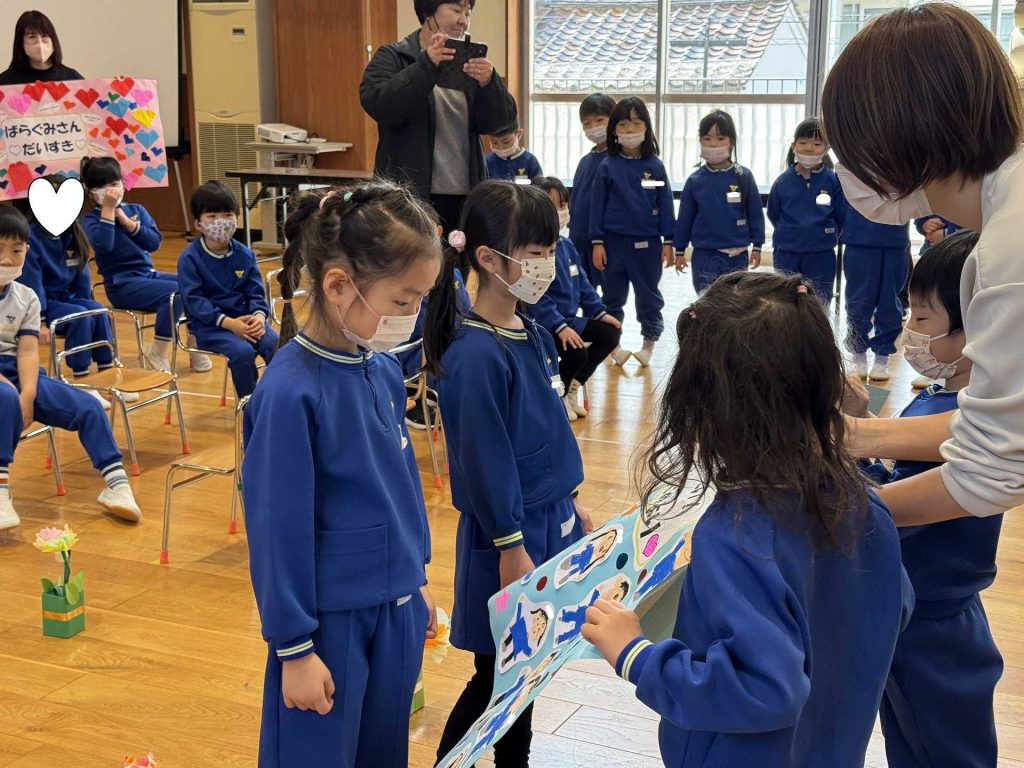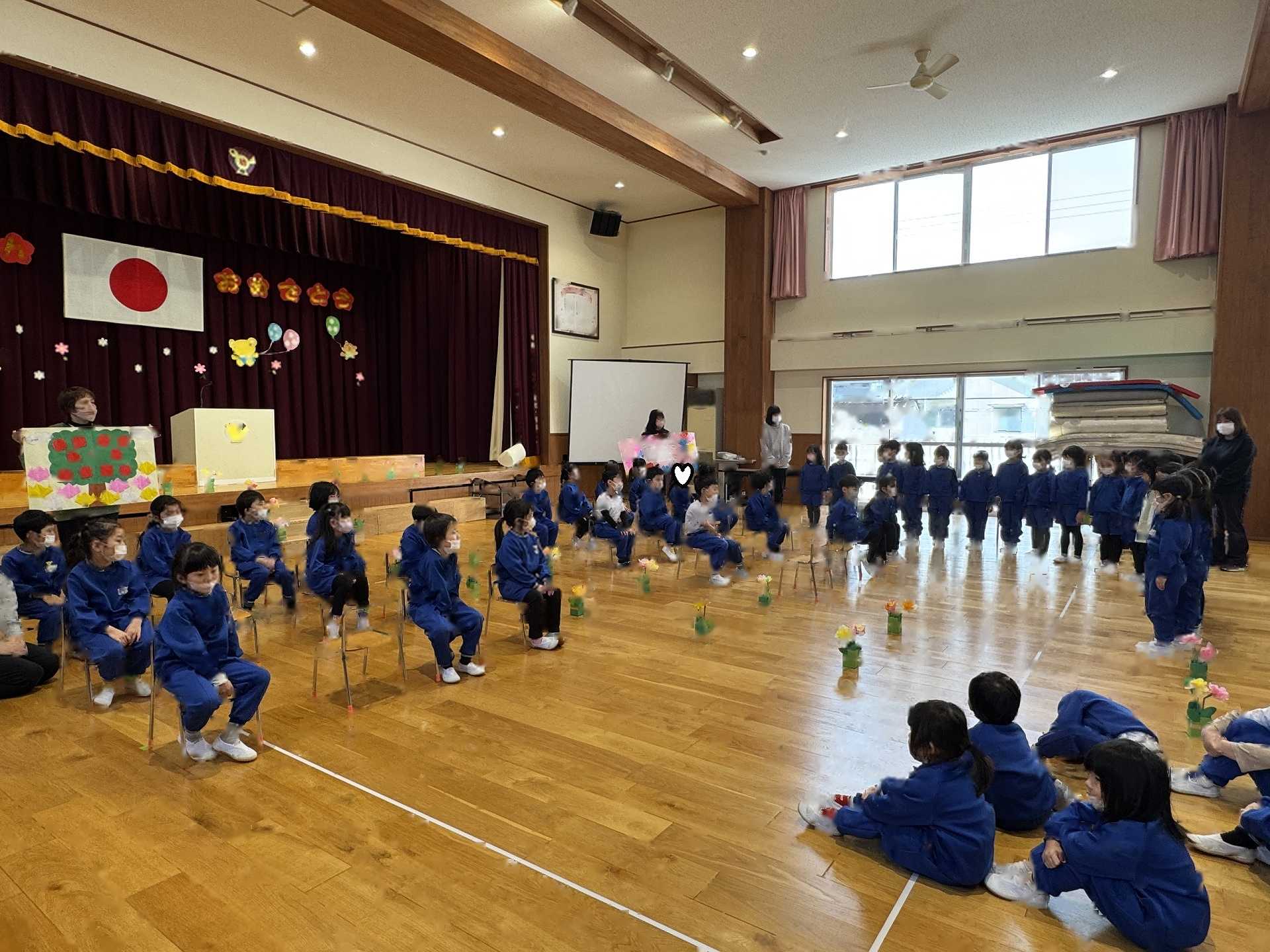 たんぽぽ組&ばら組の子ども達と一緒に、『発表会おつかれさまパーティー』を行いました♪まずはみんなで、たんぽぽ組のダンスを振り返り、その後、みんなでミッキーのダンスを踊ってみました☆
