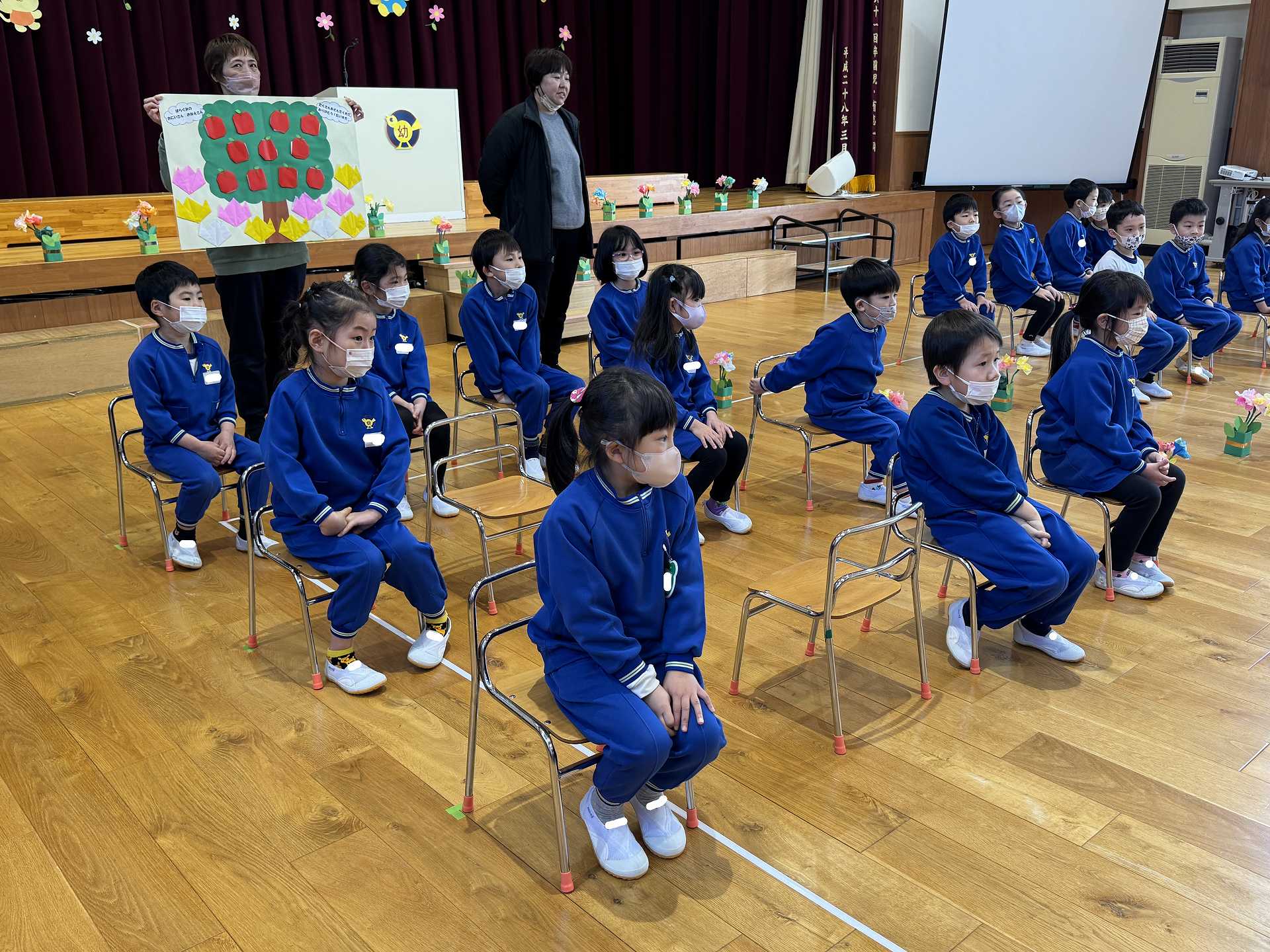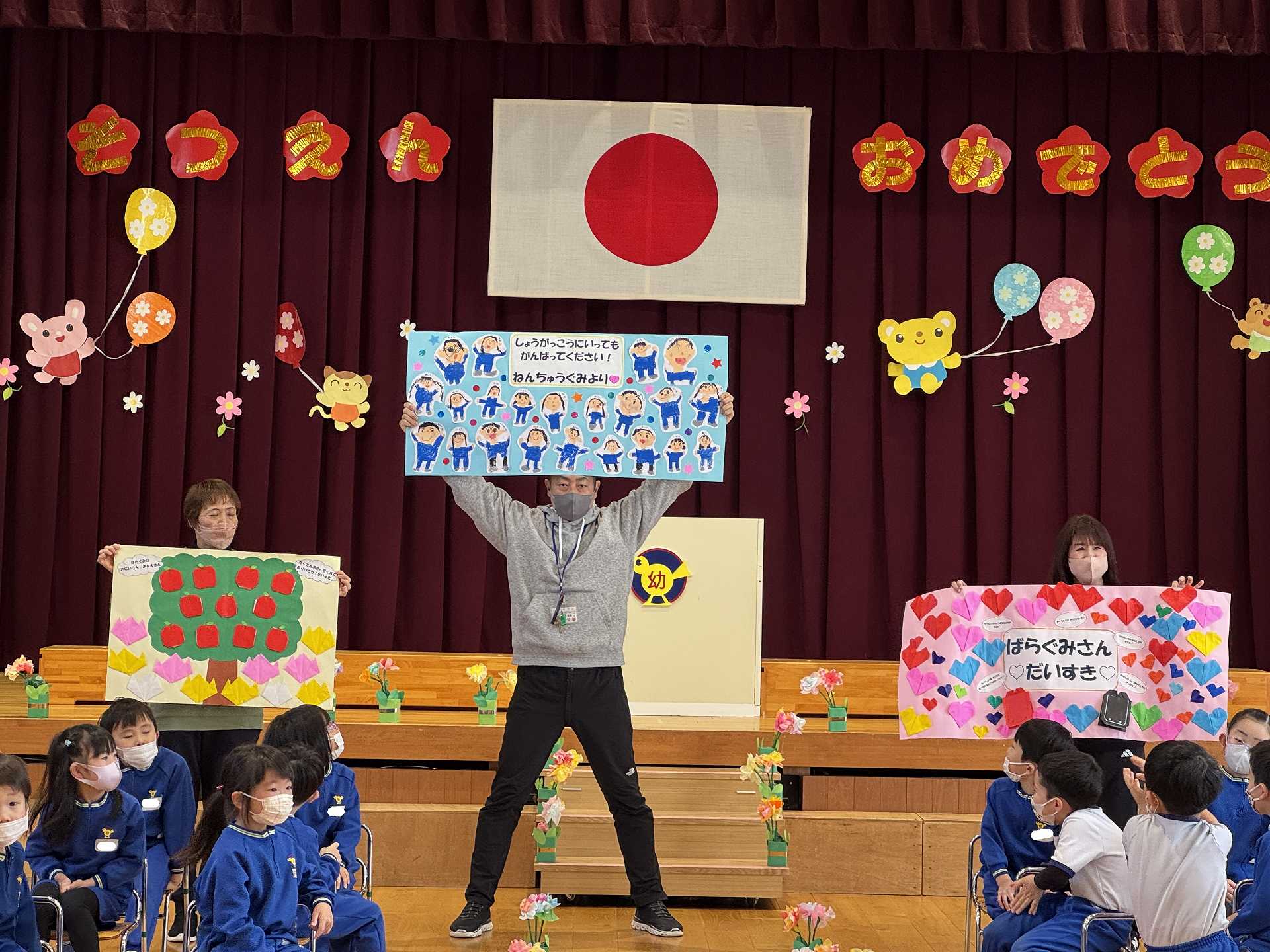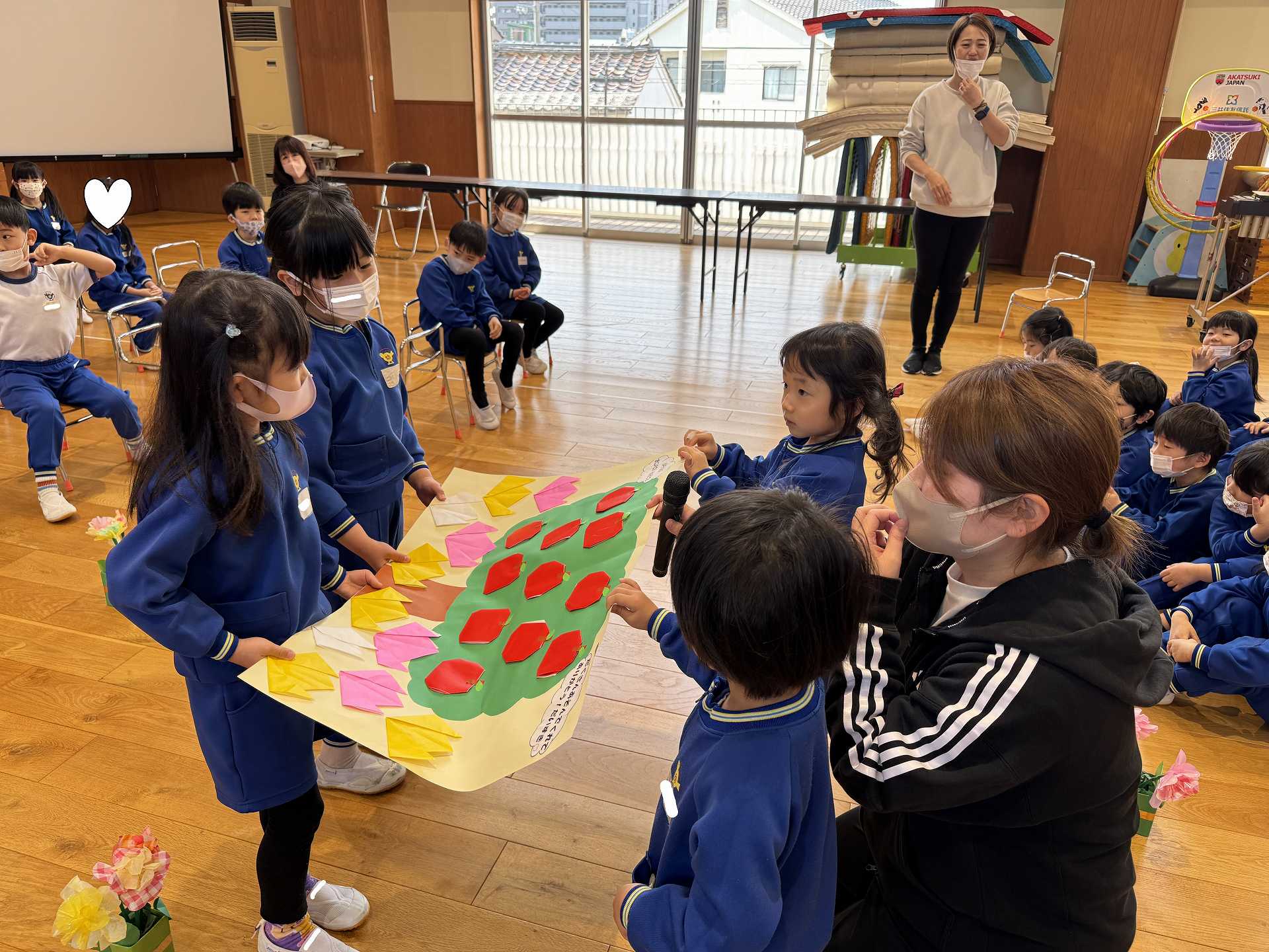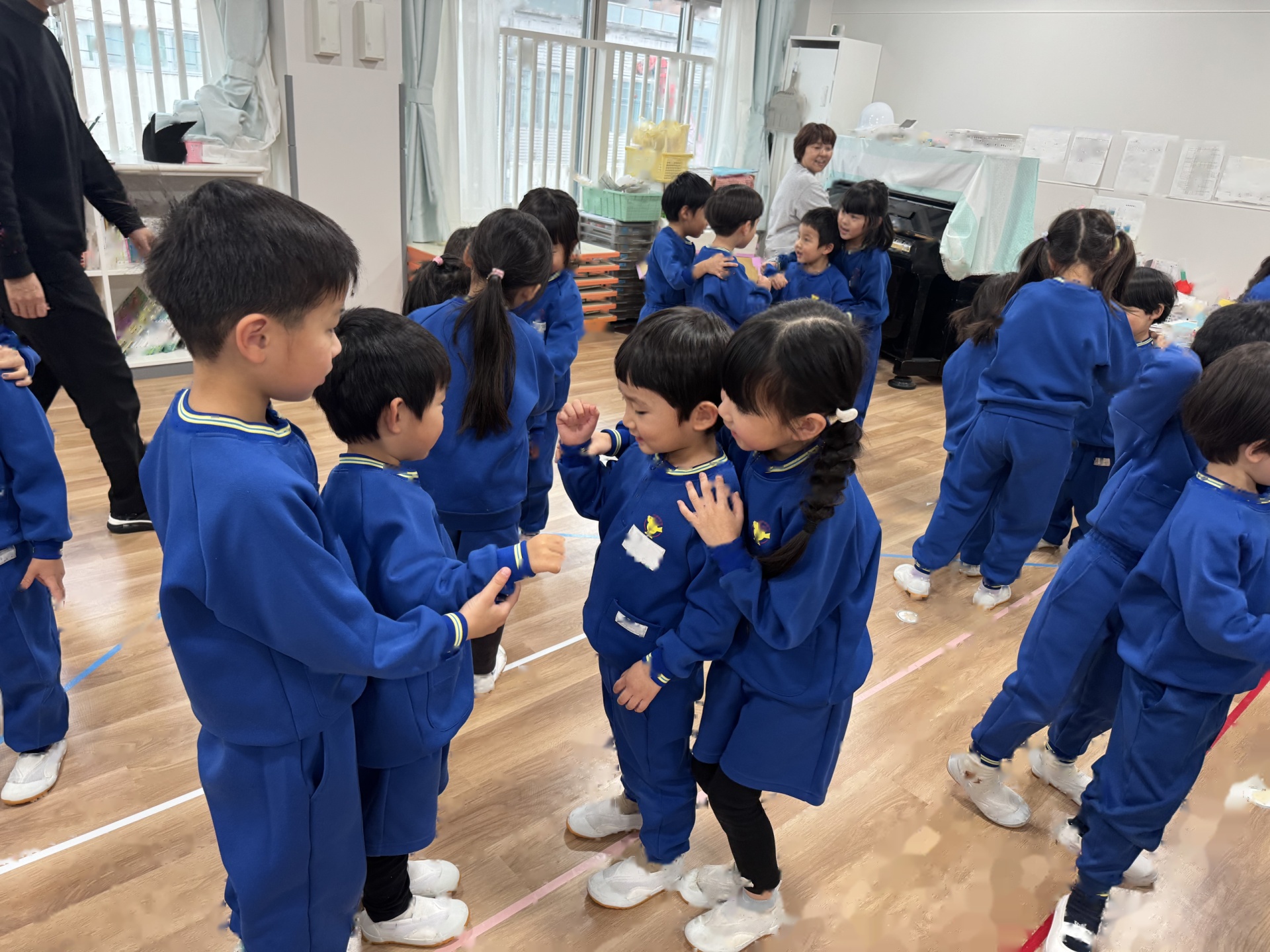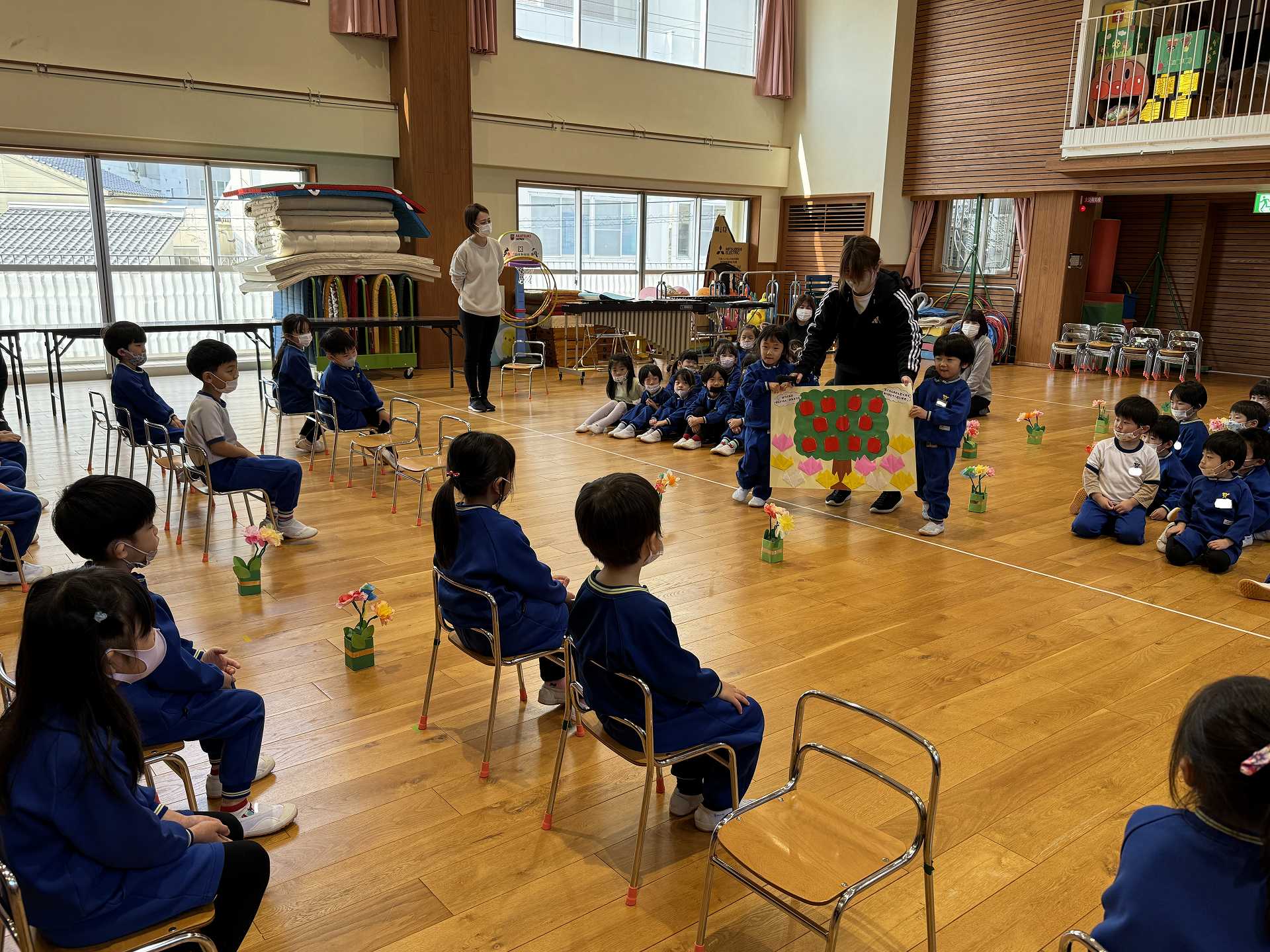 たんぽぽ組&ばら組の子ども達と一緒に、『発表会おつかれさまパーティー』を行いました♪まずはみんなで、たんぽぽ組のダンスを振り返り、その後、みんなでミッキーのダンスを踊ってみました☆