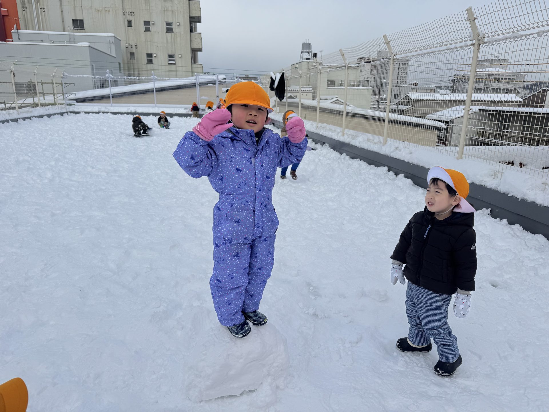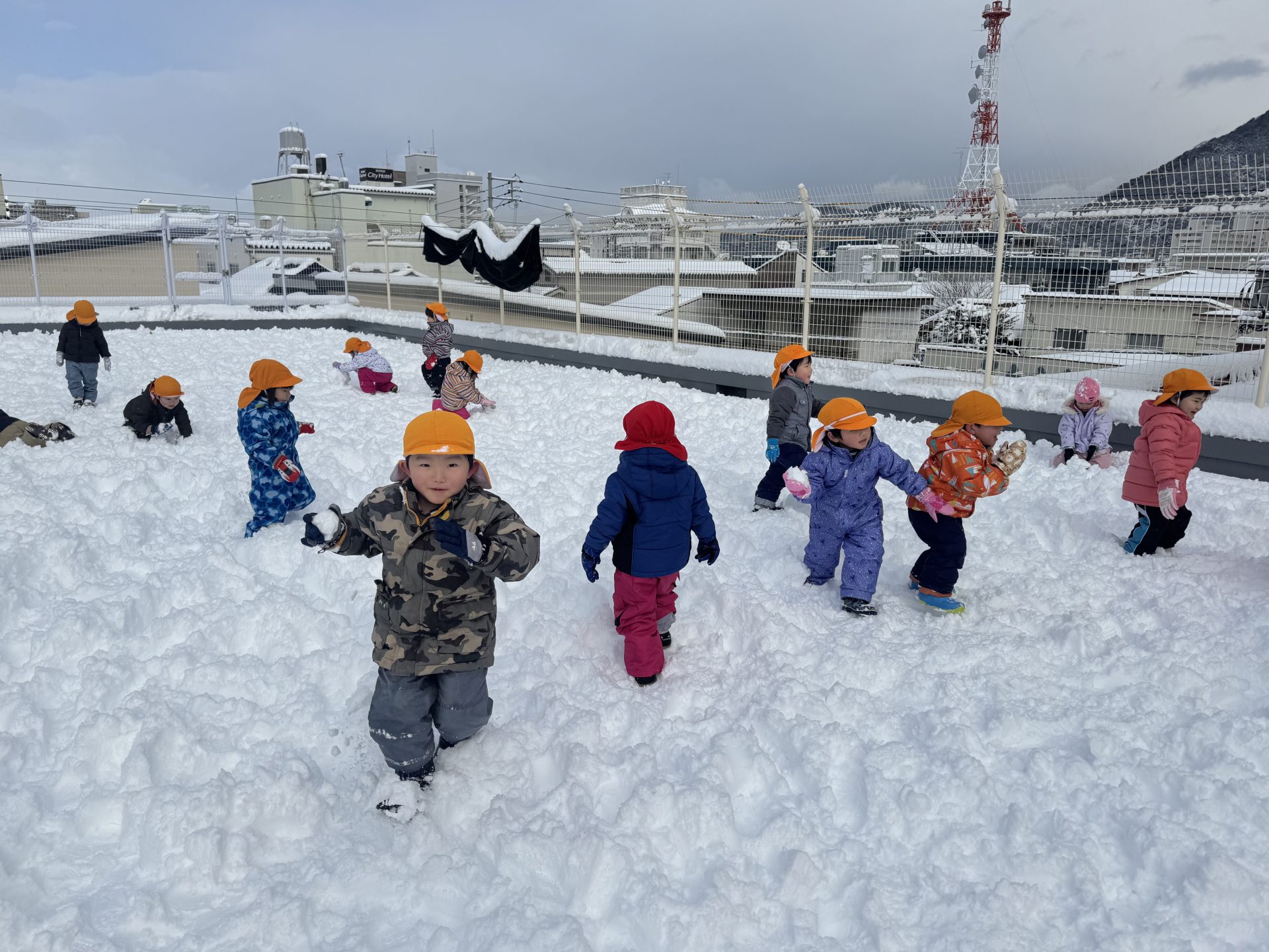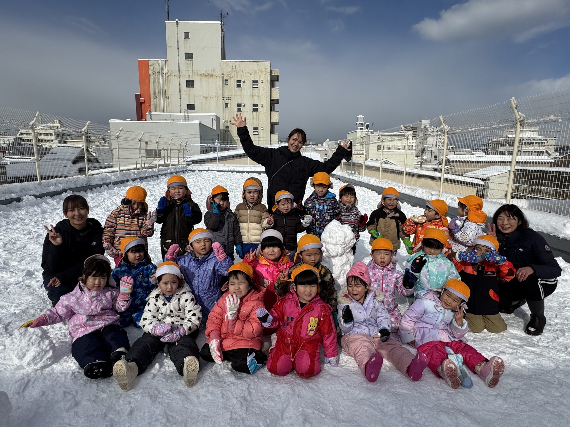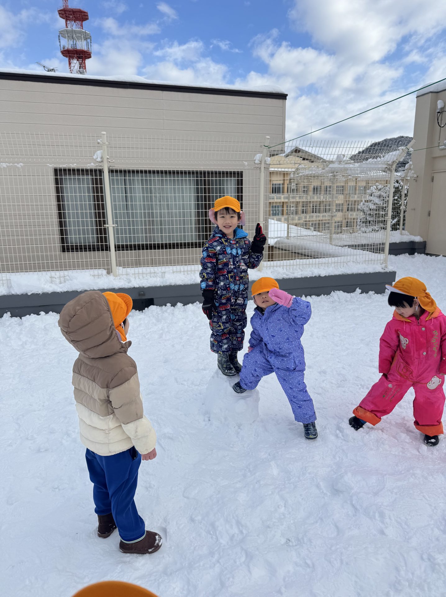 午後からは年中さんと一緒に屋上で雪遊びをしました☆1月の雪遊びは今日でおしまいですね。来月も雪遊びができますように・・・!!