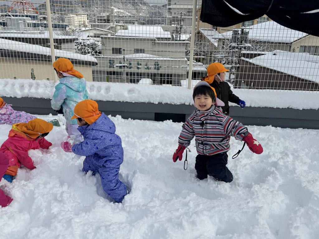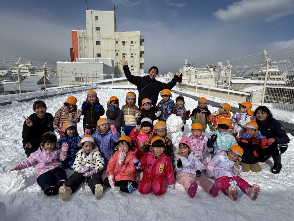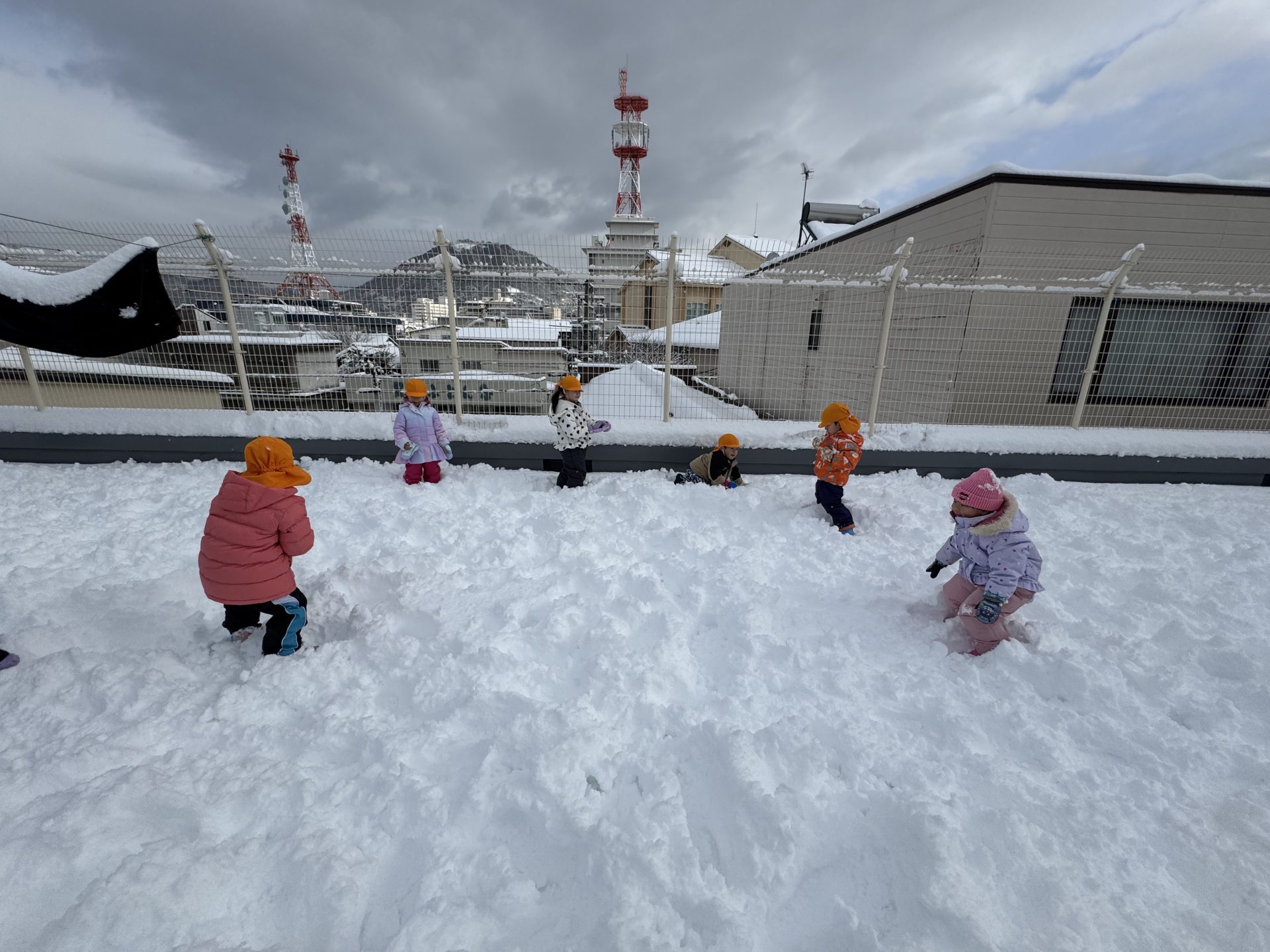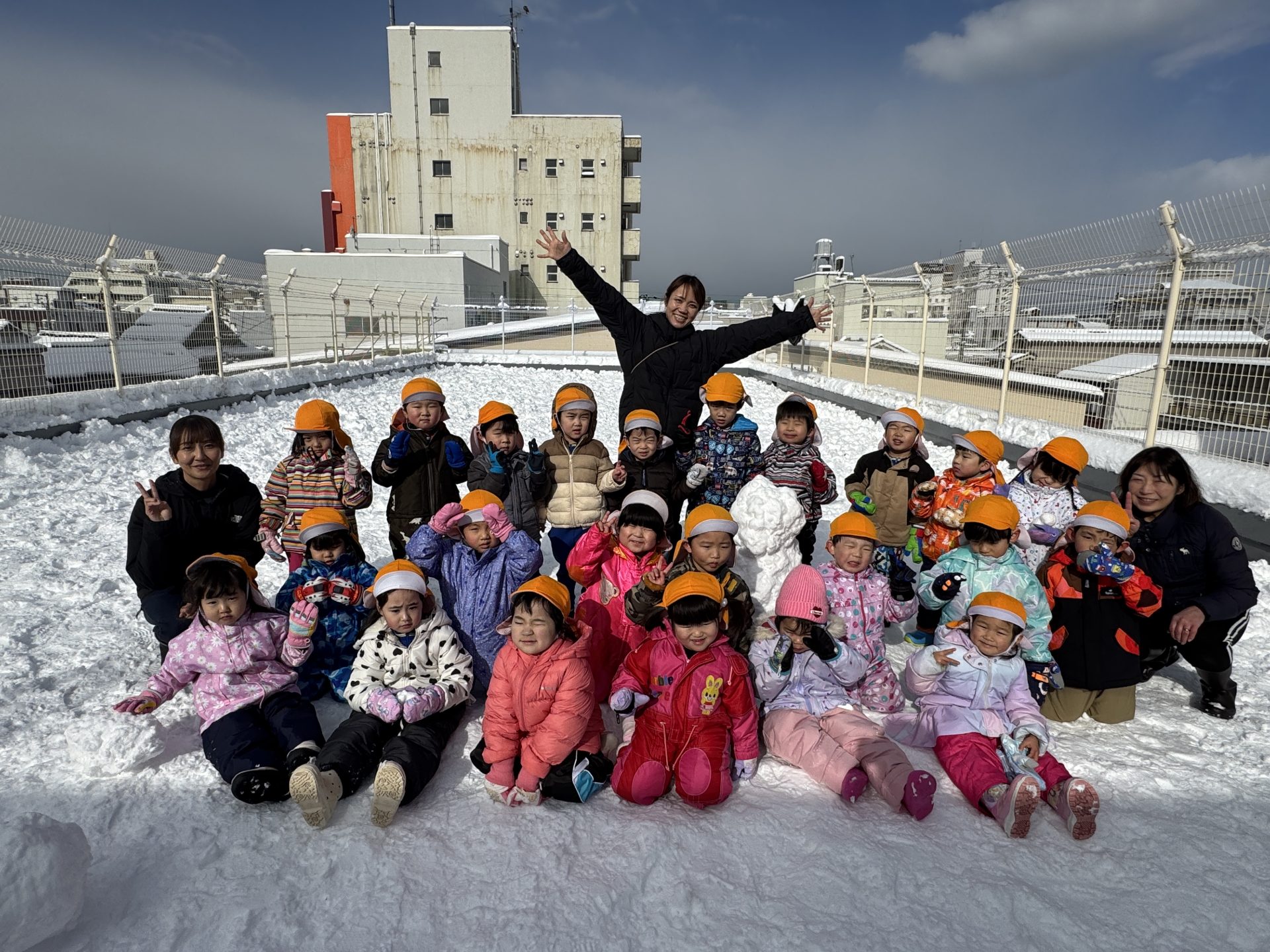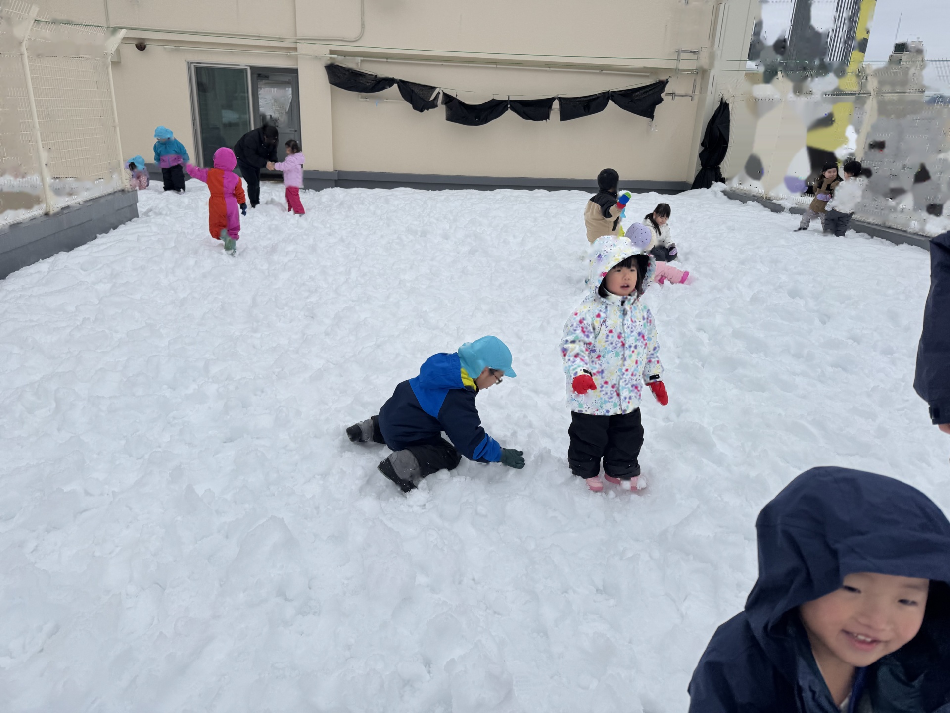 午後からは年中さんと一緒に屋上で雪遊びをしました☆1月の雪遊びは今日でおしまいですね。来月も雪遊びができますように・・・!!