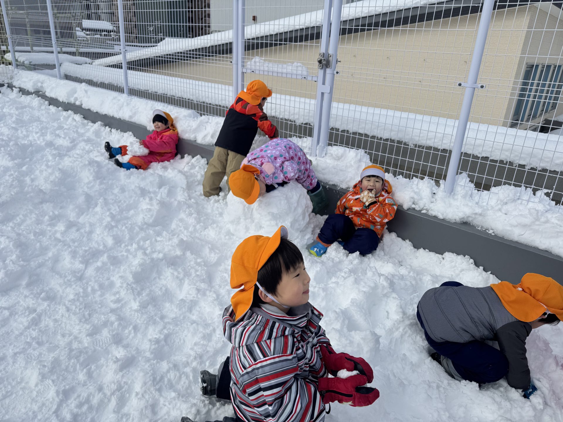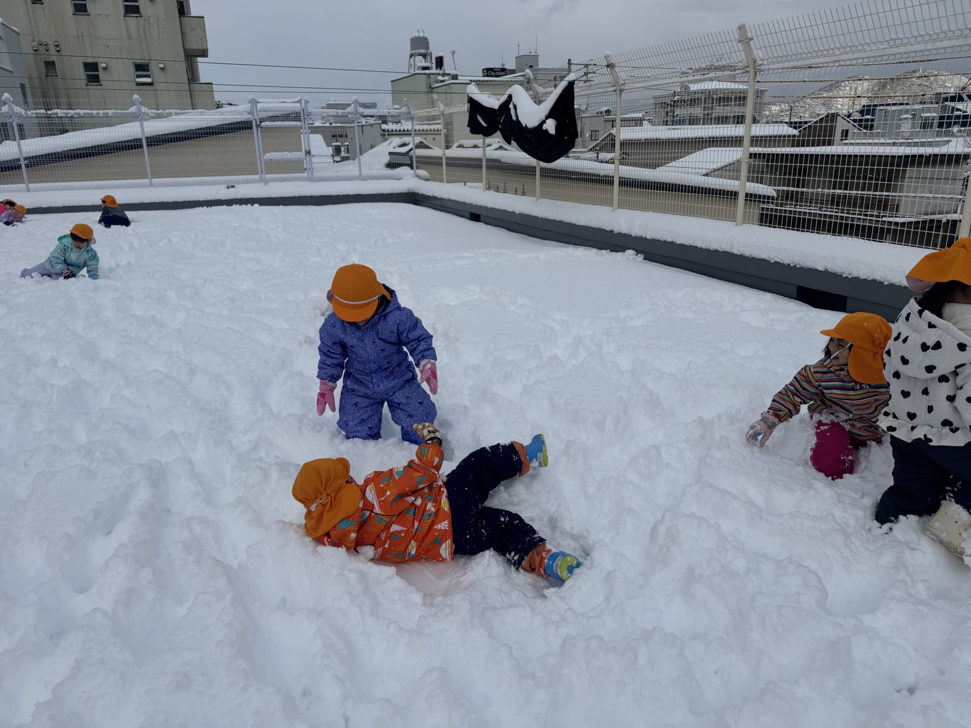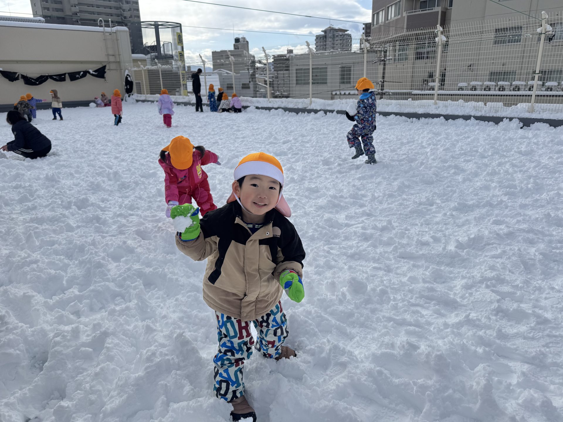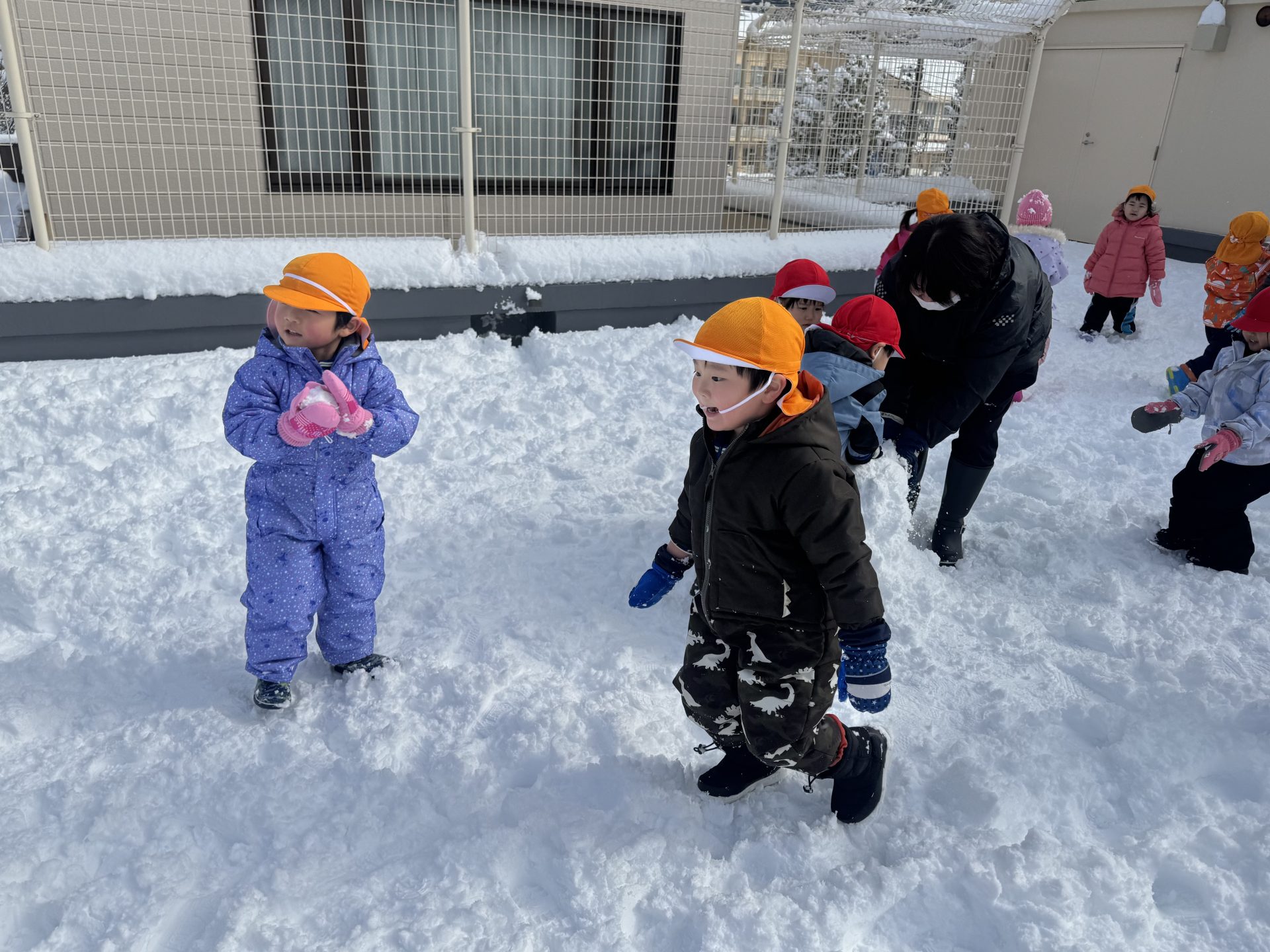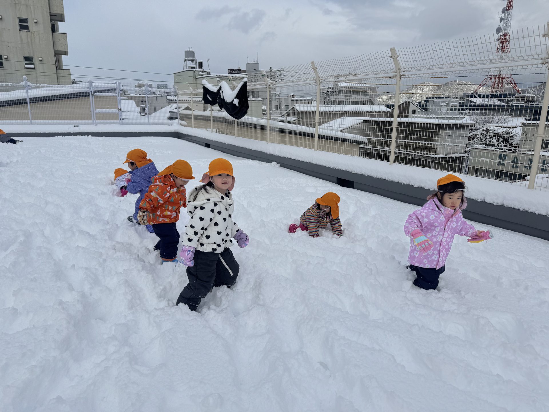 午後からは年中さんと一緒に屋上で雪遊びをしました☆1月の雪遊びは今日でおしまいですね。来月も雪遊びができますように・・・!!