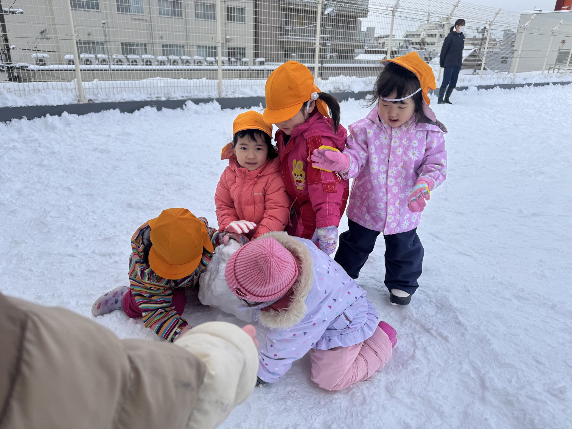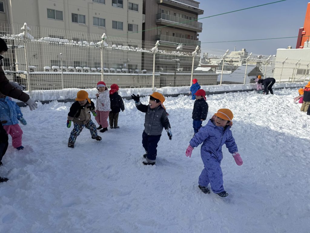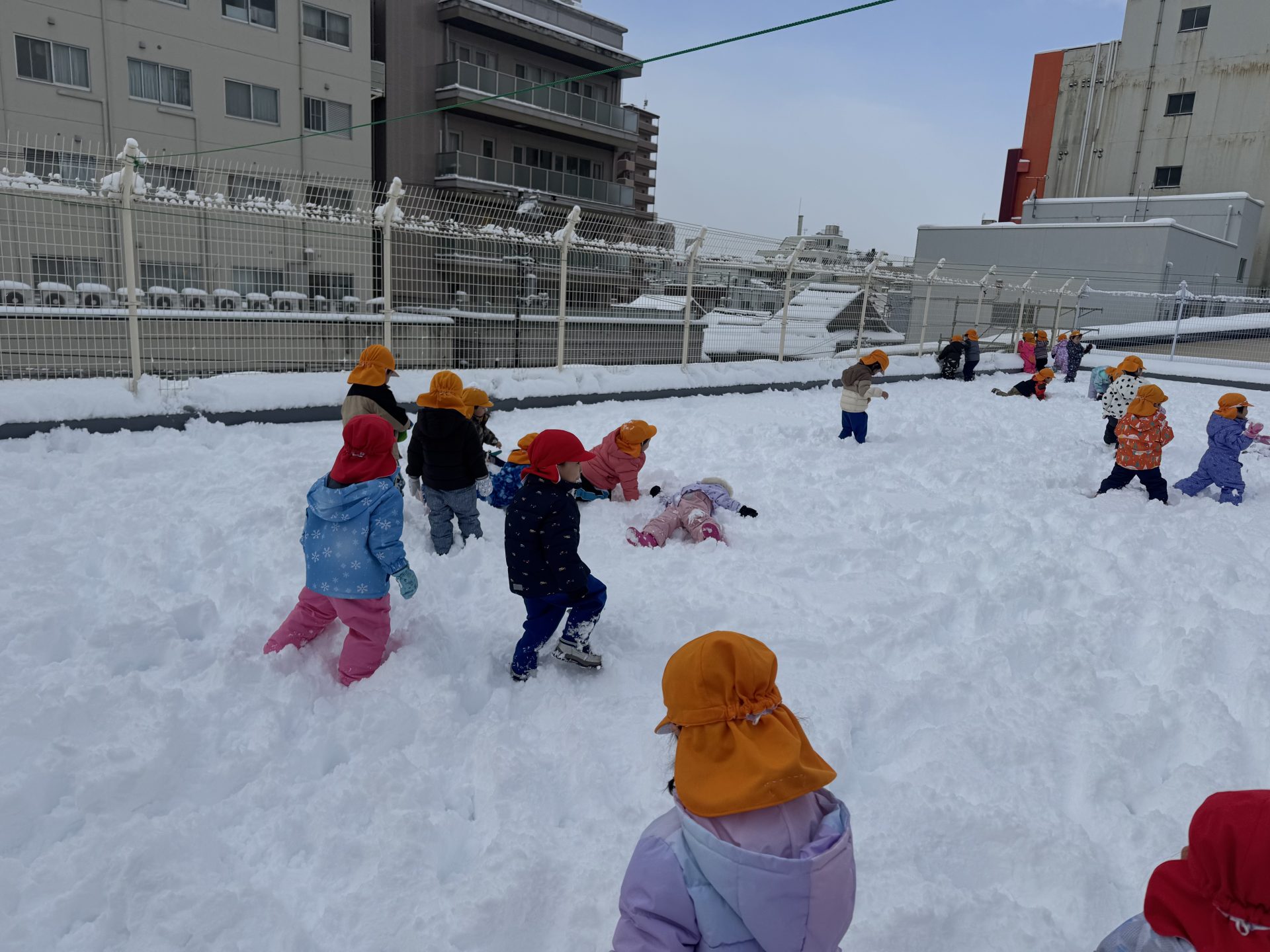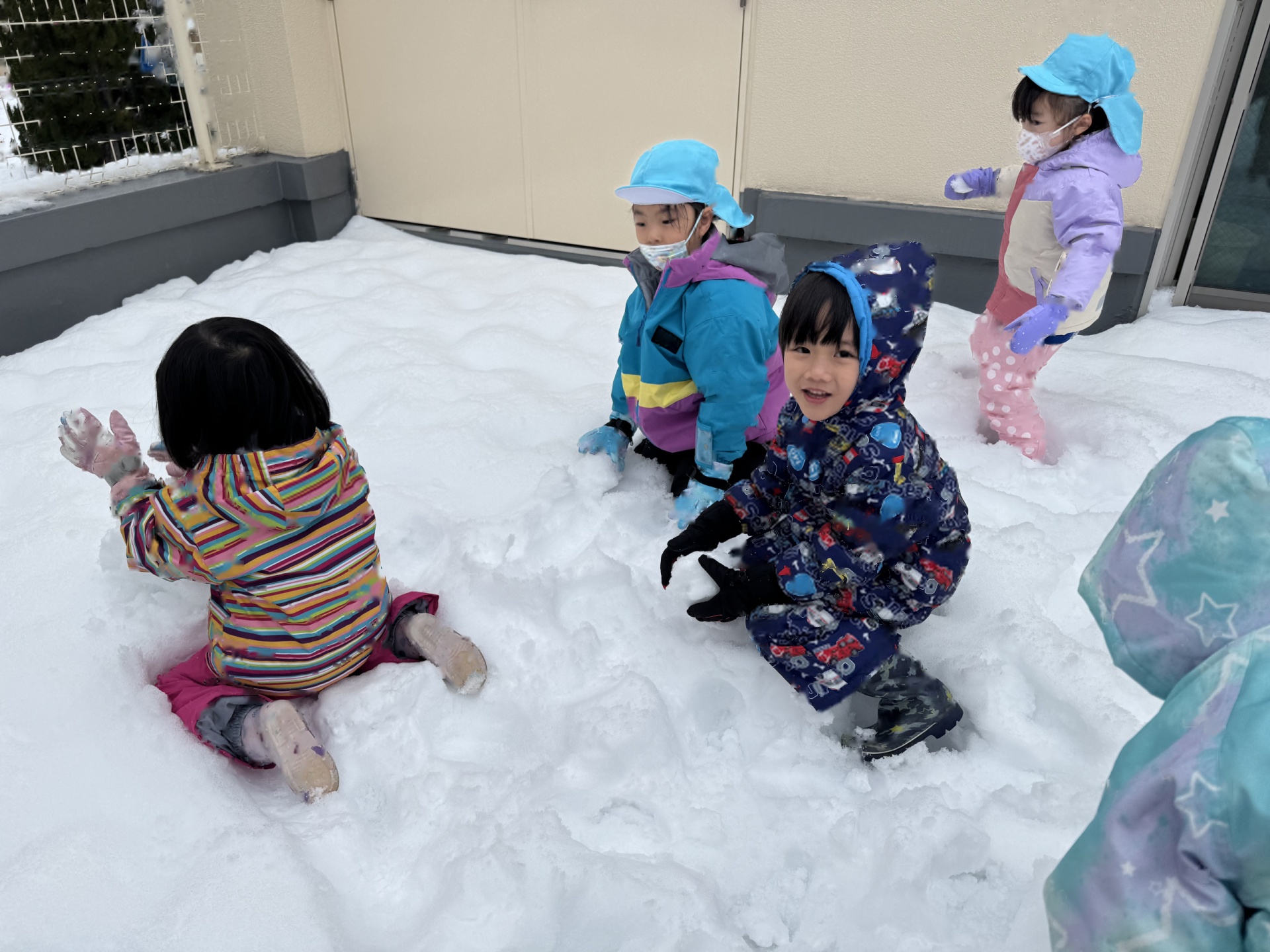 午後からは年中さんと一緒に屋上で雪遊びをしました☆1月の雪遊びは今日でおしまいですね。来月も雪遊びができますように・・・!!
