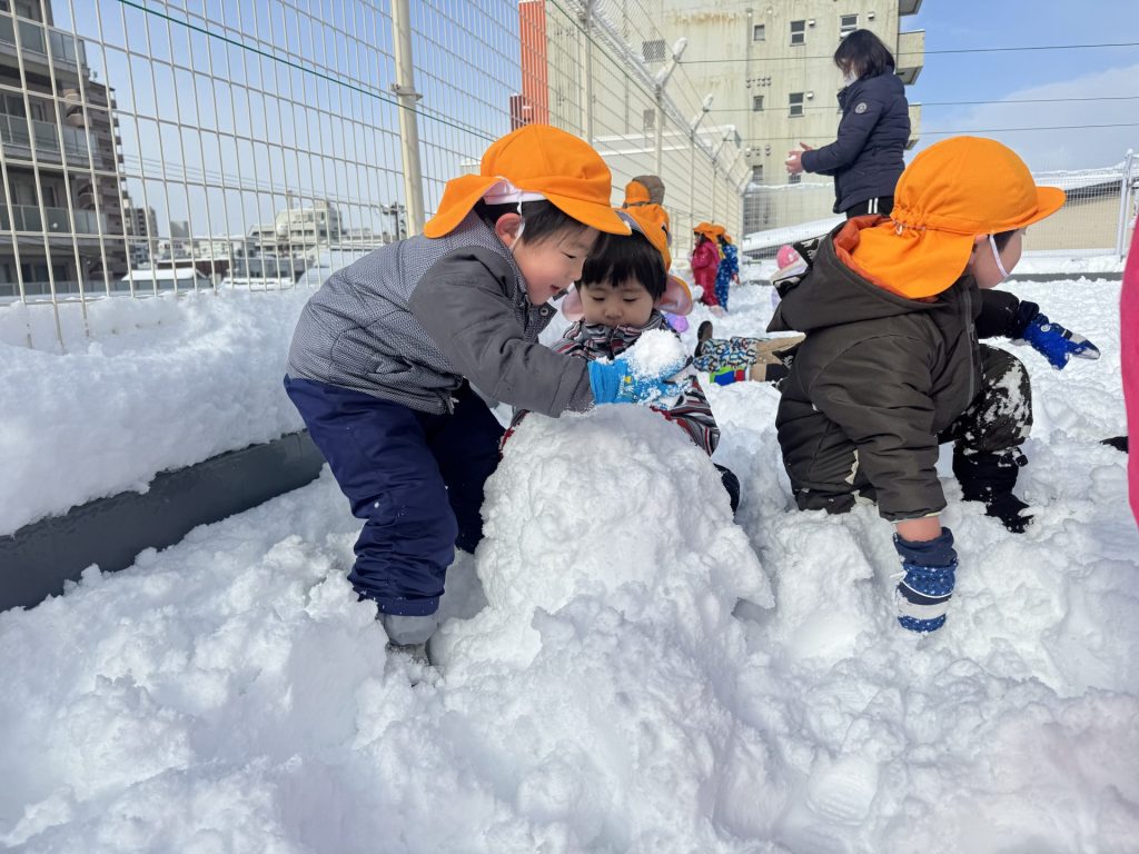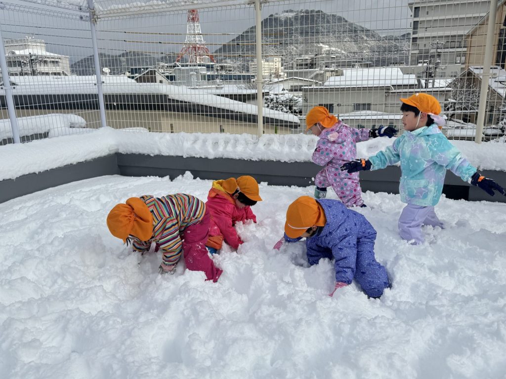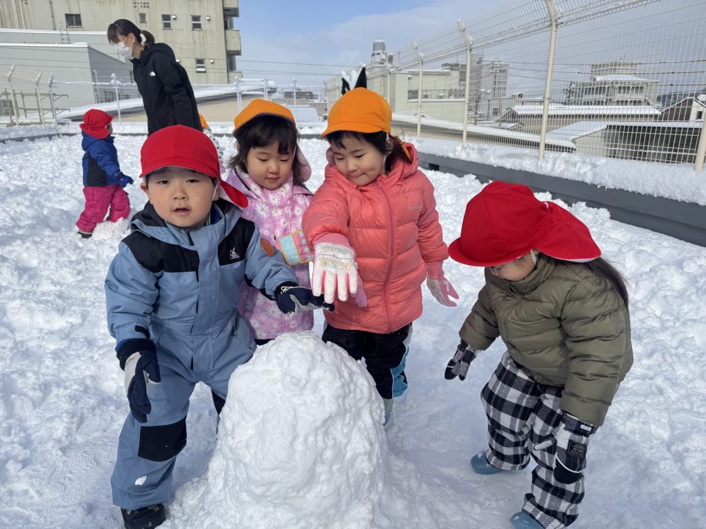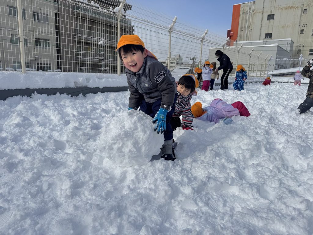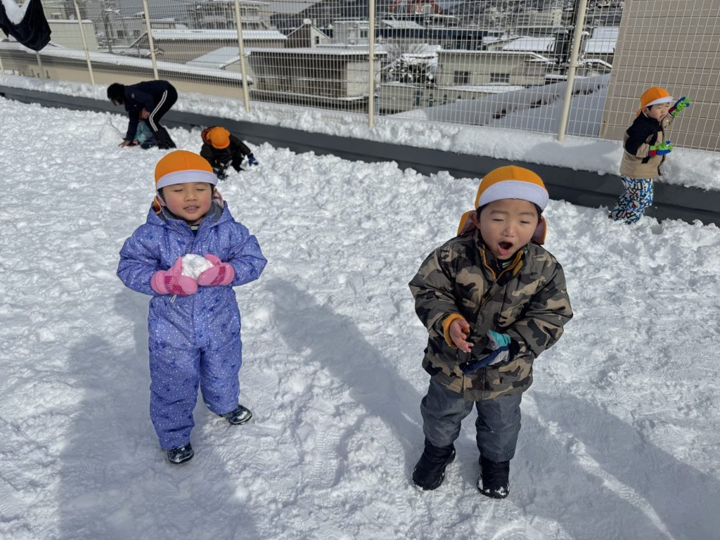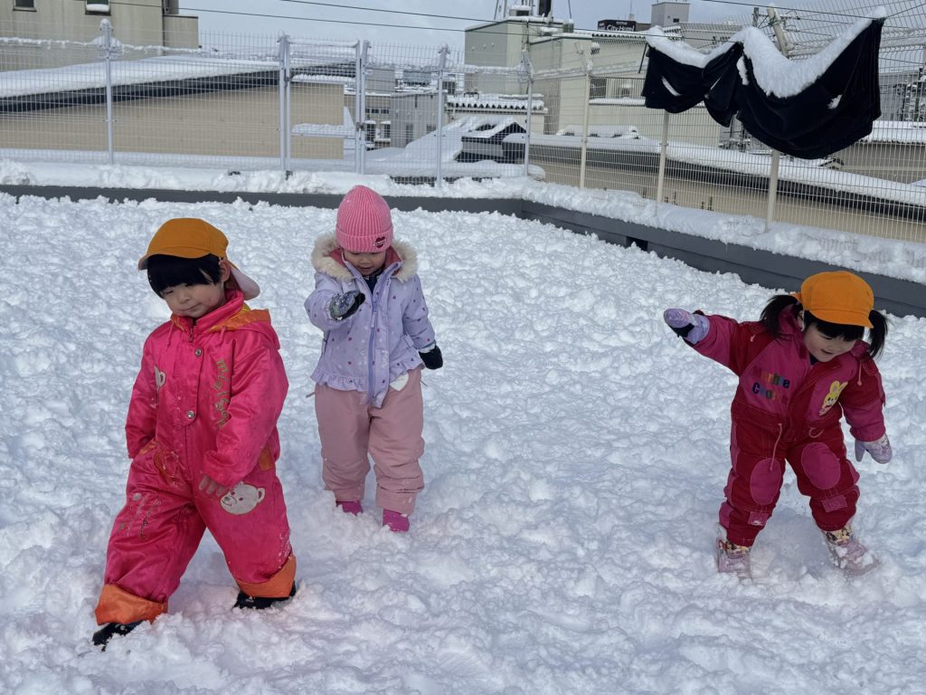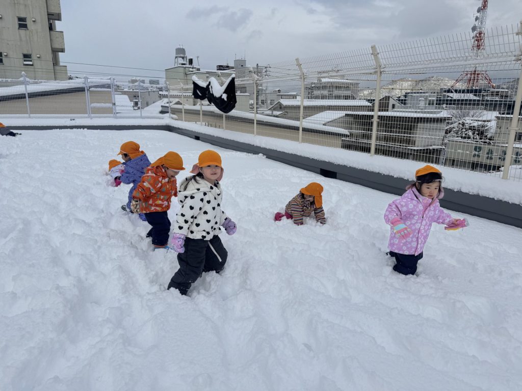 午後からは年中さんと一緒に屋上で雪遊びをしました☆1月の雪遊びは今日でおしまいですね。来月も雪遊びができますように・・・!!
