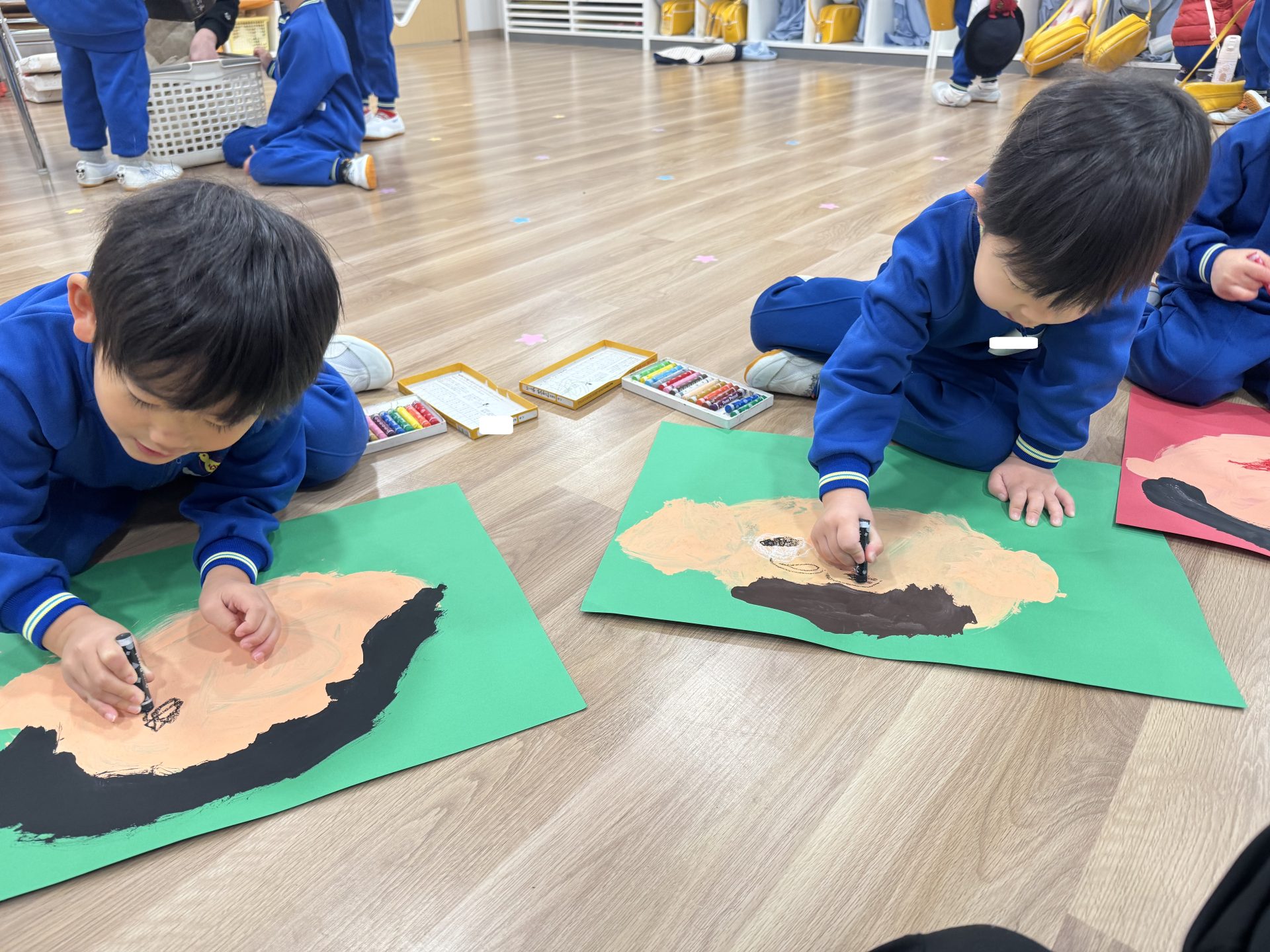 「ぼく・わたし」の顔を描くことにチャレンジ♪顔のパーツがわかるようになり、かわいい子どもたちのお顔がかけました☆