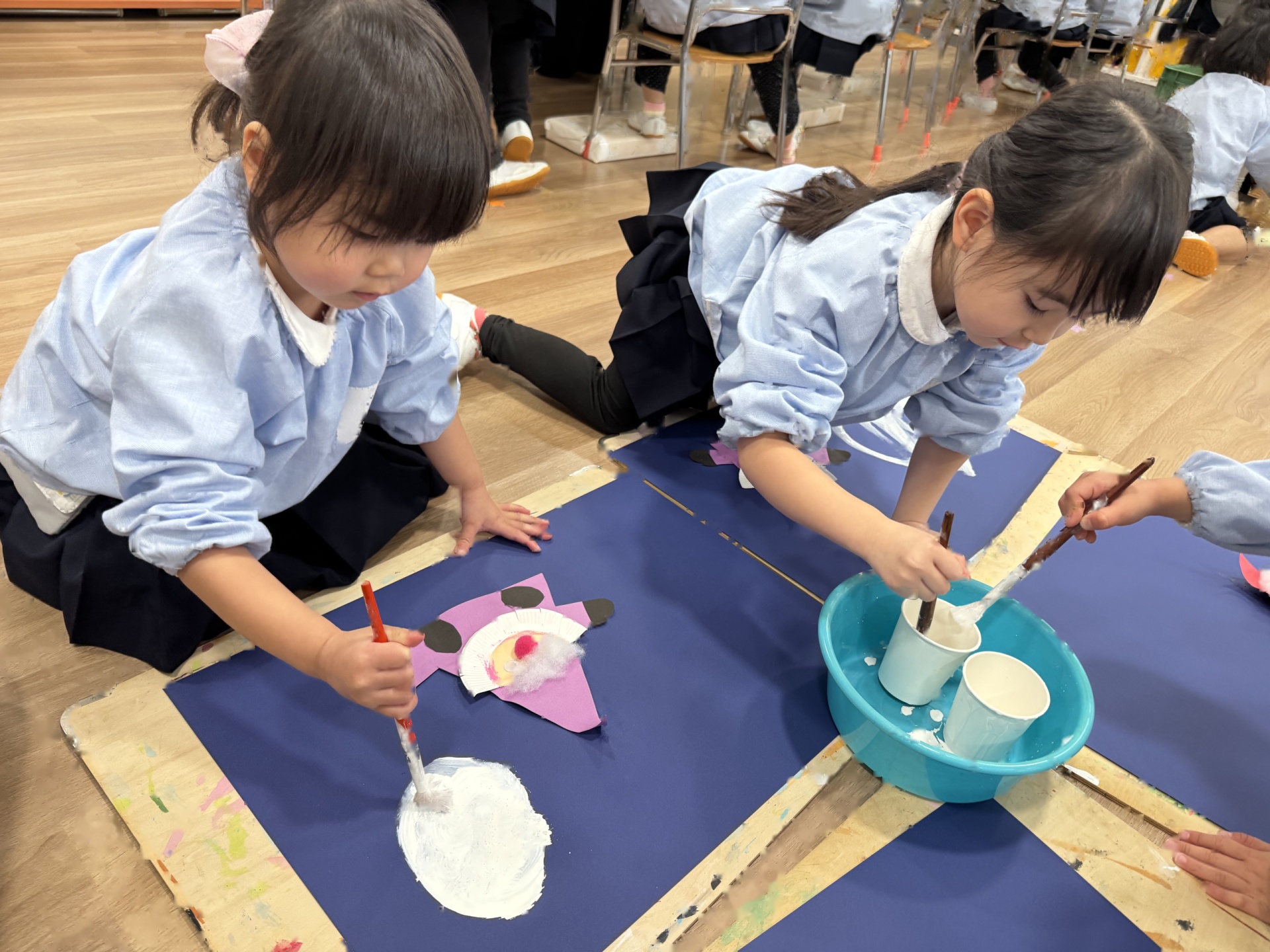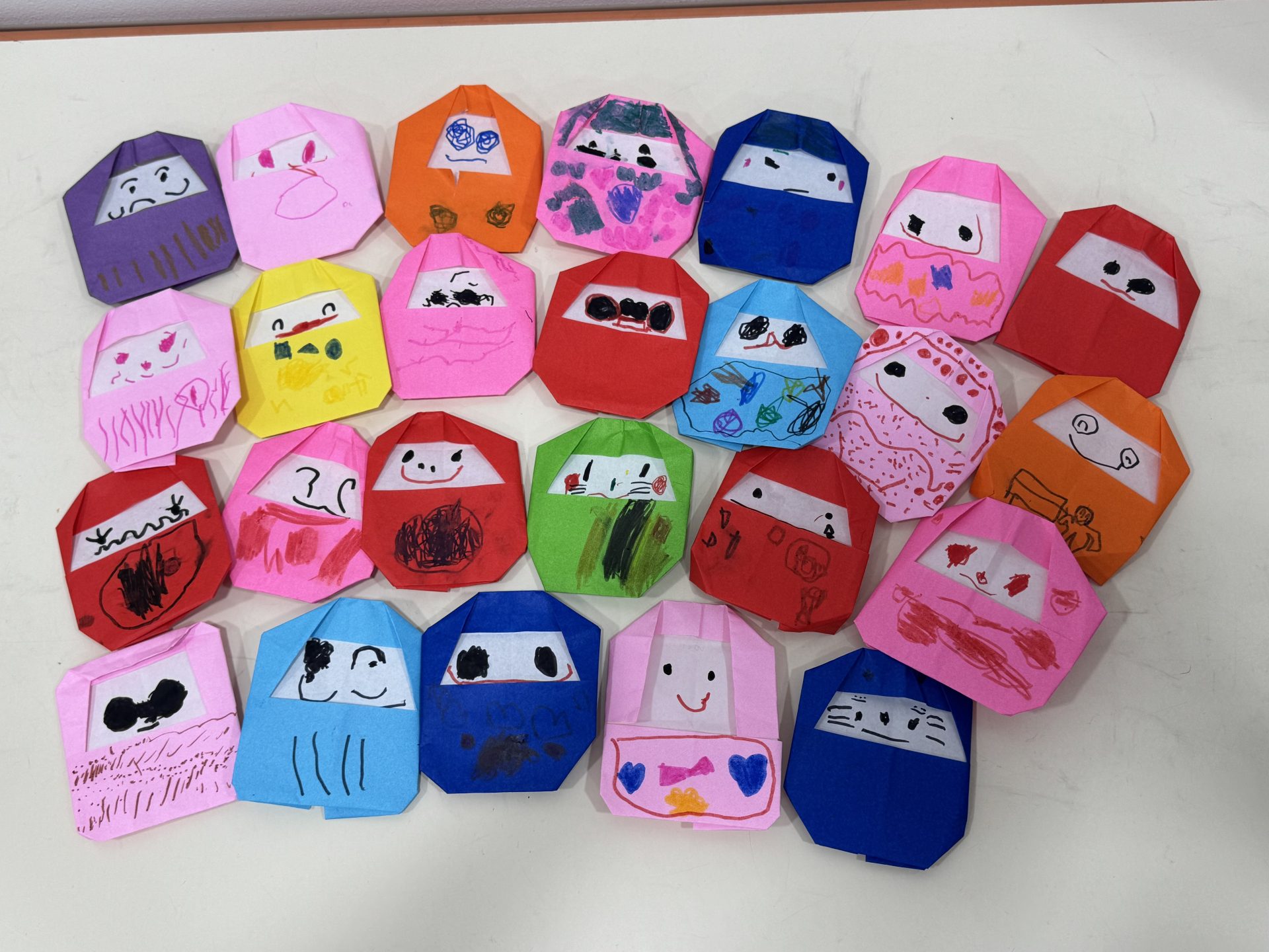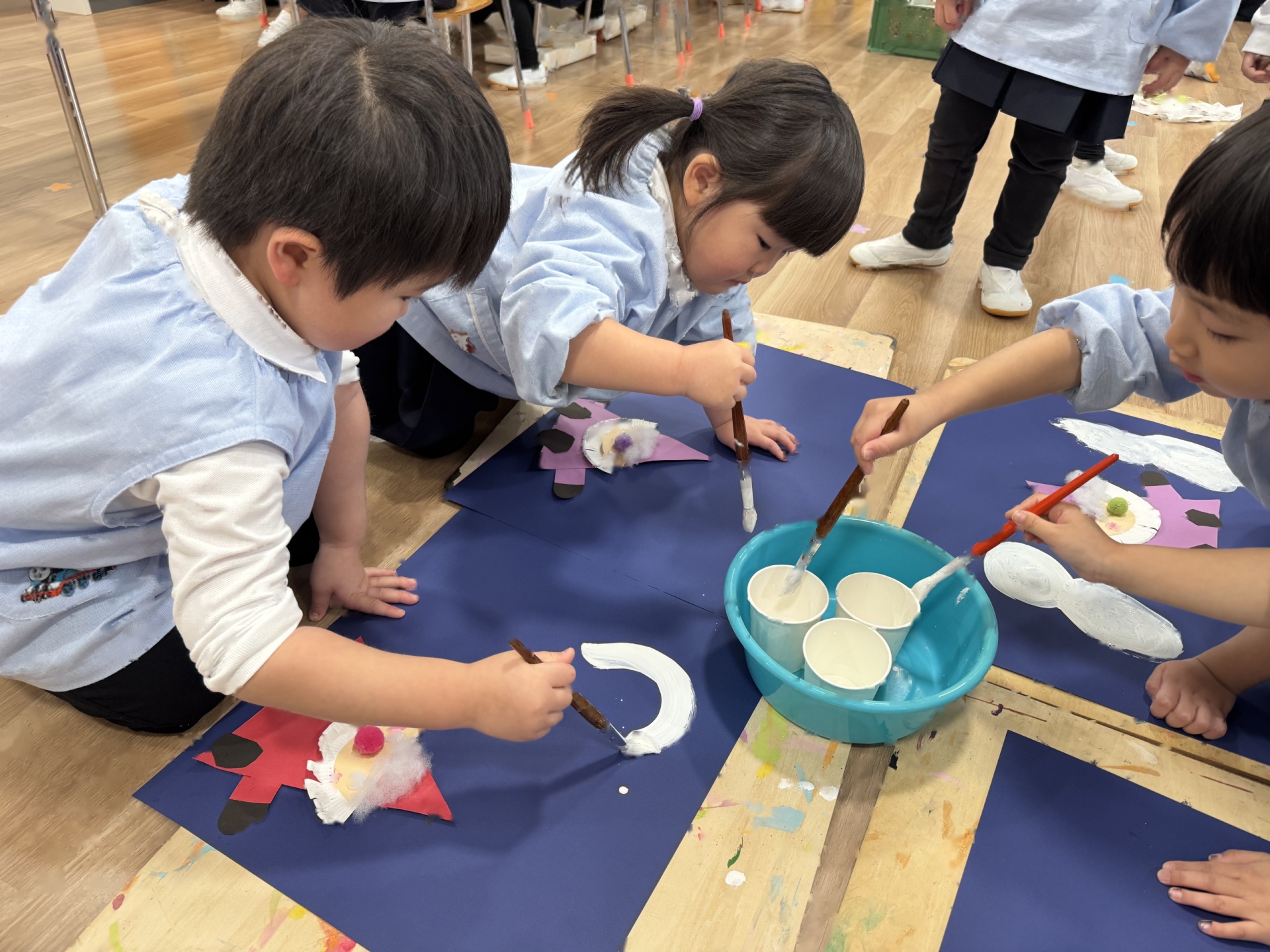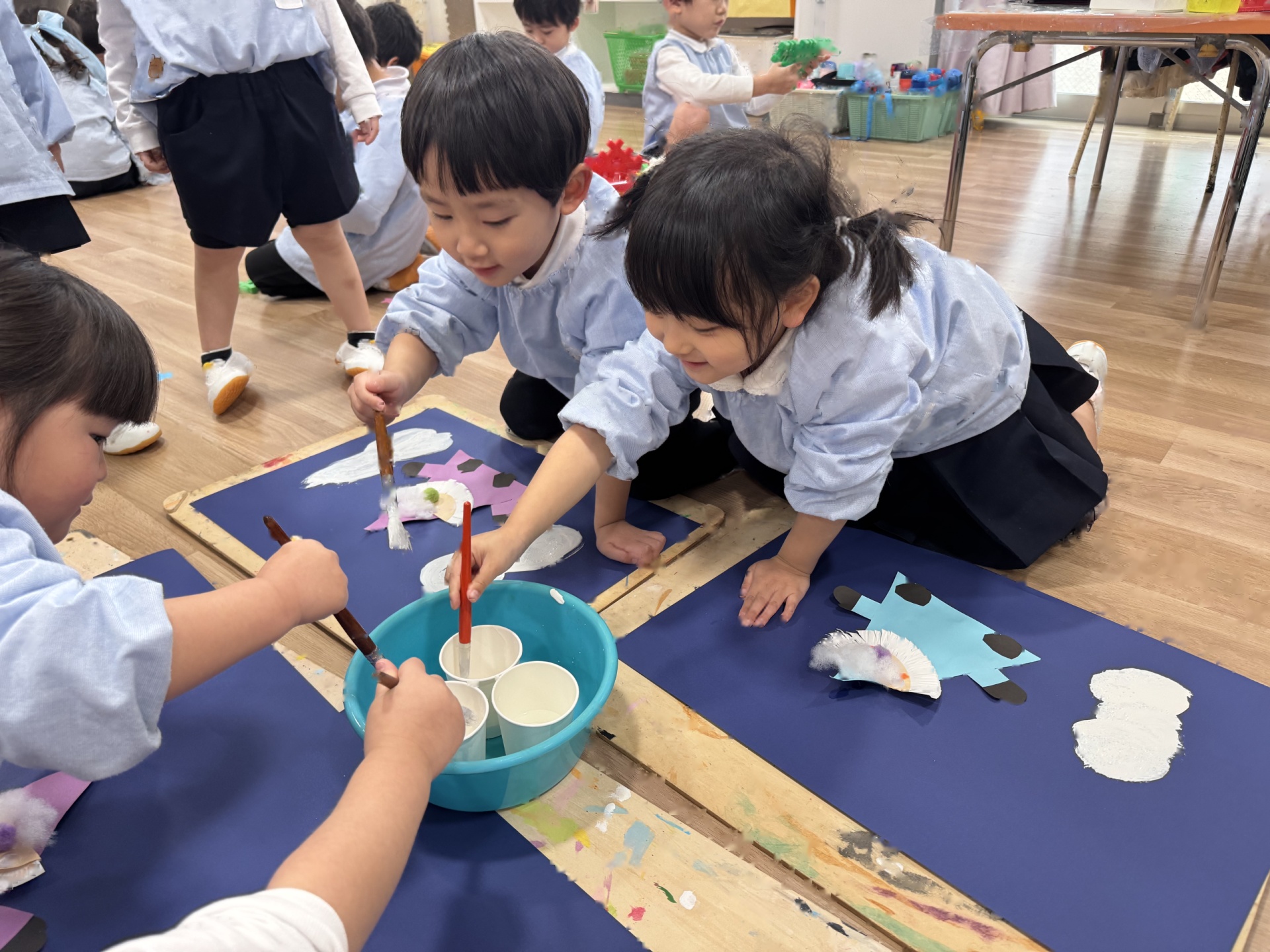 作品鑑賞をしました。自分で作った作品を紹介し合いながら、他の学年の作品もみんなで見学しました♪「上手だね~」「かわいいね~」と、認め合う姿もみられましたよ~★