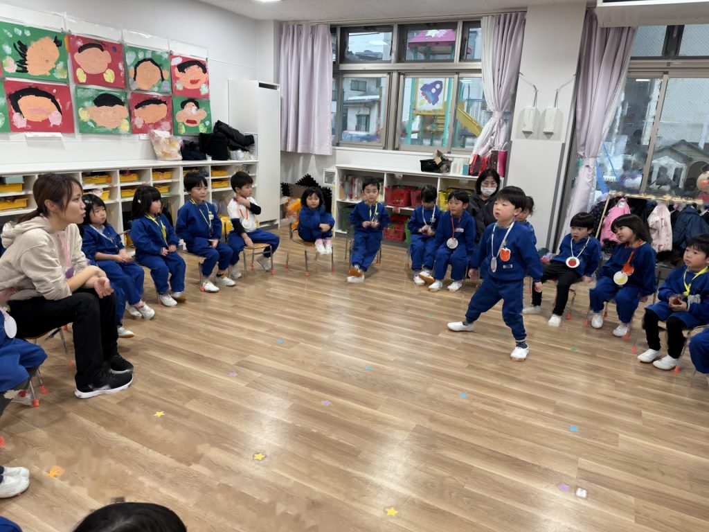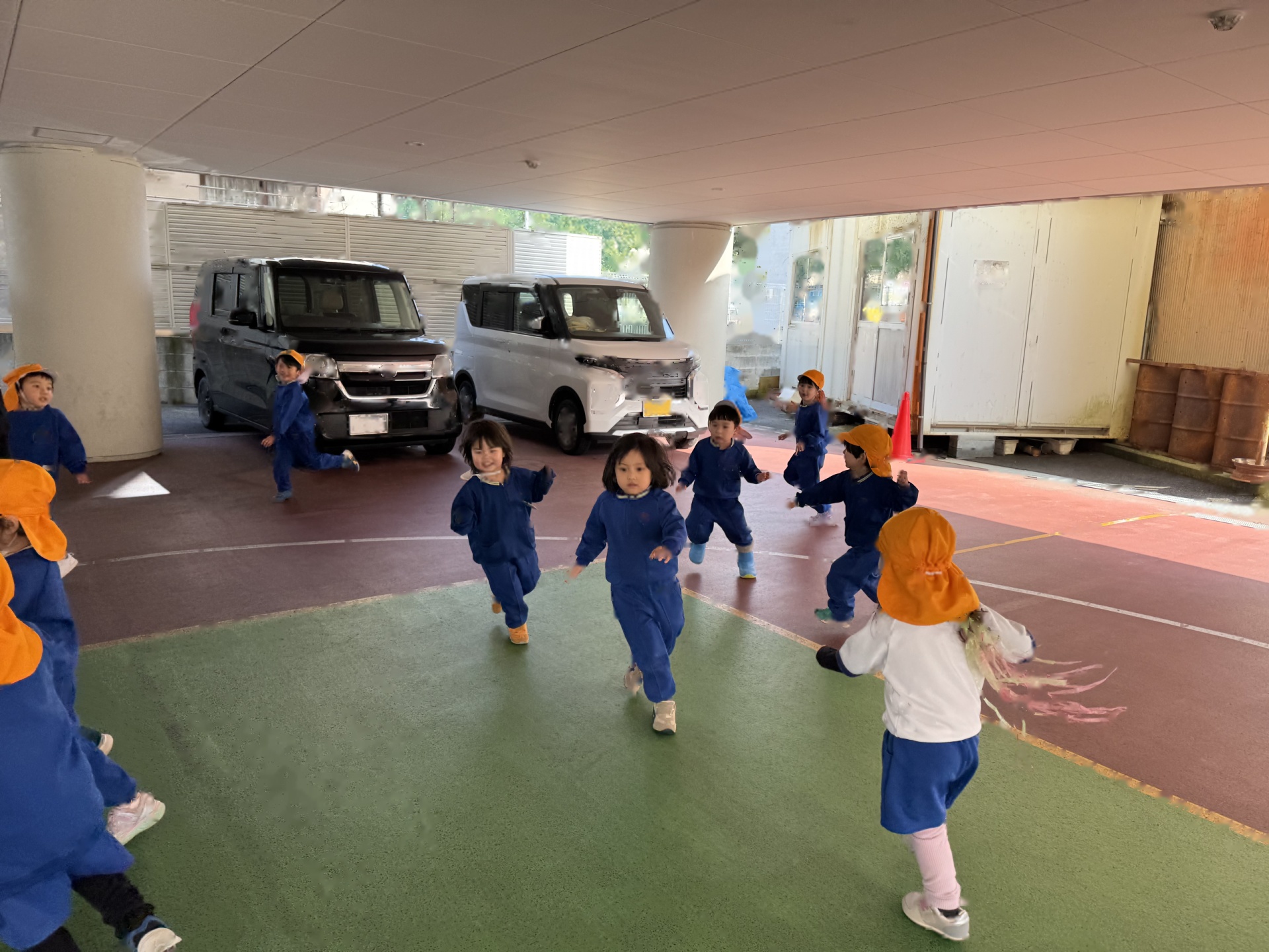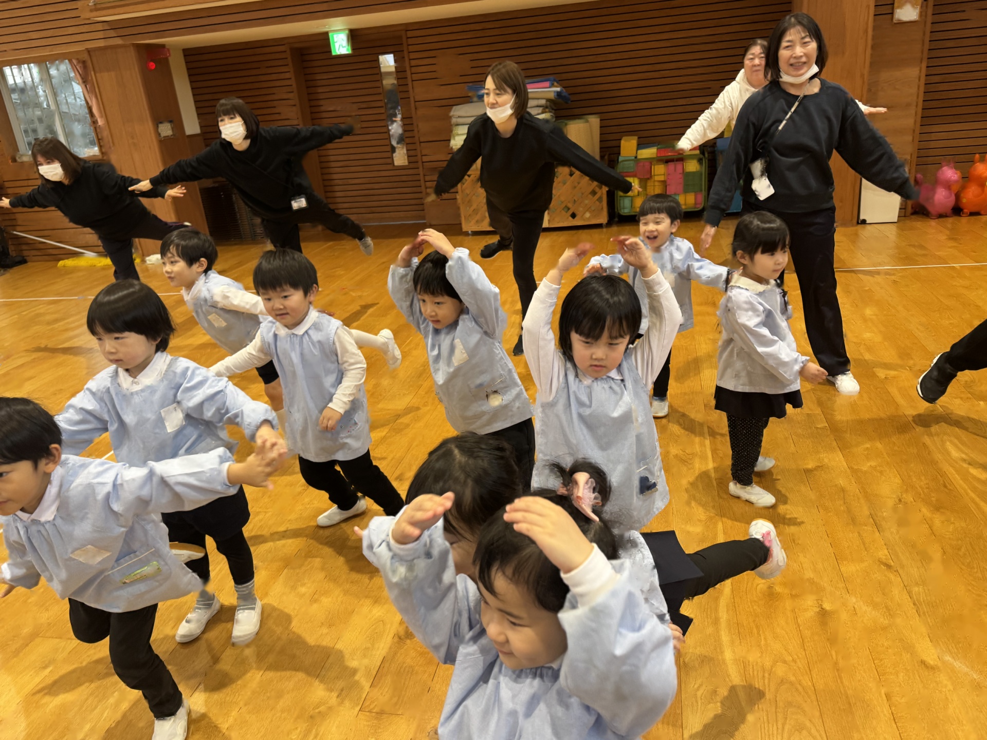 ☆最後に、怖い人に出会ったらどうしたらいいのか「いかのおすし」のお約束にちなんだ「いかのおすしダンス♪」をみんなで踊りました。自分の身は自分でも守れるよう、大切なお約束、覚えていてくださいね。