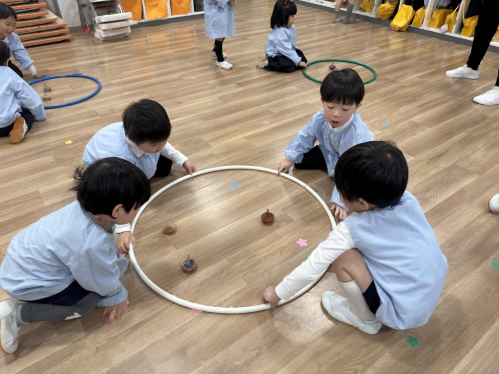 ☆今日もクラスでコマ対決!!2回戦行うと、初めて勝つことができたお友達もいました!!コマが盛り上がる盛り上がる☆