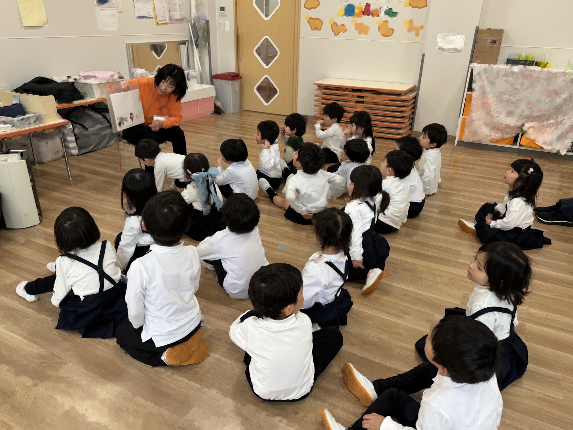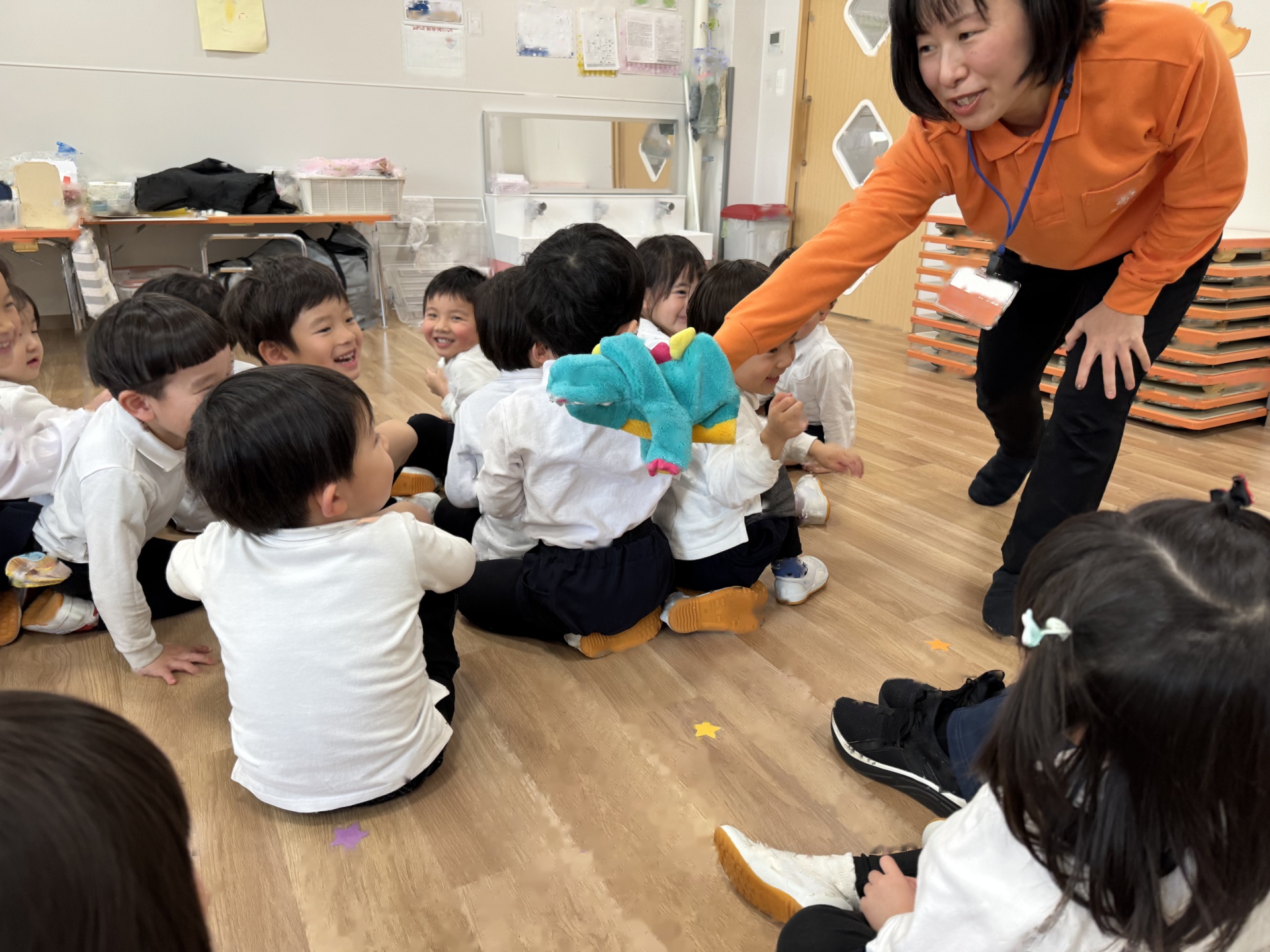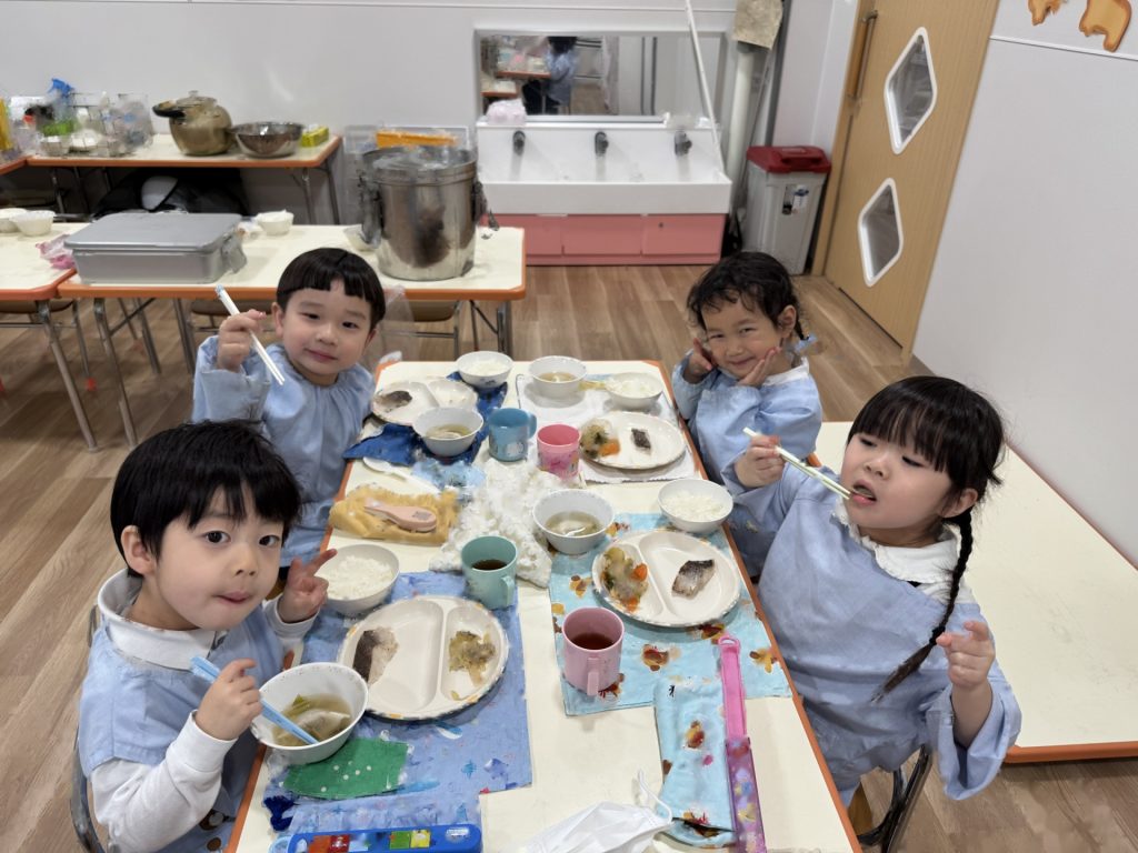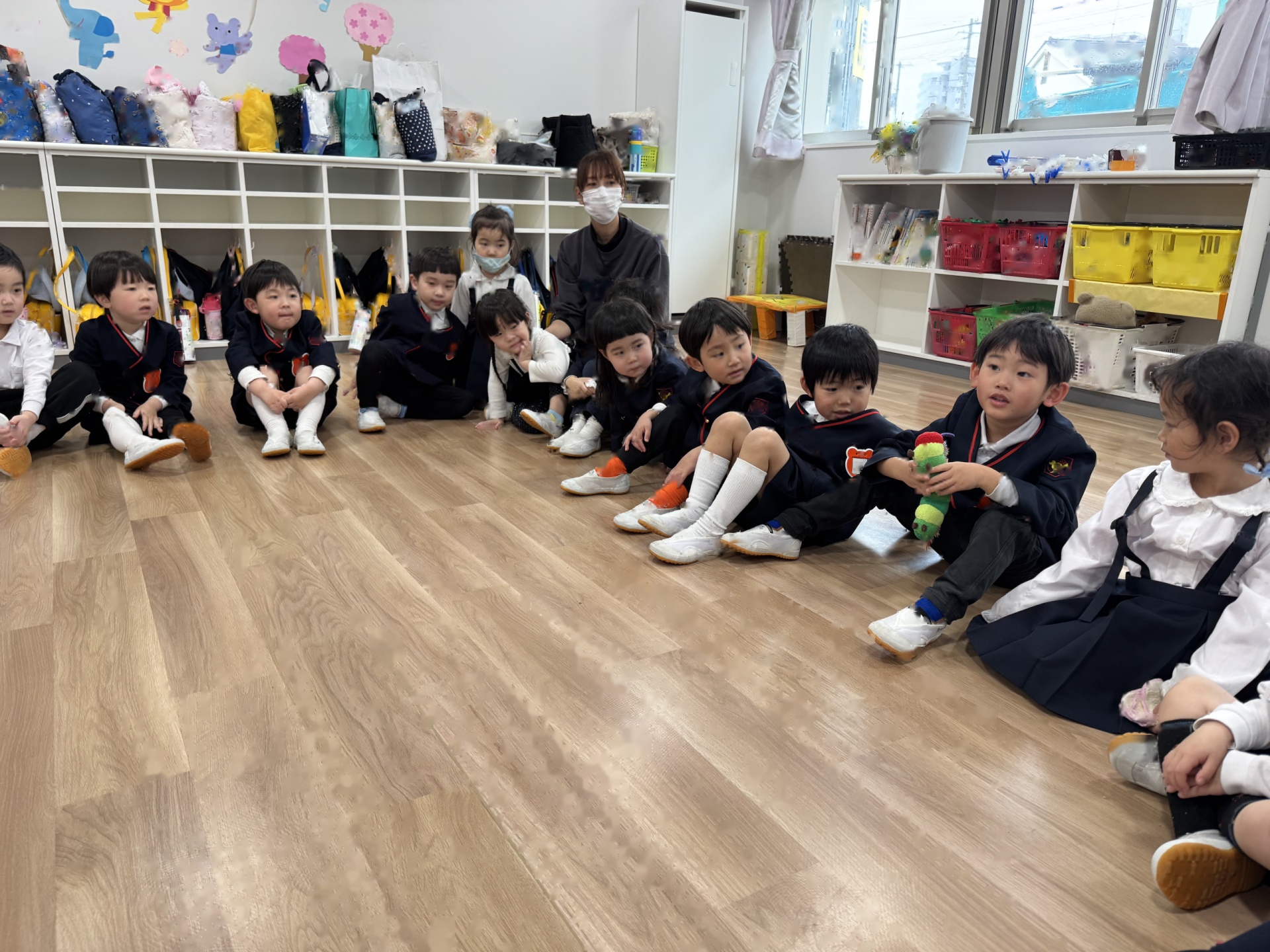 いよいよ年少組最終日を迎えました。いつものように元気に挨拶をして登園され、たくさん遊んで、笑って、食べて、賑やかく過ごした最終日でした(^^♪今日1日の様子を少しご紹介します☆まずはいつものように朝の会スタート!最後のお当番は・・・ひこうきグループさんでした!