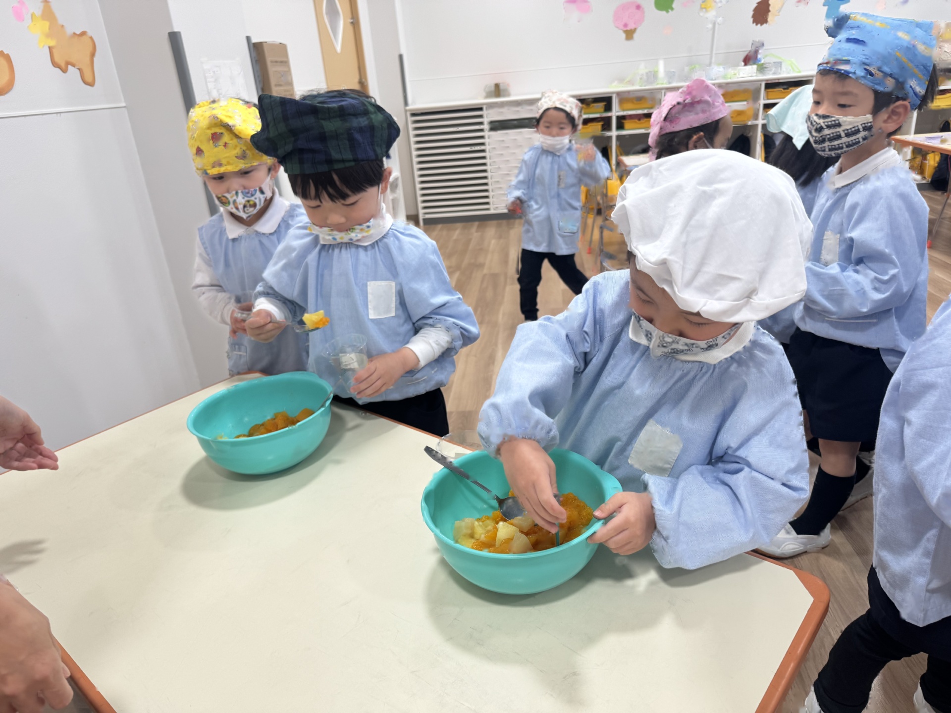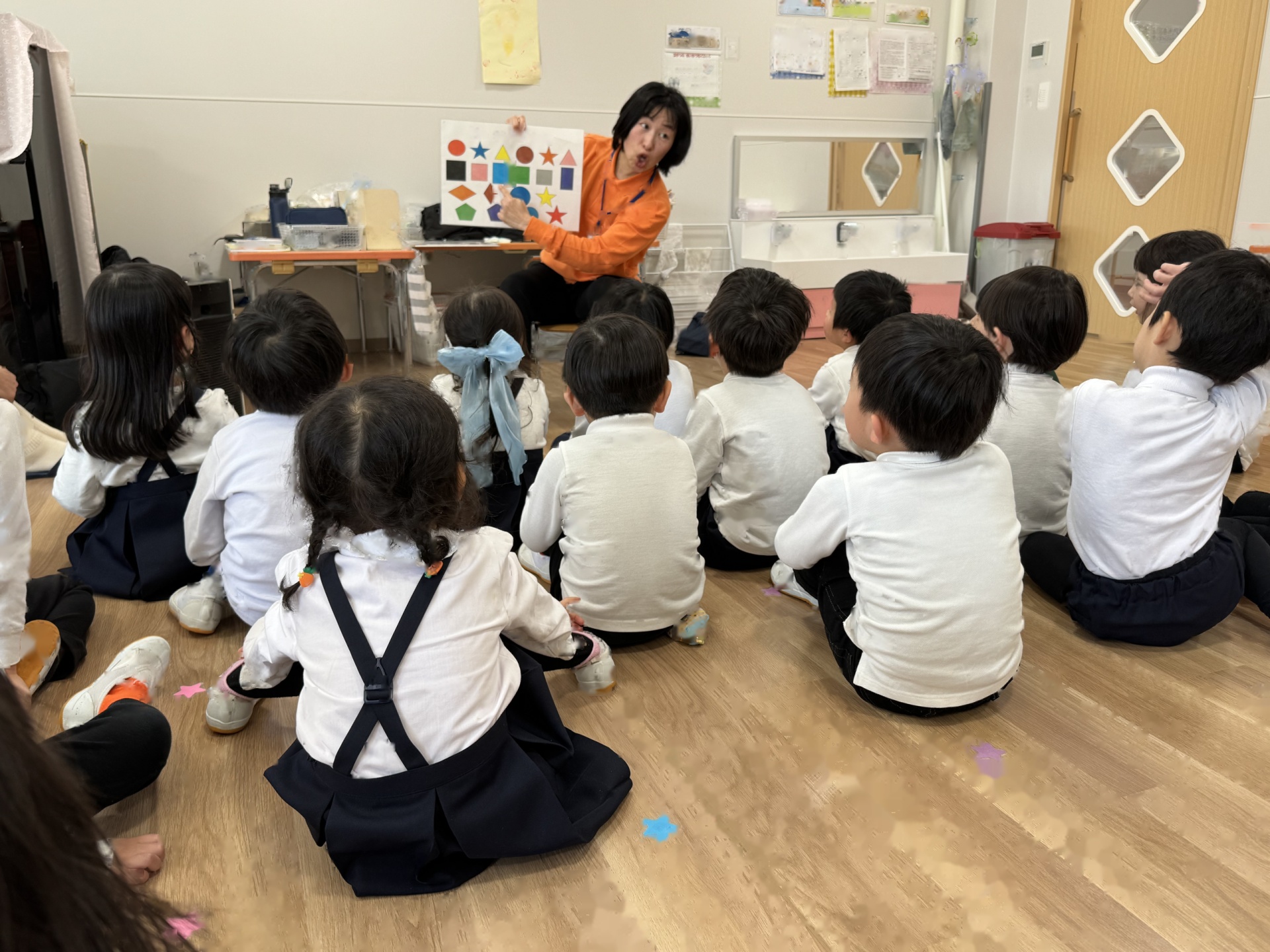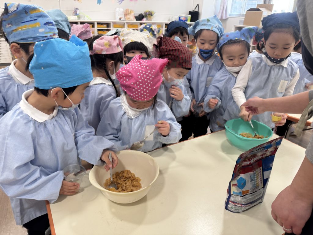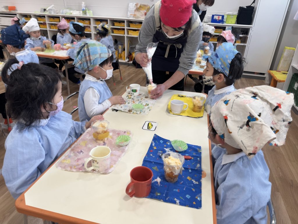いよいよ年少組最終日を迎えました。いつものように元気に挨拶をして登園され、たくさん遊んで、笑って、食べて、賑やかく過ごした最終日でした(^^♪今日1日の様子を少しご紹介します☆まずはいつものように朝の会スタート!最後のお当番は・・・ひこうきグループさんでした!