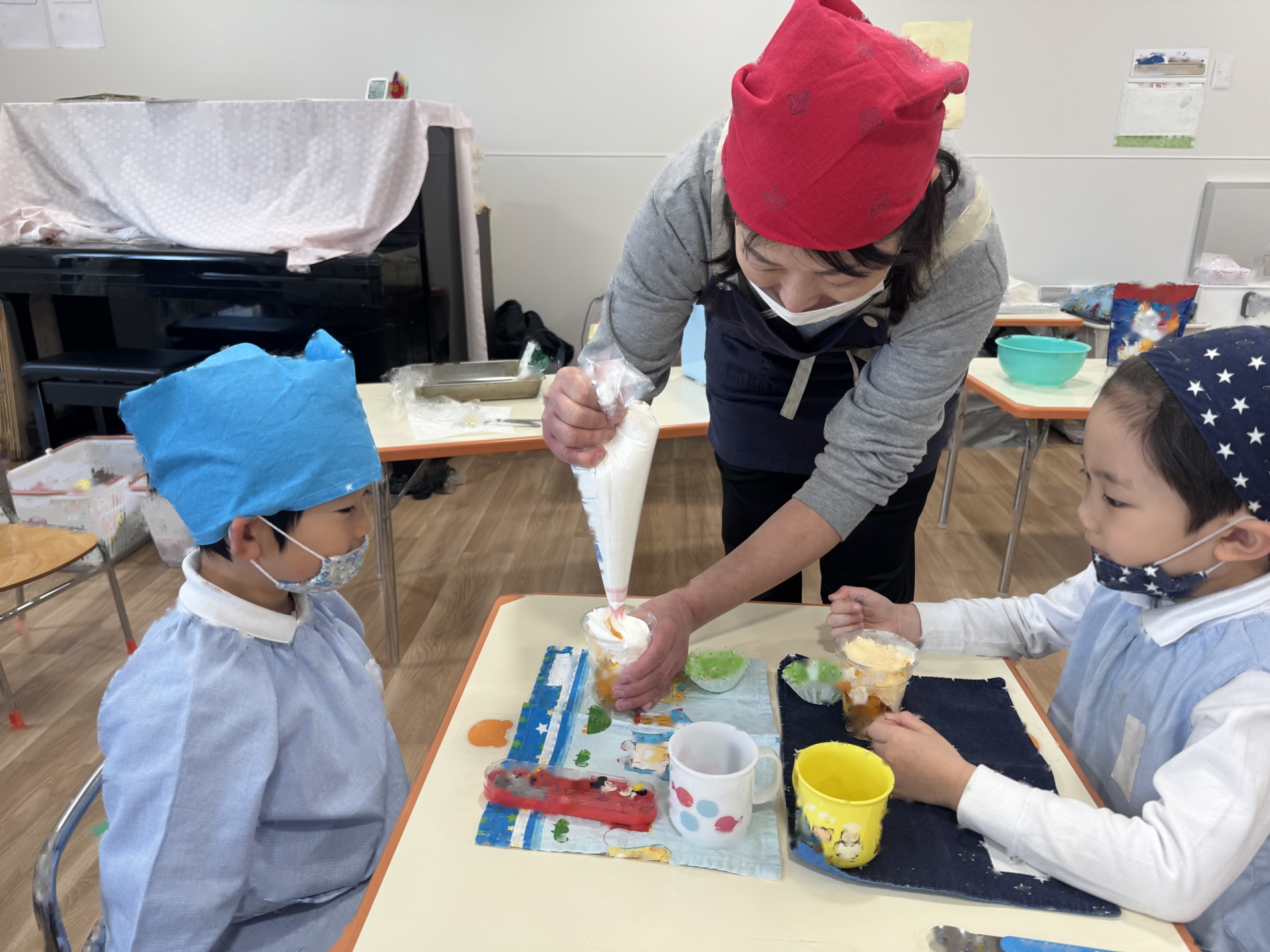 2歳さんは、りんご組の「りんご」と「ちゅうりっぷ」をありがとうの思いを込めて、おりがみで折って飾りました!
