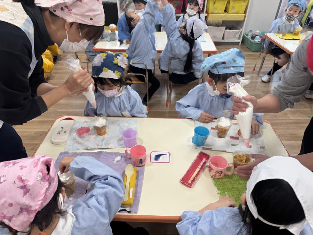 そして、年長さんからのプレゼントが!!年長組さんの思いが詰まった、手作りメダルをもらいました♪そして、「みんなともだち」の歌のプレゼントも♪