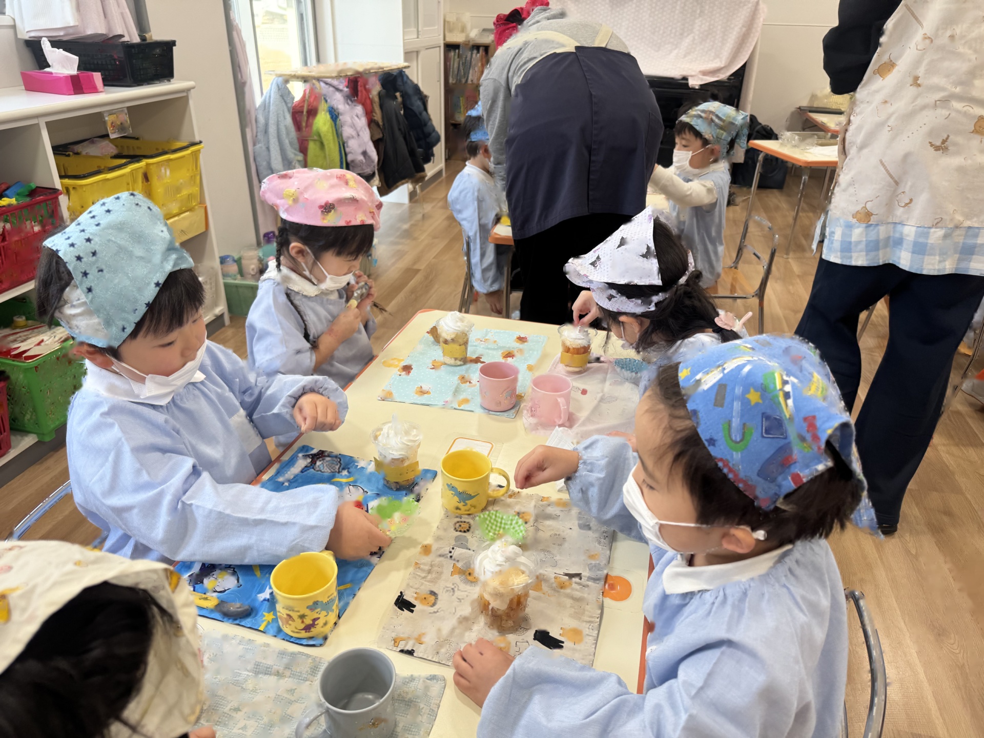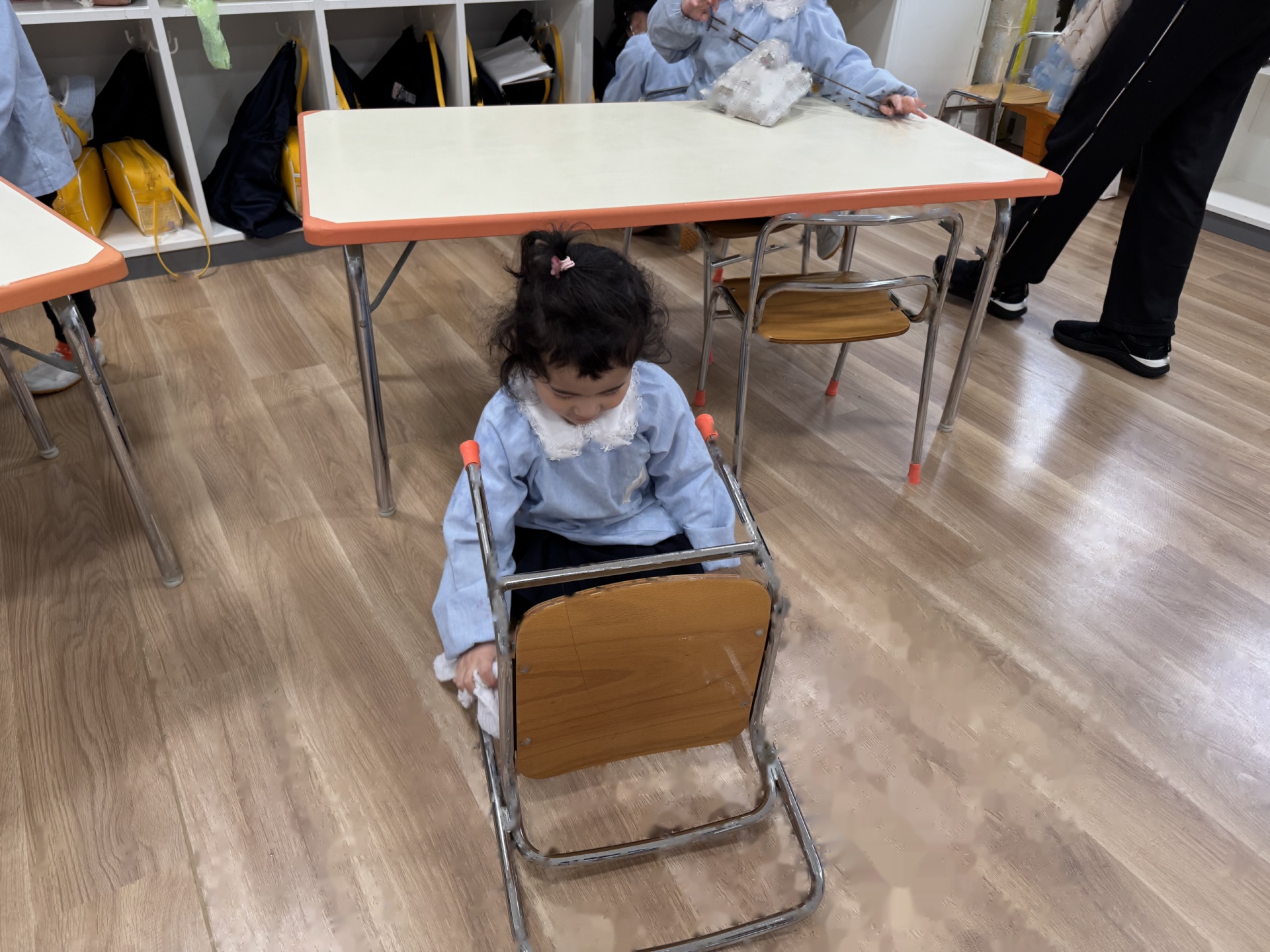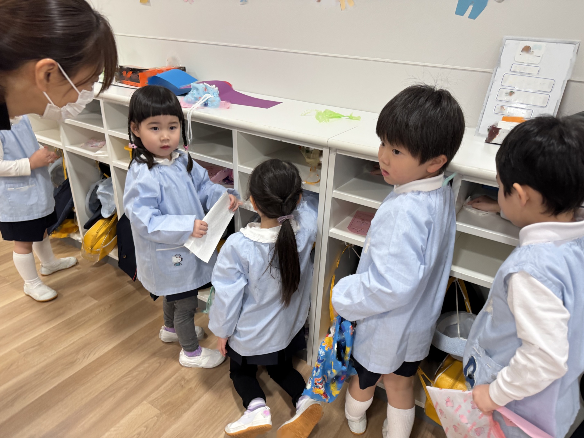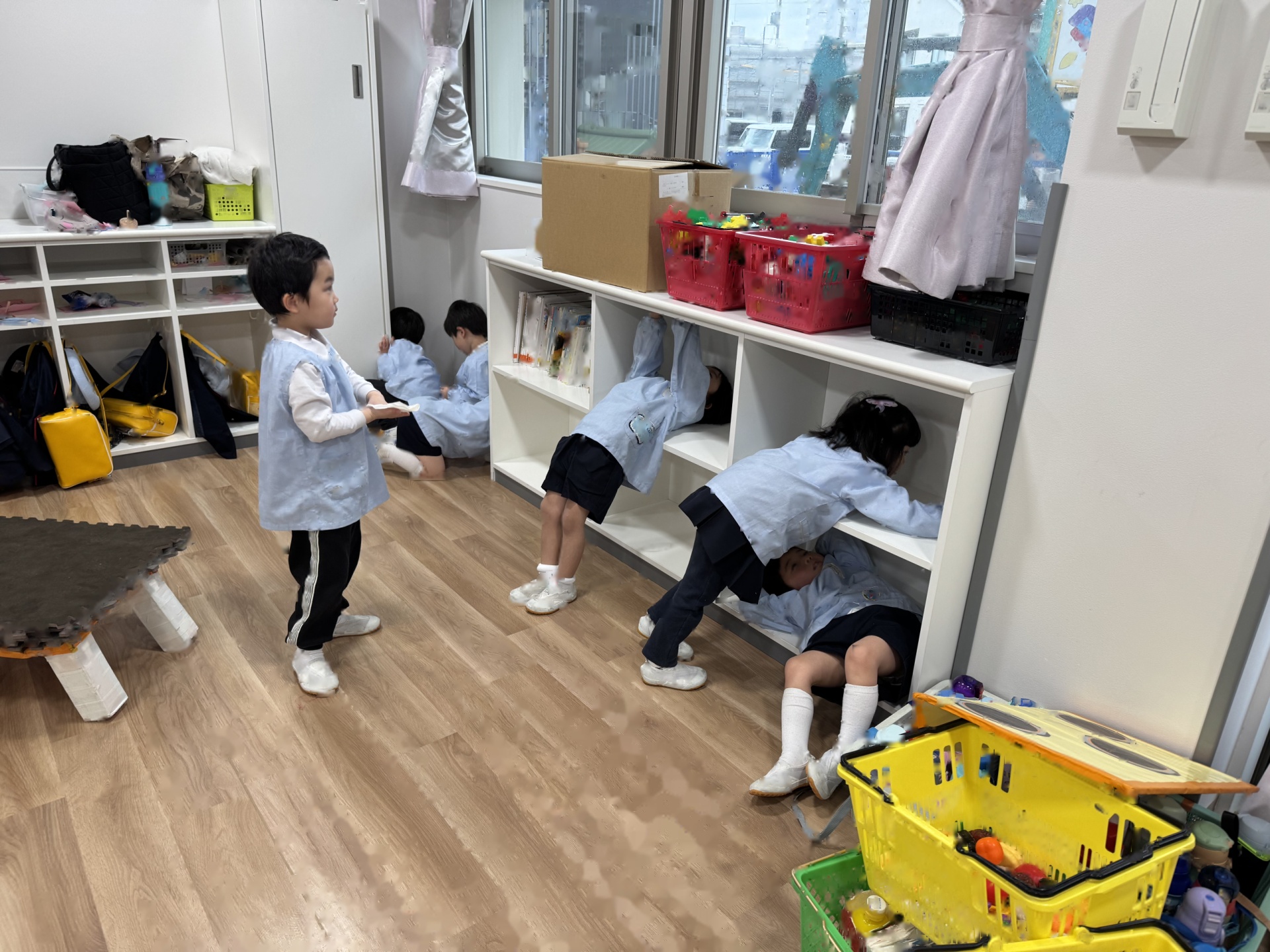 ☆来年度、次のりんご組のお友達がお部屋を使うことができるようにみんなでピカピカ大掃除をしました!いろいろなところに貼っていたマークを外したり、棚や椅子の拭き掃除、最後は床までピカピカに磨きました!