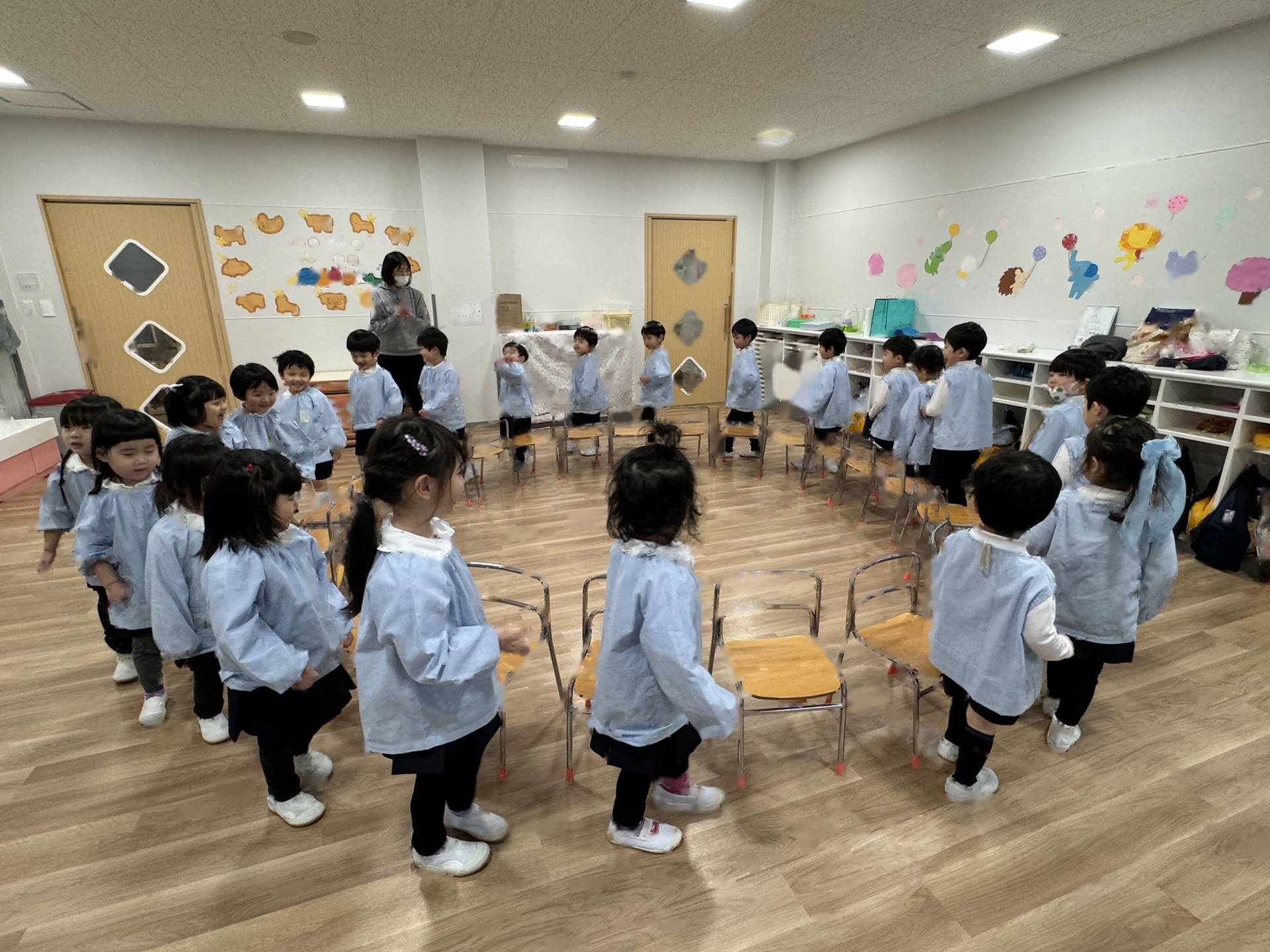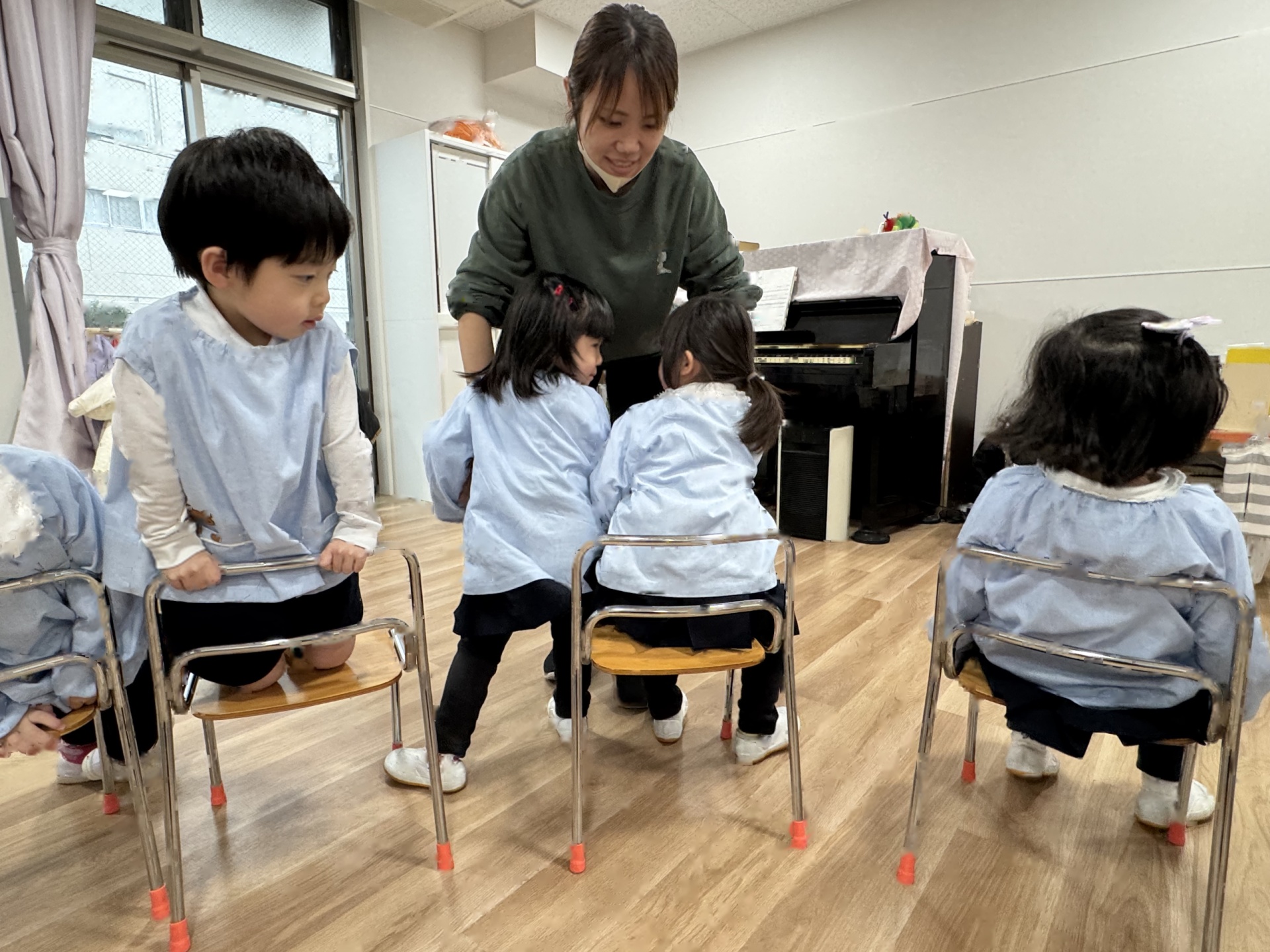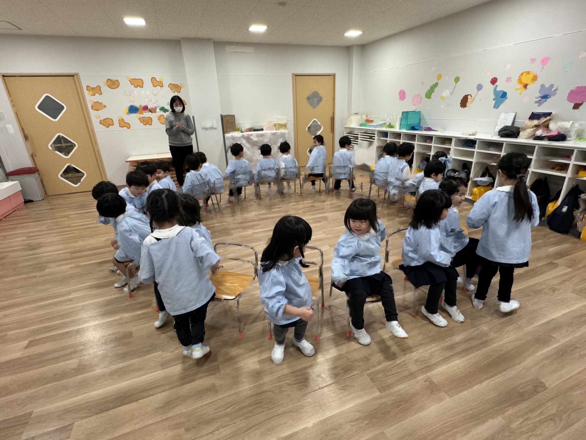 ☆みんなでするとあっという間にお部屋はピカピカに!掃除の後は、子ども達がやりたい!と言っていた“いすとりゲーム”をしました(*^-^*)今日は敗者復活いす取りゲームです!1回負けても何度も何度もチャレンジしましたよ!
