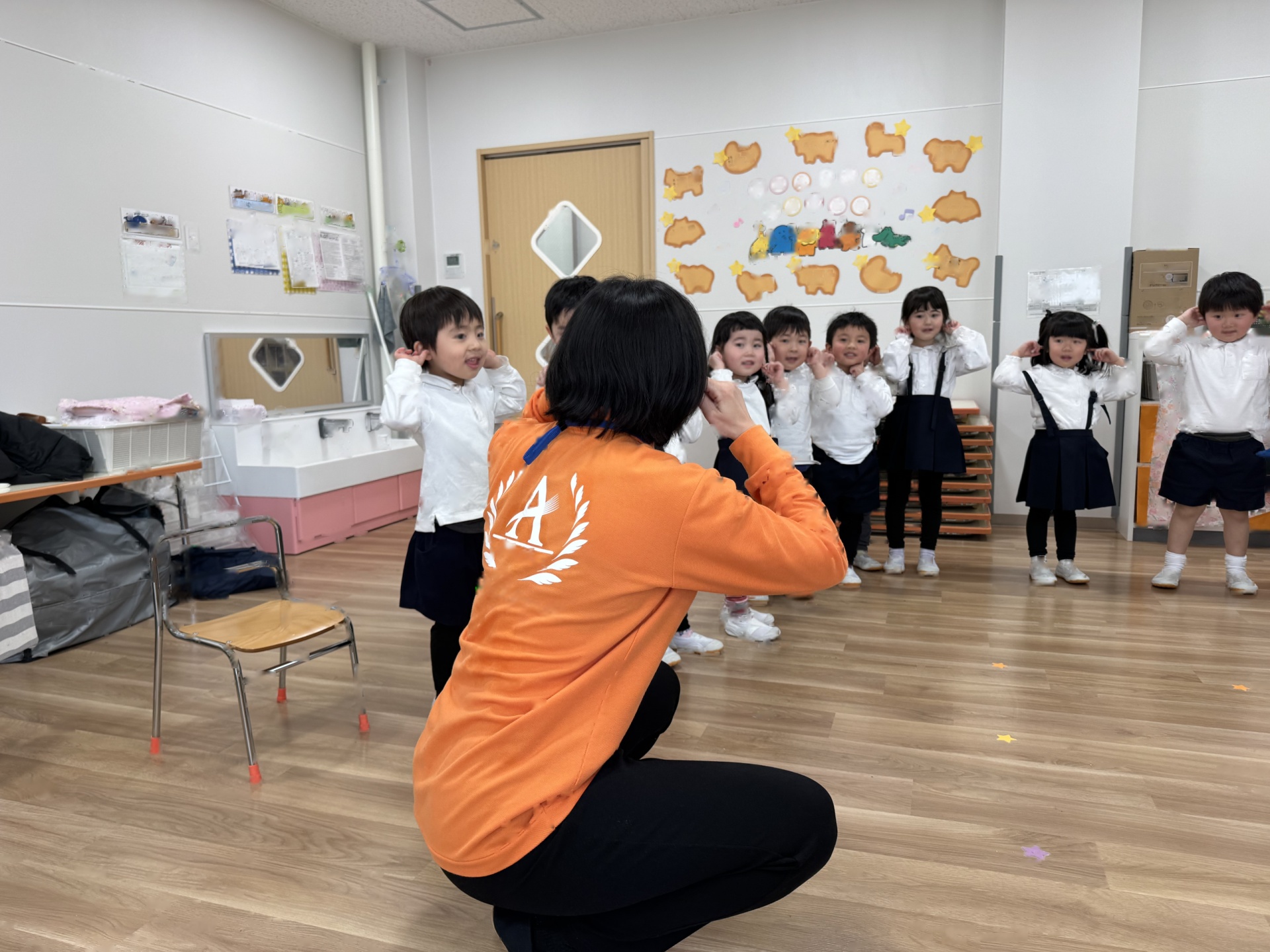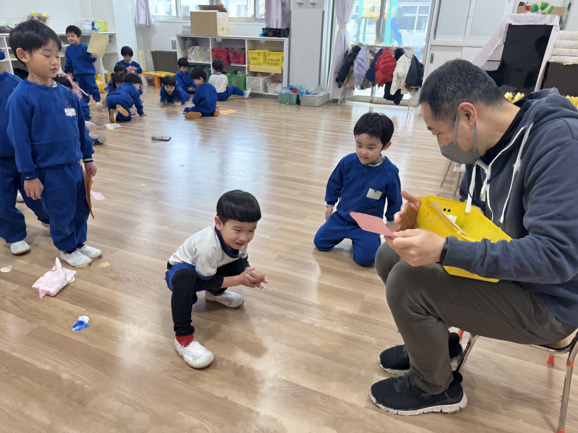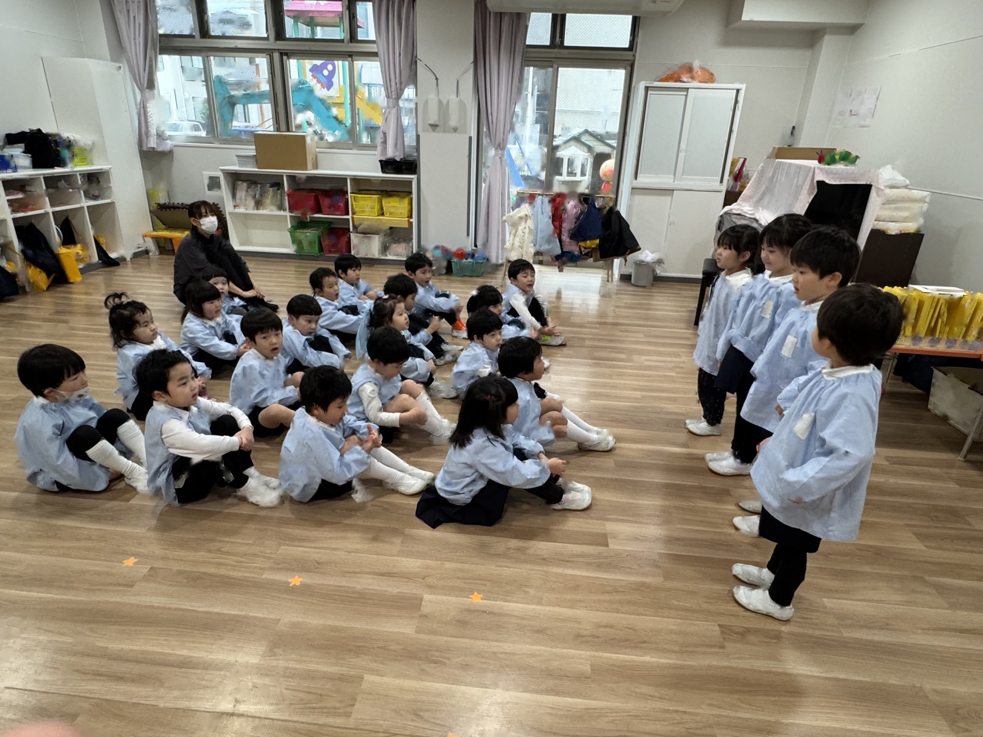 ☆みんなでするとあっという間にお部屋はピカピカに!掃除の後は、子ども達がやりたい!と言っていた“いすとりゲーム”をしました(*^-^*)今日は敗者復活いす取りゲームです!1回負けても何度も何度もチャレンジしましたよ!