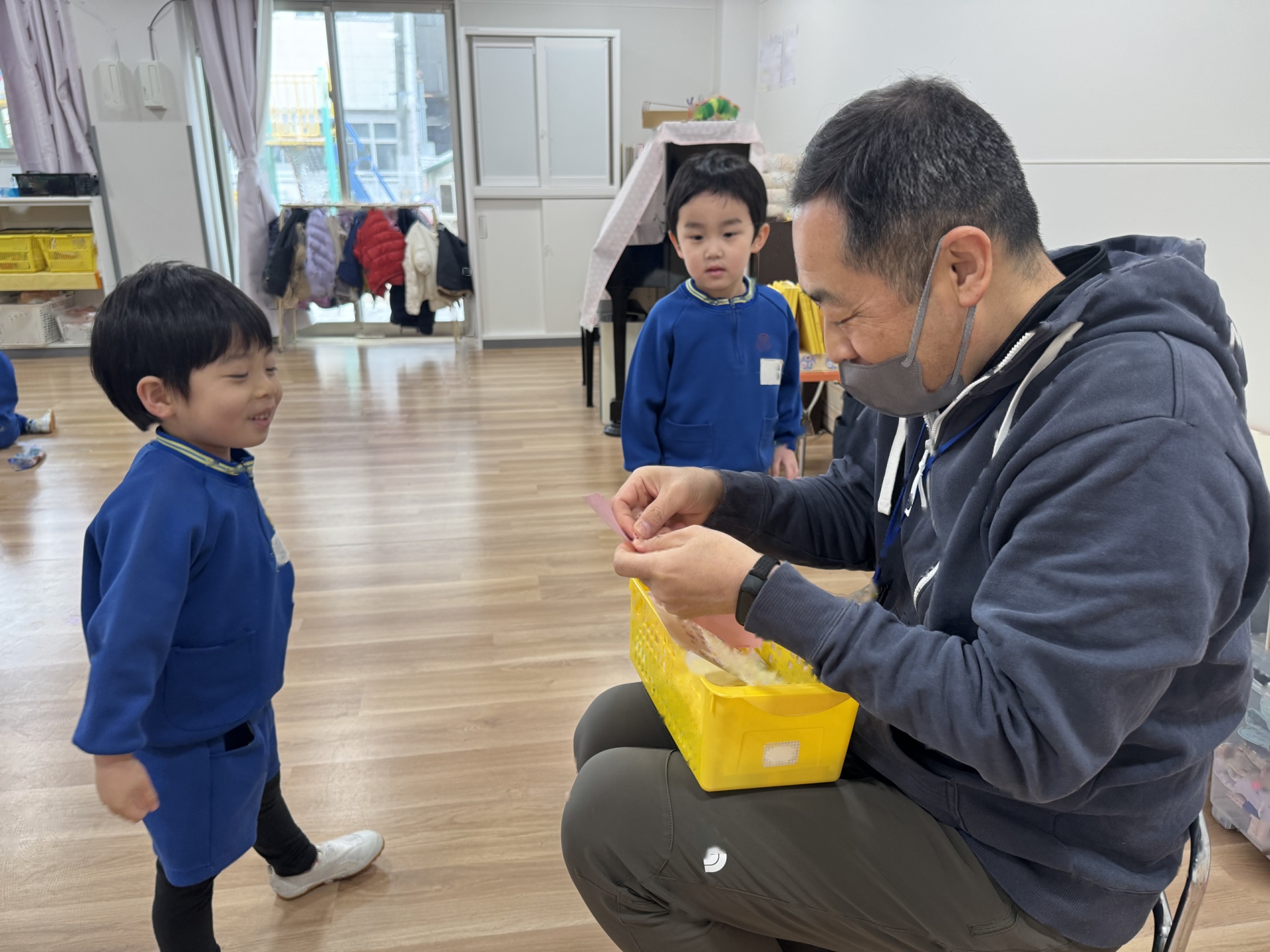 「わぁ~すごーい!!」「広いね~★」と新しい園舎に目を輝かせながら、来年度が始まるのが楽しみで仕方がない様子の子ども達でした(*^-^*)