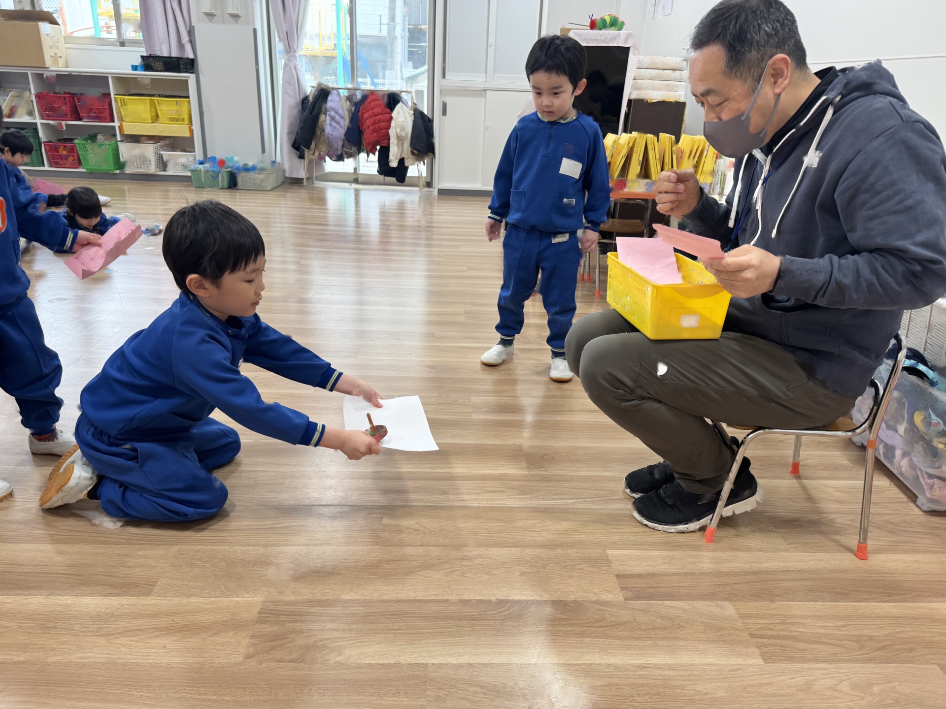 年始から楽しんできた手回しコマ!副園長先生がみんなが上手になったコマの技を見にきてくれました♪もらっていた“こま道場カード”を見ながら、まだ成功していない技に挑戦!!今日はたくさんの子ども達が技をクリアし、シールをゲットすることができました(*^-^*)春休みもぜひ、おうちでコマ遊びを楽しんでください♪