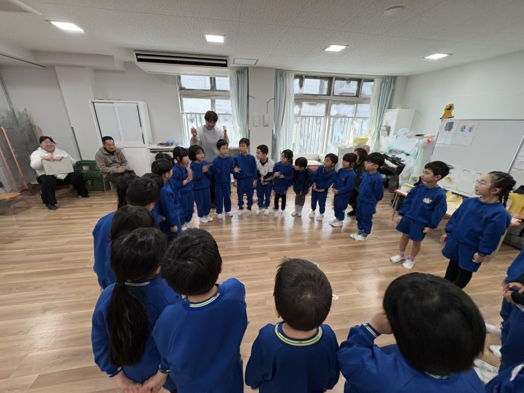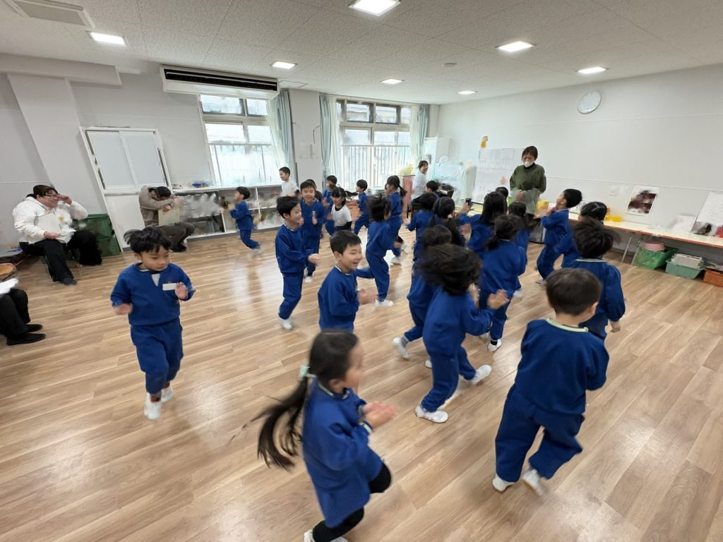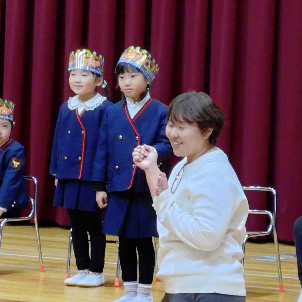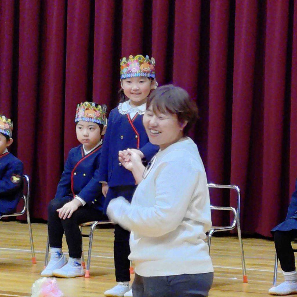 今日は、1月の誕生会を行いました。12月の誕生会に参加できなかったお友達も一緒にお祝いしました。ステージ上での自己紹介も、しっかりばっちり言うことができ、とっても素敵でした!