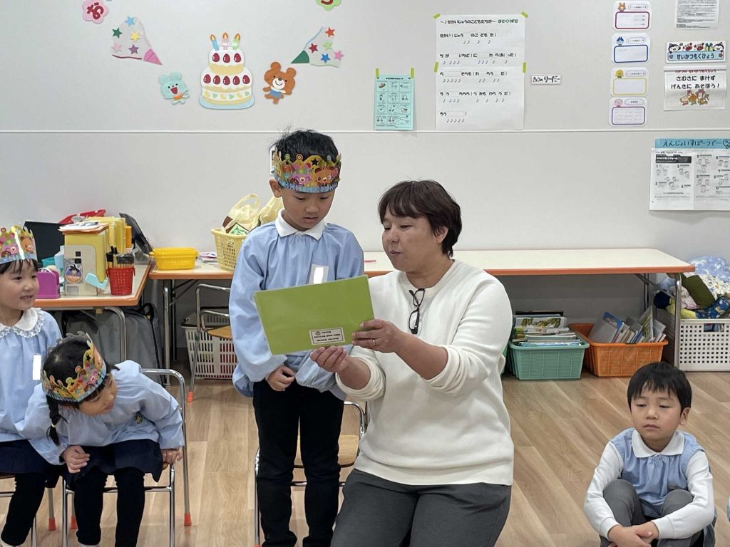 そしてお部屋からも、「ばら組誕生会」ということで、お祝いをしました。家族からのメッセージをしっかりと聞き、嬉しそうな表情を浮かべる子ども達でした。6歳のお誕生日おめでとう!素敵な6歳になってくださいね☆