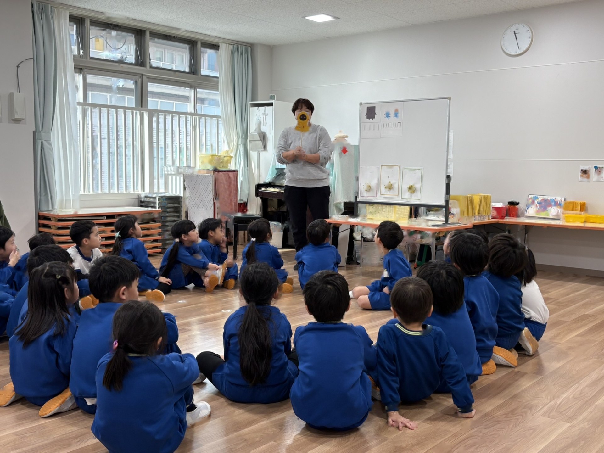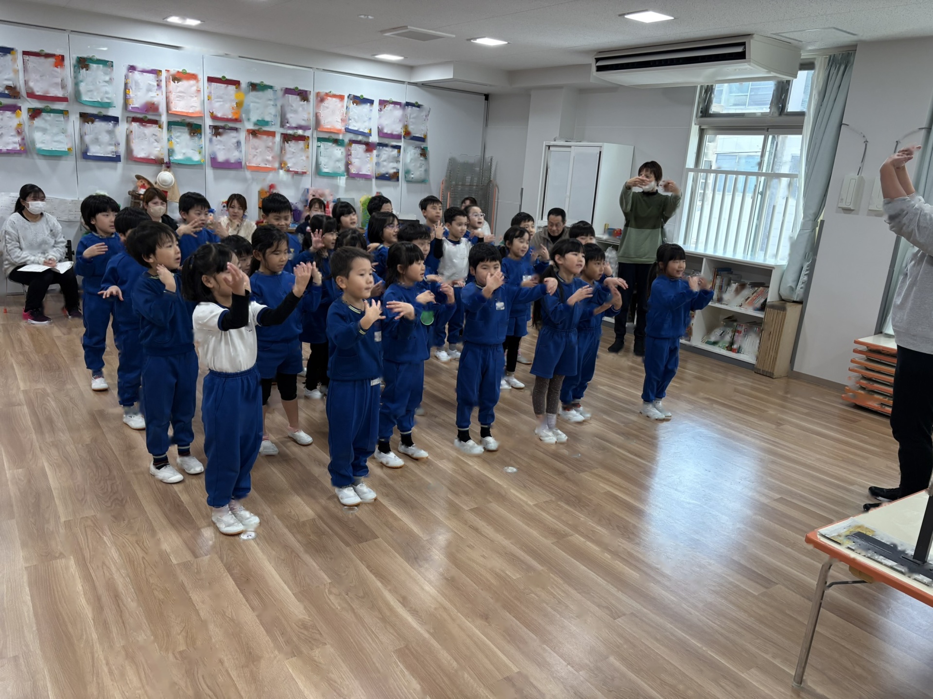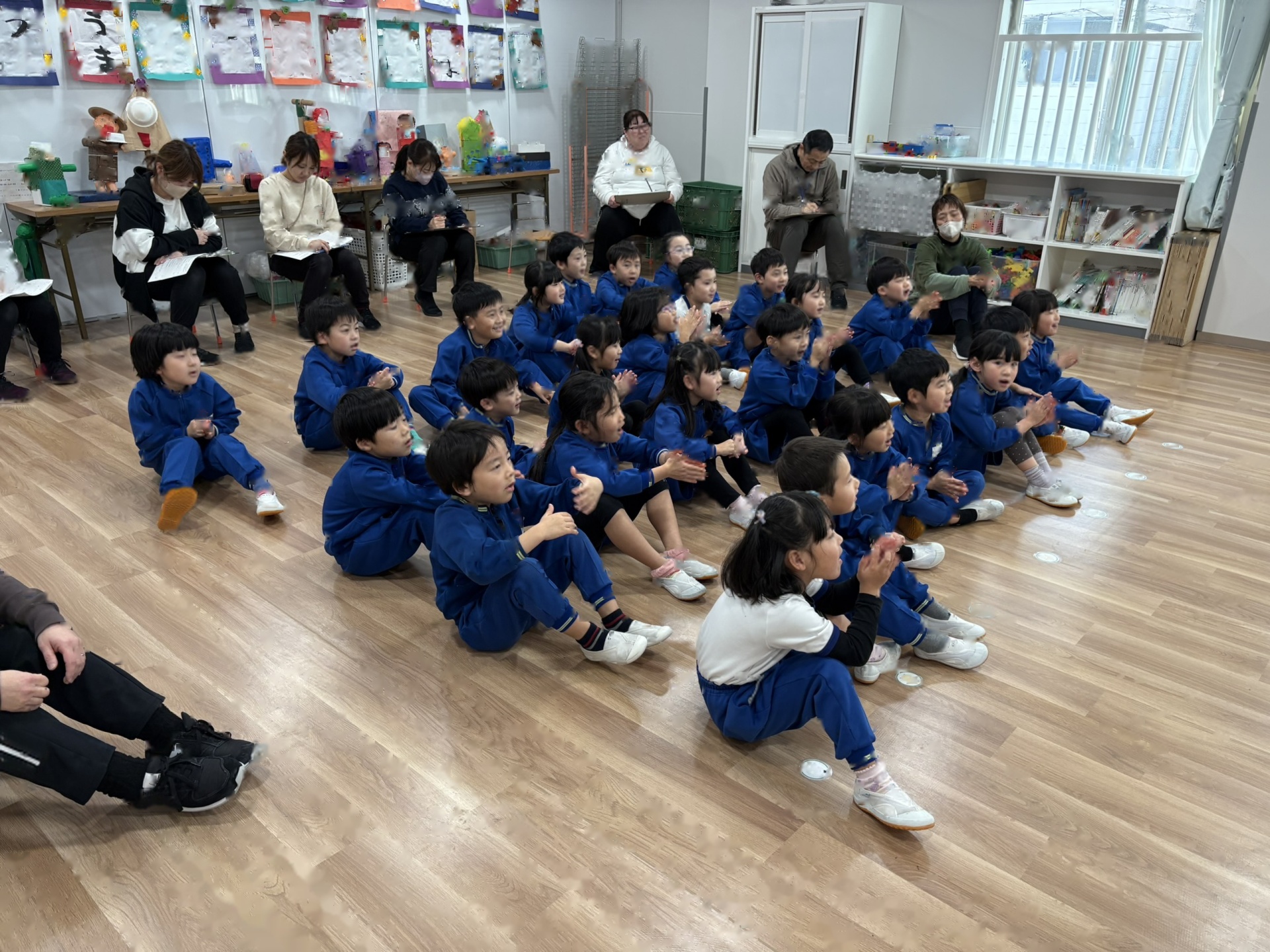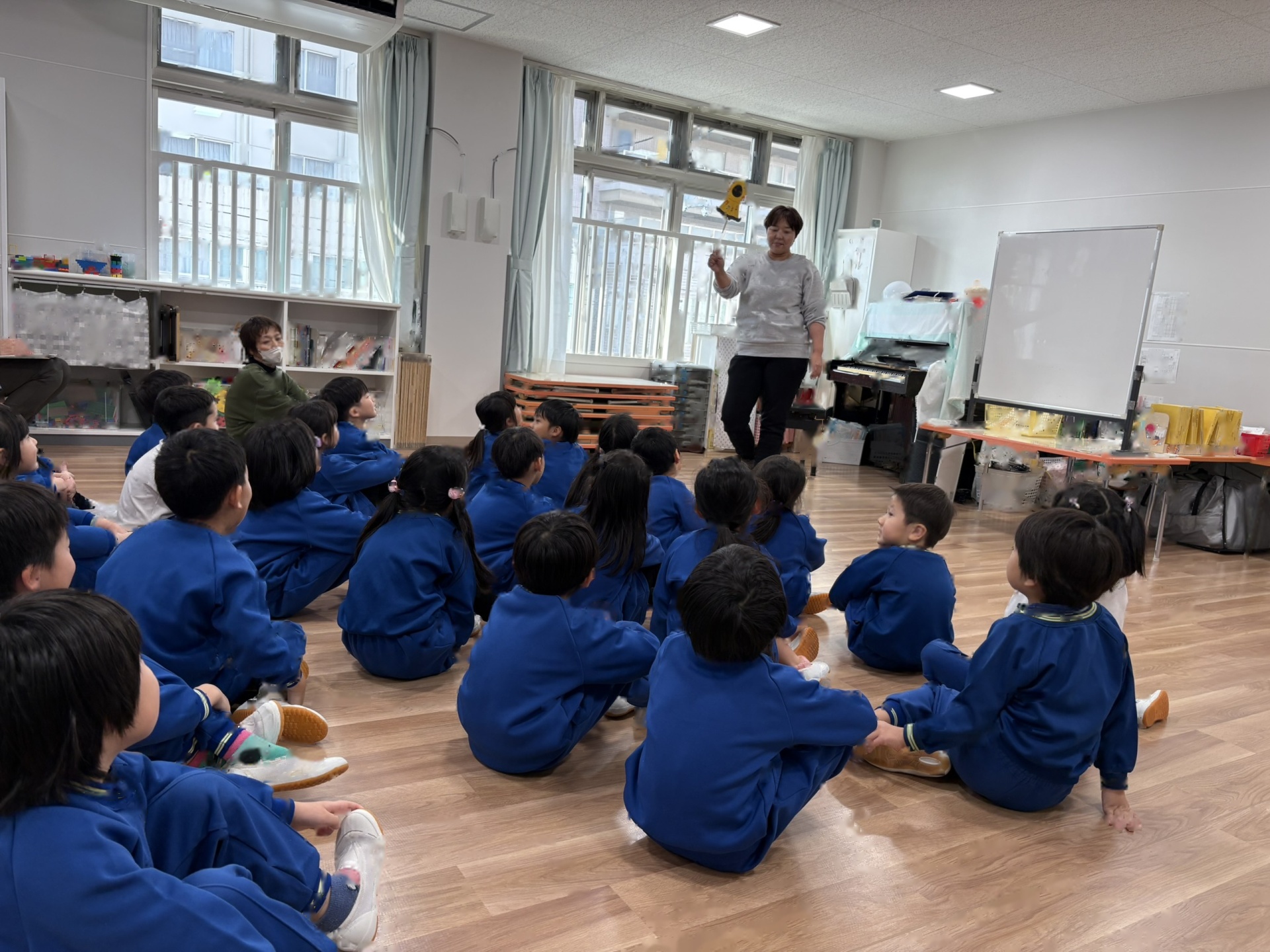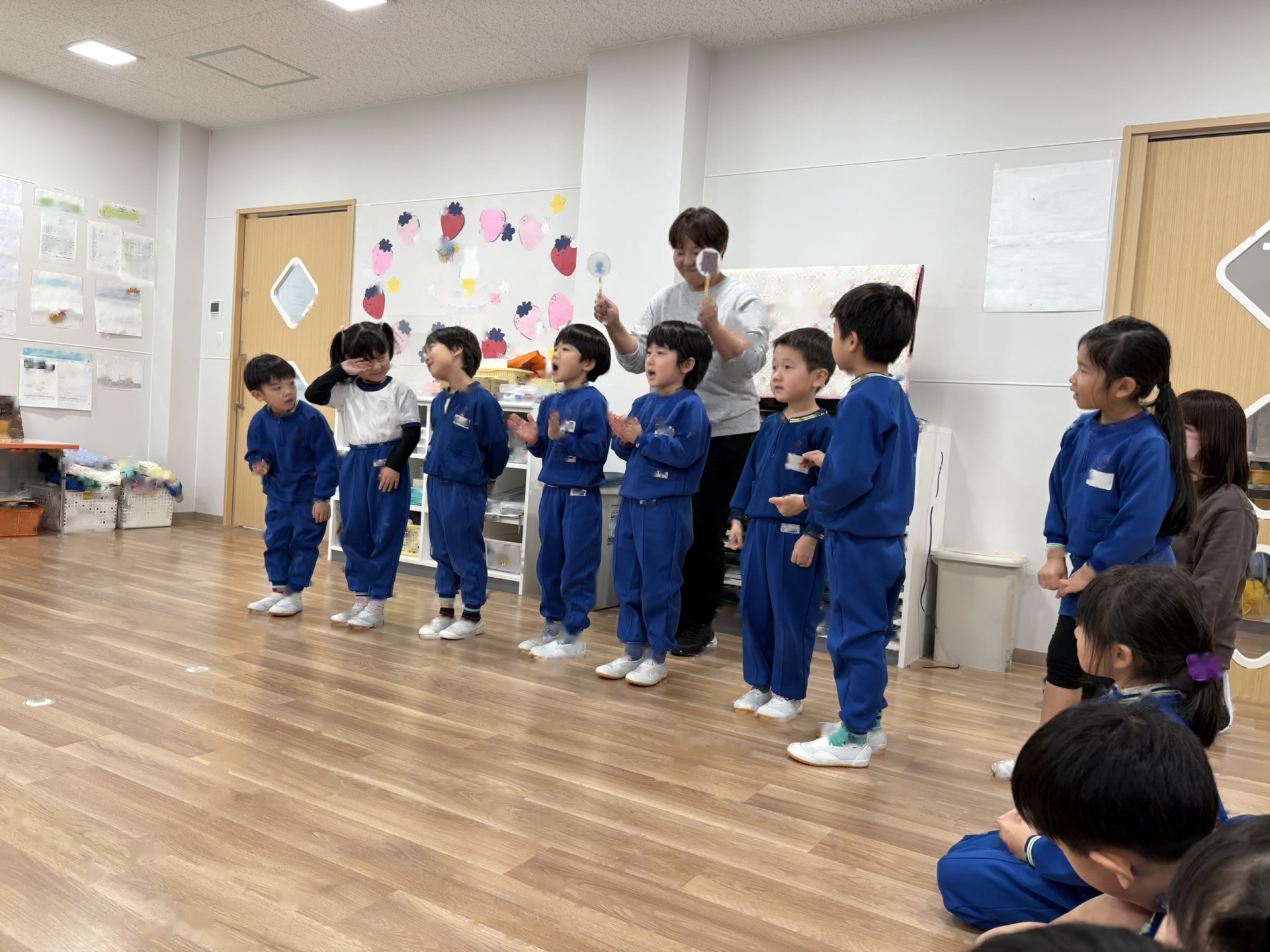 今日は、1月の誕生会を行いました。12月の誕生会に参加できなかったお友達も一緒にお祝いしました。ステージ上での自己紹介も、しっかりばっちり言うことができ、とっても素敵でした!