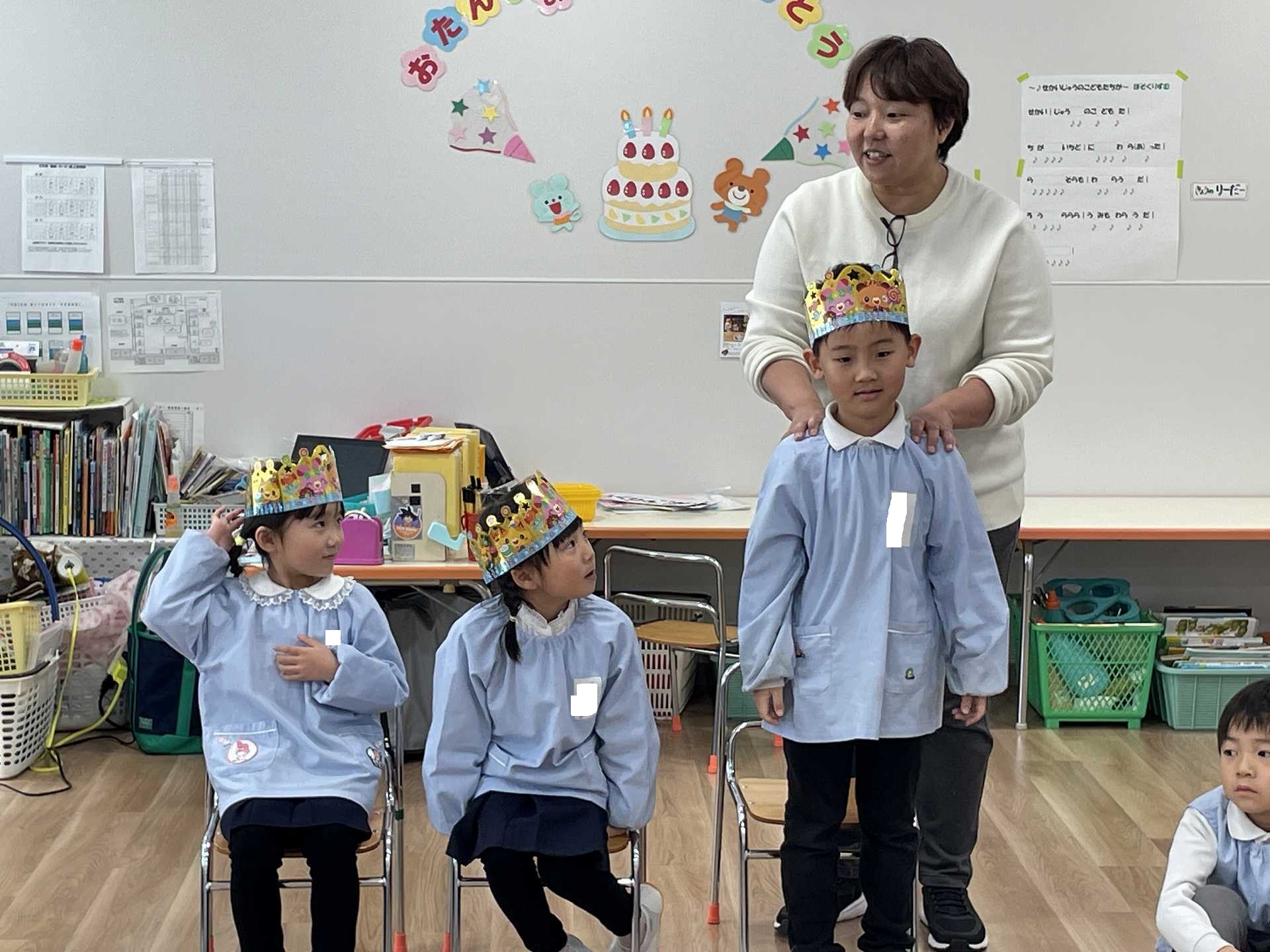 そしてお部屋からも、「ばら組誕生会」ということで、お祝いをしました。家族からのメッセージをしっかりと聞き、嬉しそうな表情を浮かべる子ども達でした。6歳のお誕生日おめでとう!素敵な6歳になってくださいね☆