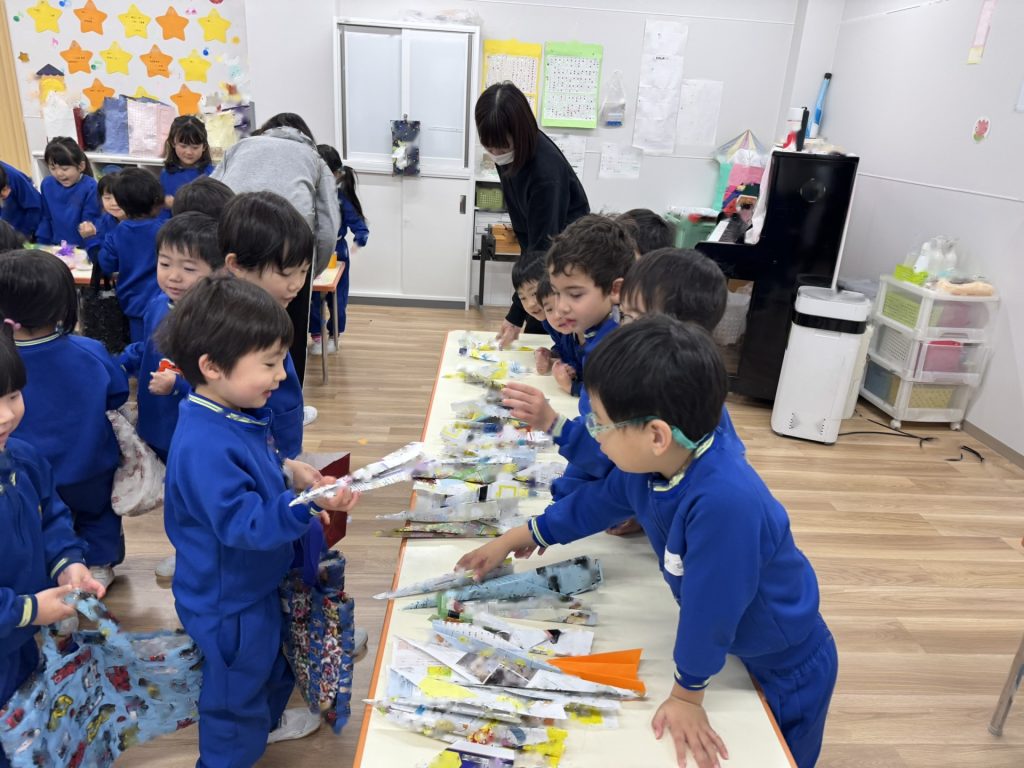 「たんぽぽ組さんよろこんでくれるかな~」と、商品を作りながら今日の日を楽しみにしていた子ども達でした!!