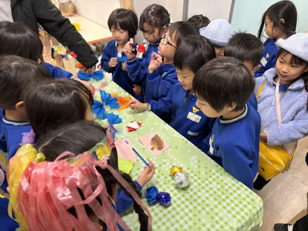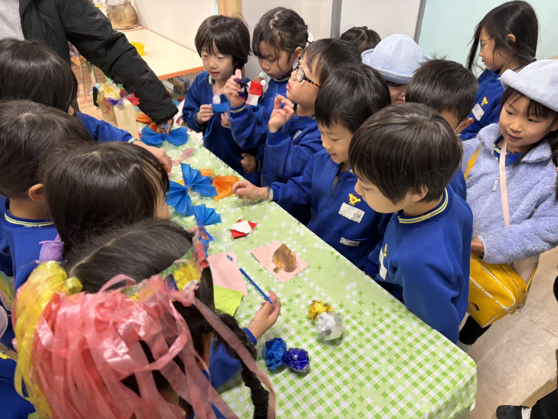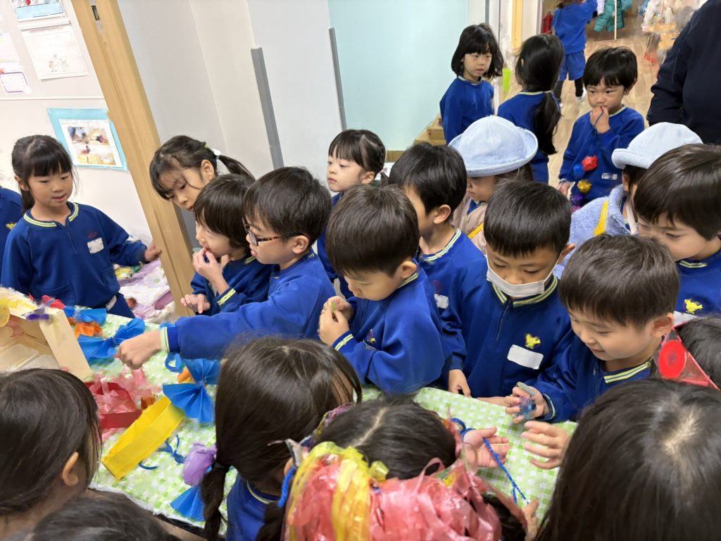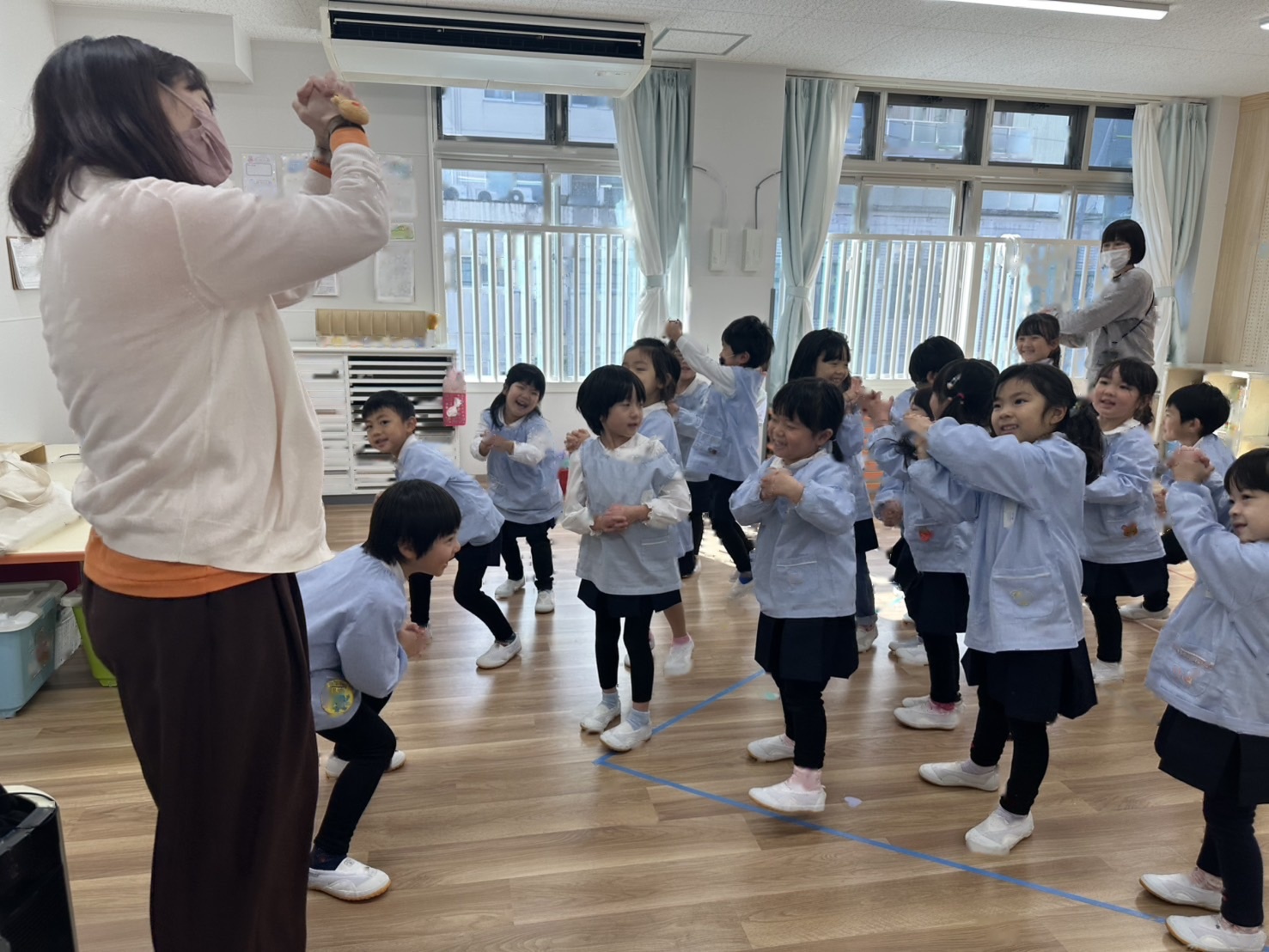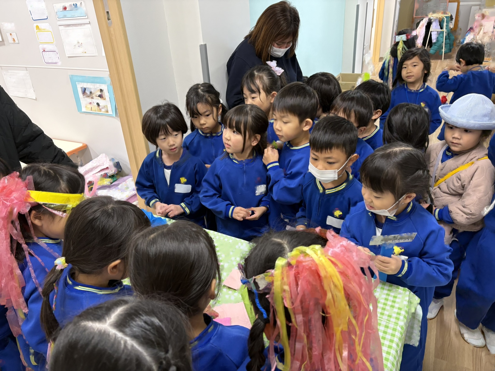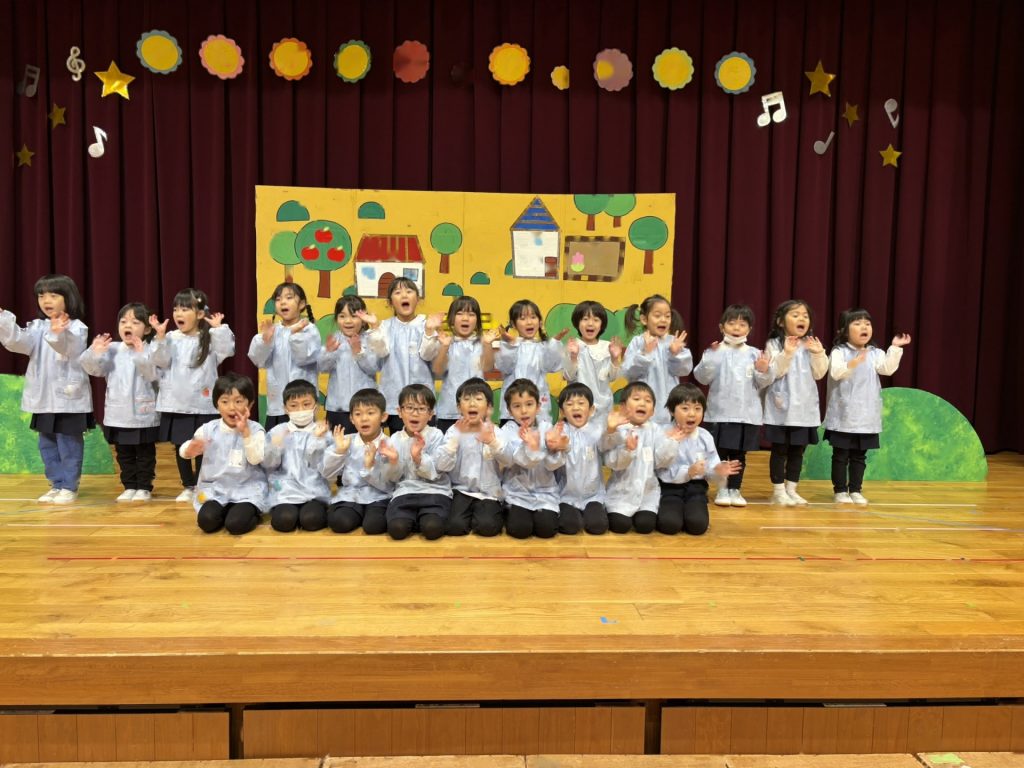 発表会では大勢のお客さまの前で素敵な姿を見せてくれた子ども達!ゆり組・りんご組一緒に発表会頑張りましたご褒美クッキングでポップコーンを食べました!ポップコーンは何からできるの?と聞かれると「コーン!!」「かたいやつ!」と何からポップコーンができるのかよく知っていました