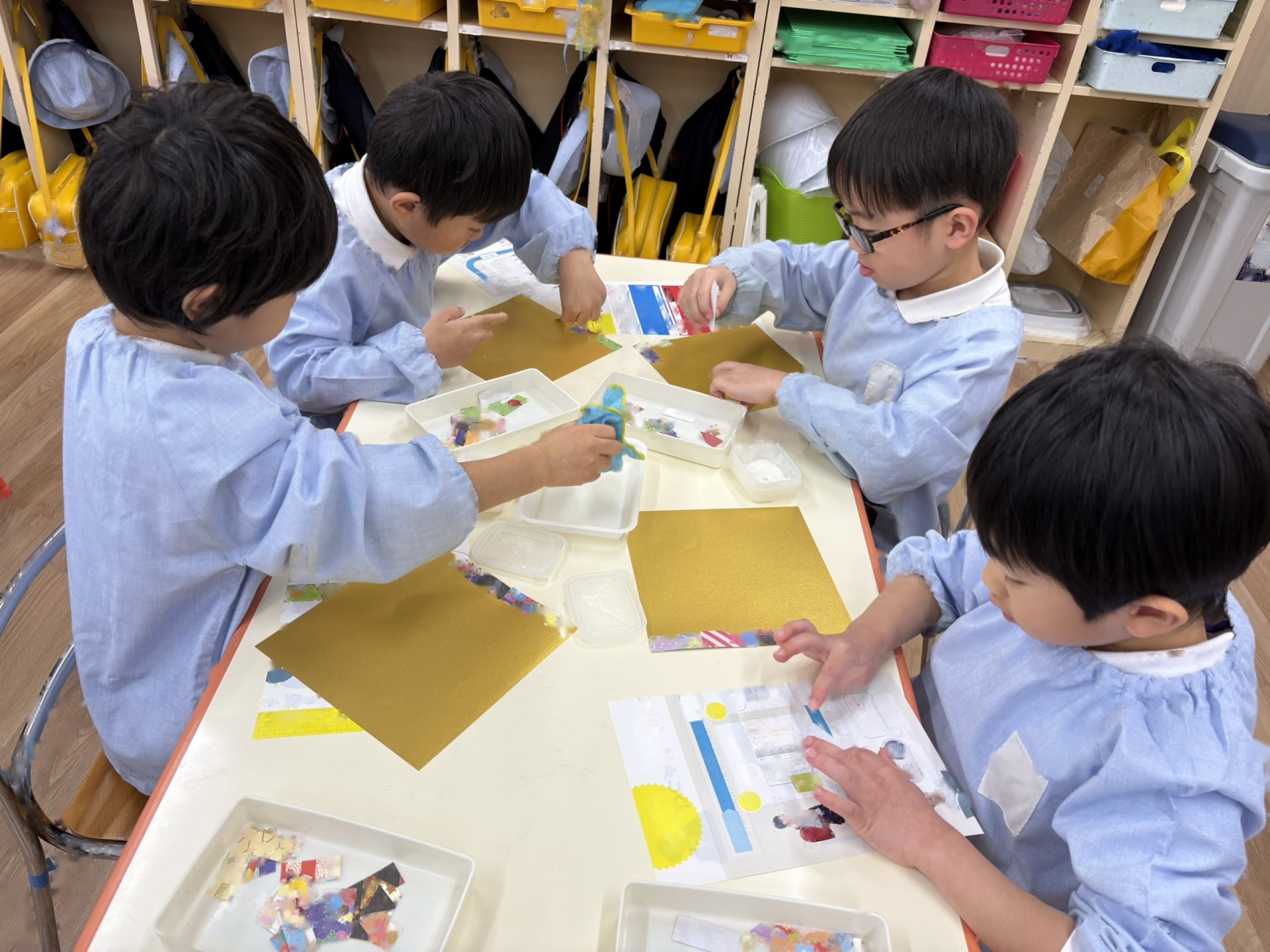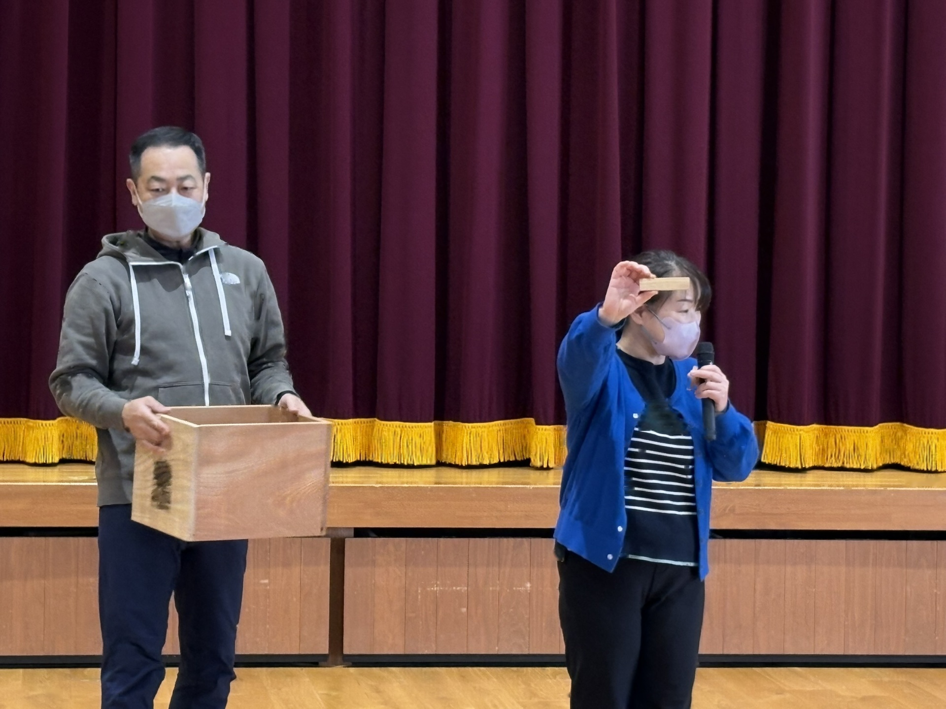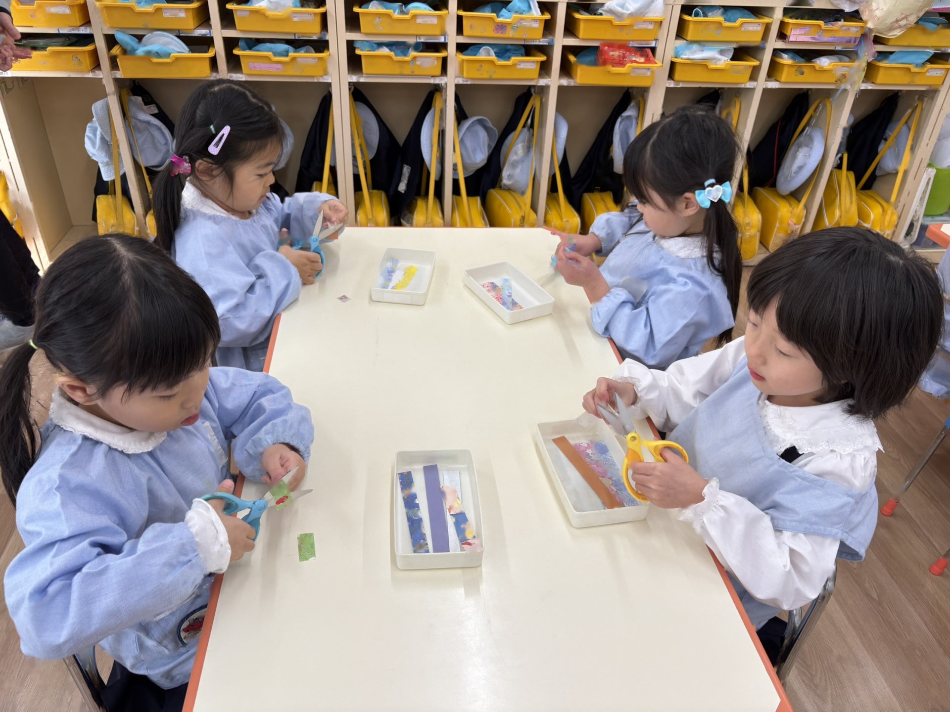 園長先生のお話をききました。1学期でおわかれした”けやきの木”が積み木になって生まれ変わったことも教えてもらいました(またみんなで遊んでみたいと思います)
